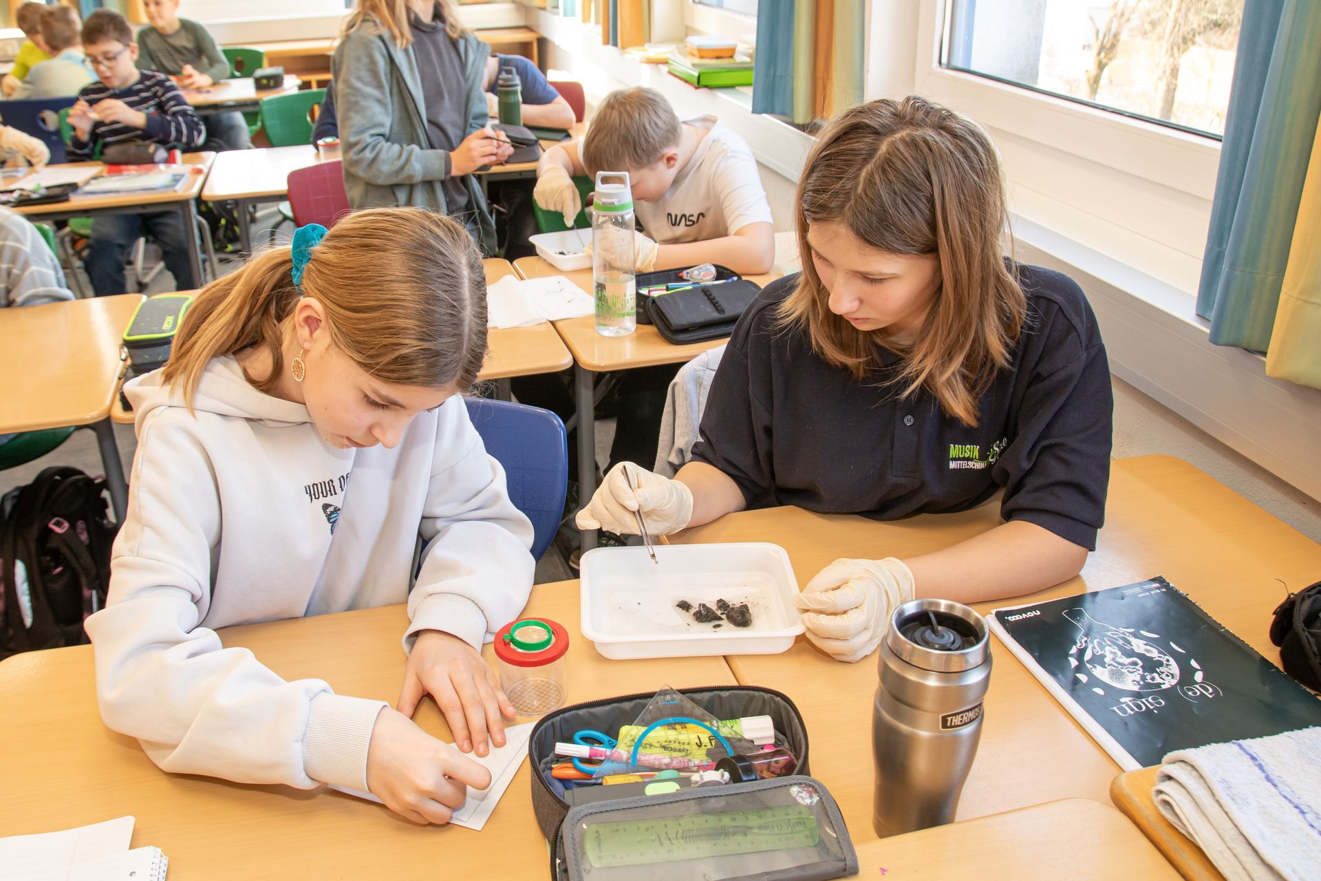 Im Rahmen des Biologieunterrichtes sezierte die 1a Klasse unter Anleitung von Lehrerin Melitta Fröschl ein Gewöll eines Sperbers. Was die SchülerInnen darin fanden war höchst spannend.... Mäusekrallen, Reste von Kleintieren.....