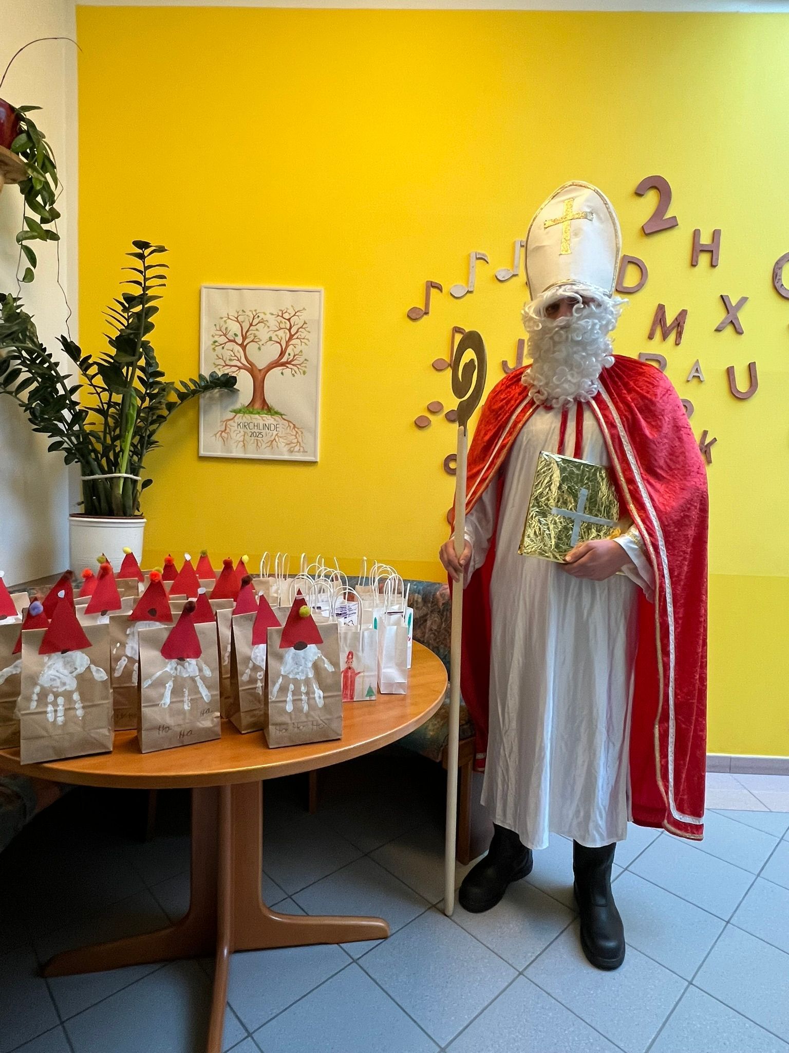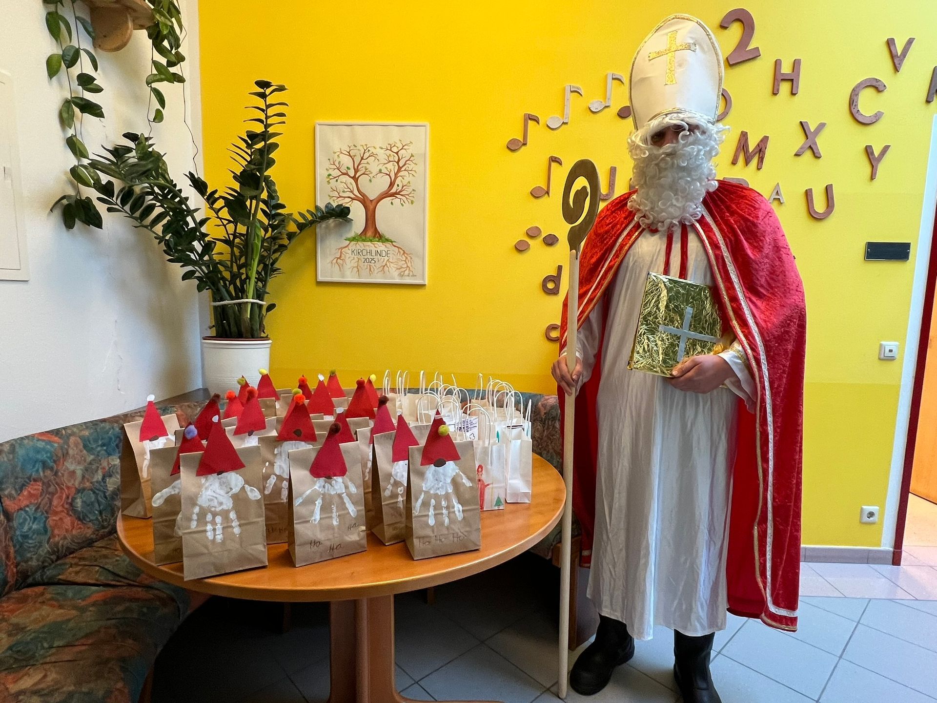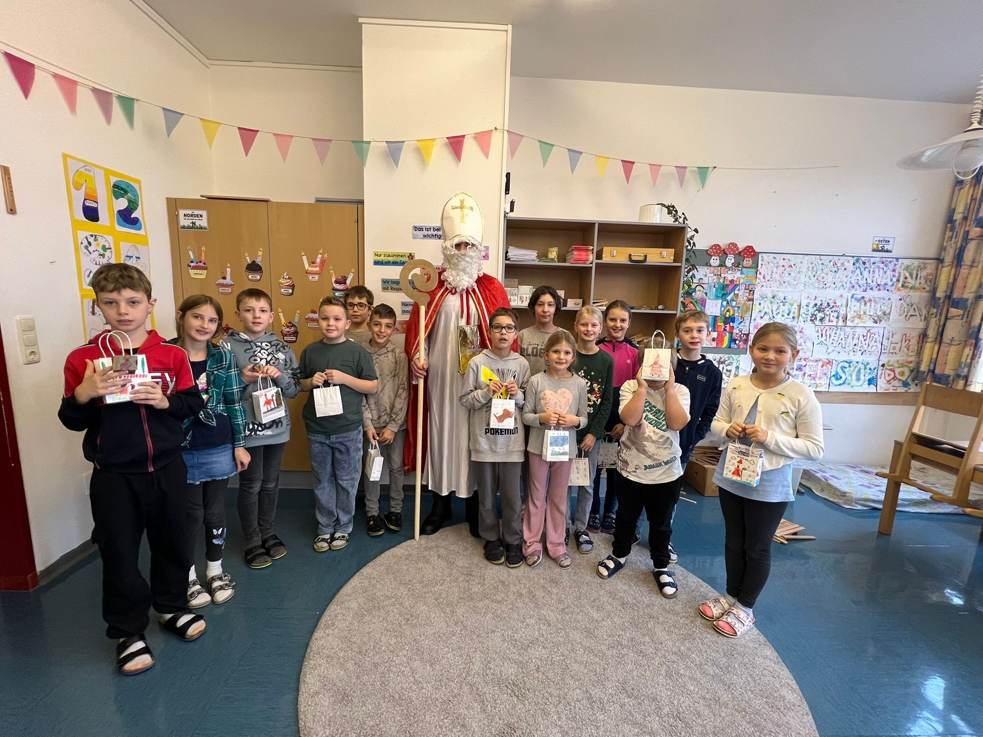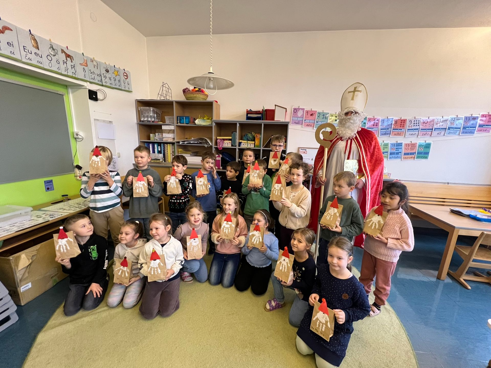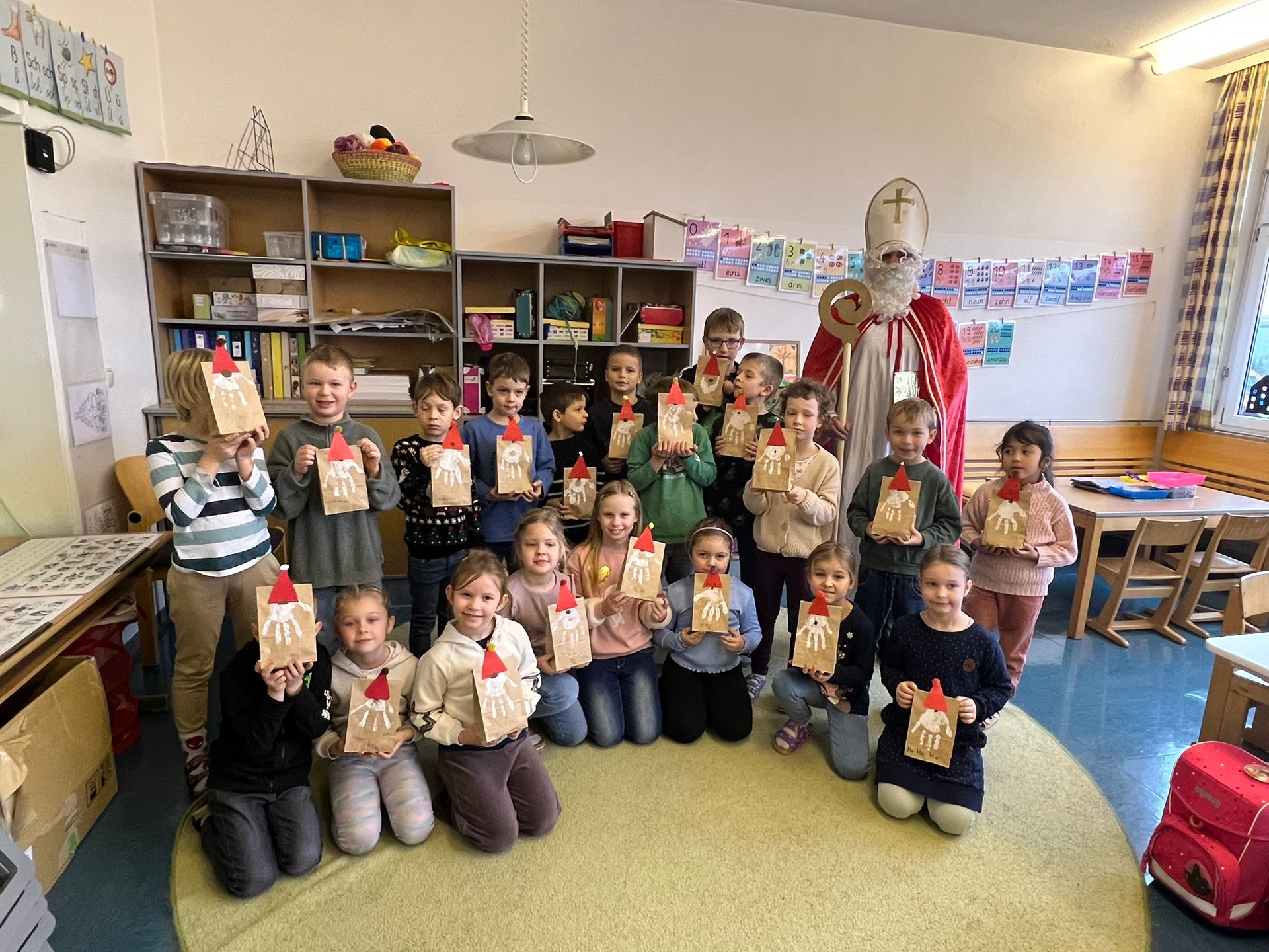 Zum Schluss erhielt jedes Kind vom Nikolaus ein Säckchen und alle versicherten, auch im kommenden Jahr wieder brav zu sein.