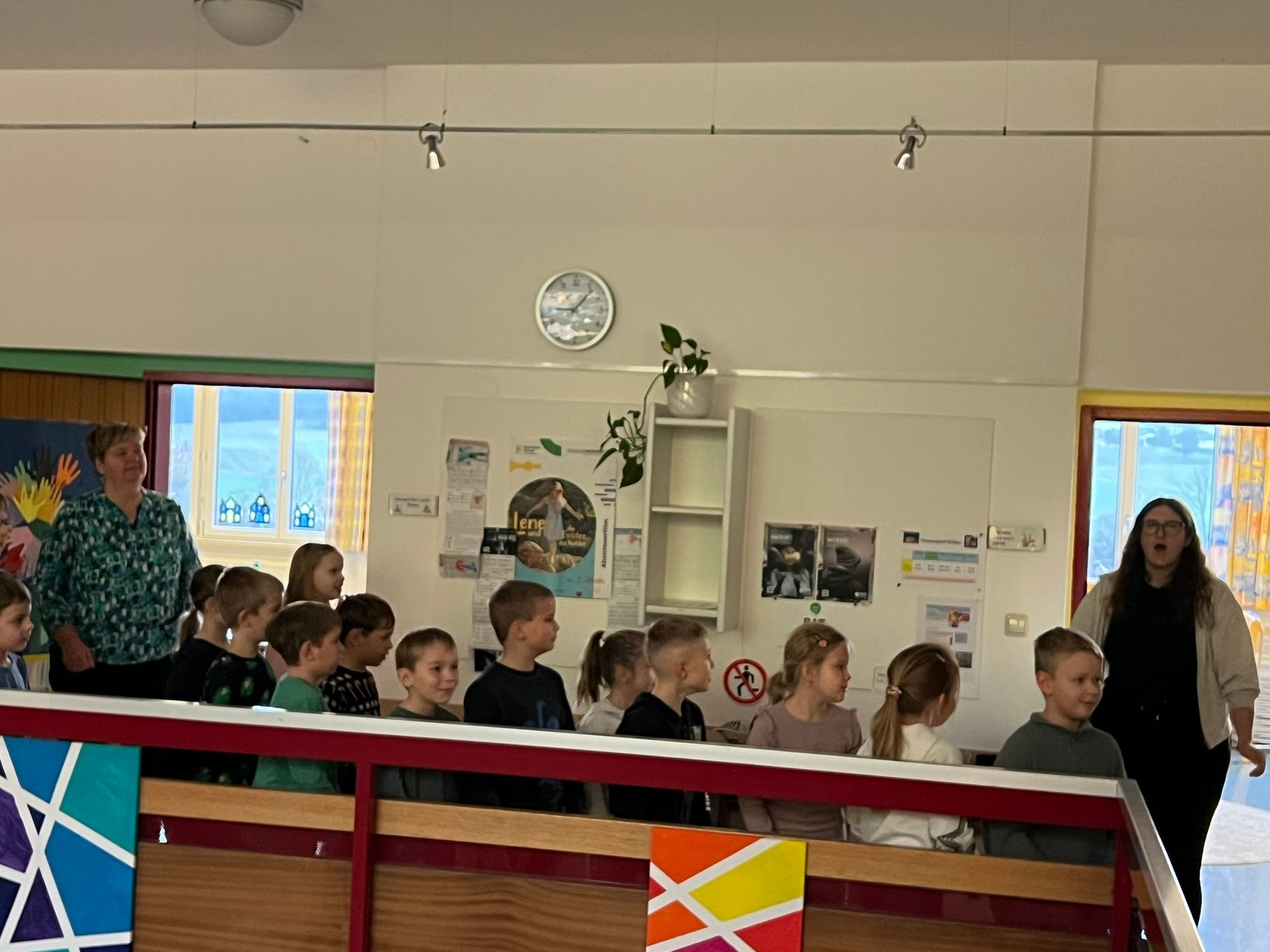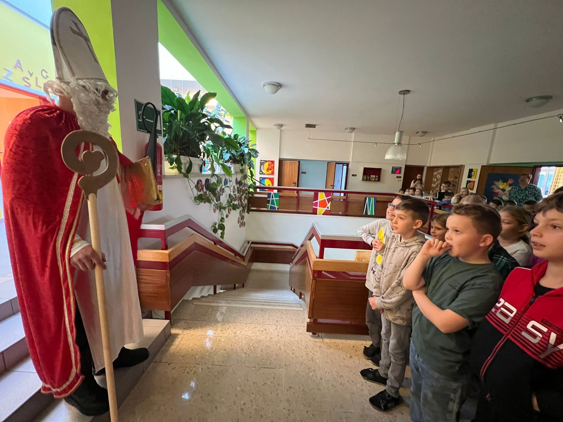Als die Kinder den Nikolaus bemerkt hatten, eilten sie schnell aus ihren Klassen, um den Nikolaus freundlich zu begrüßen.