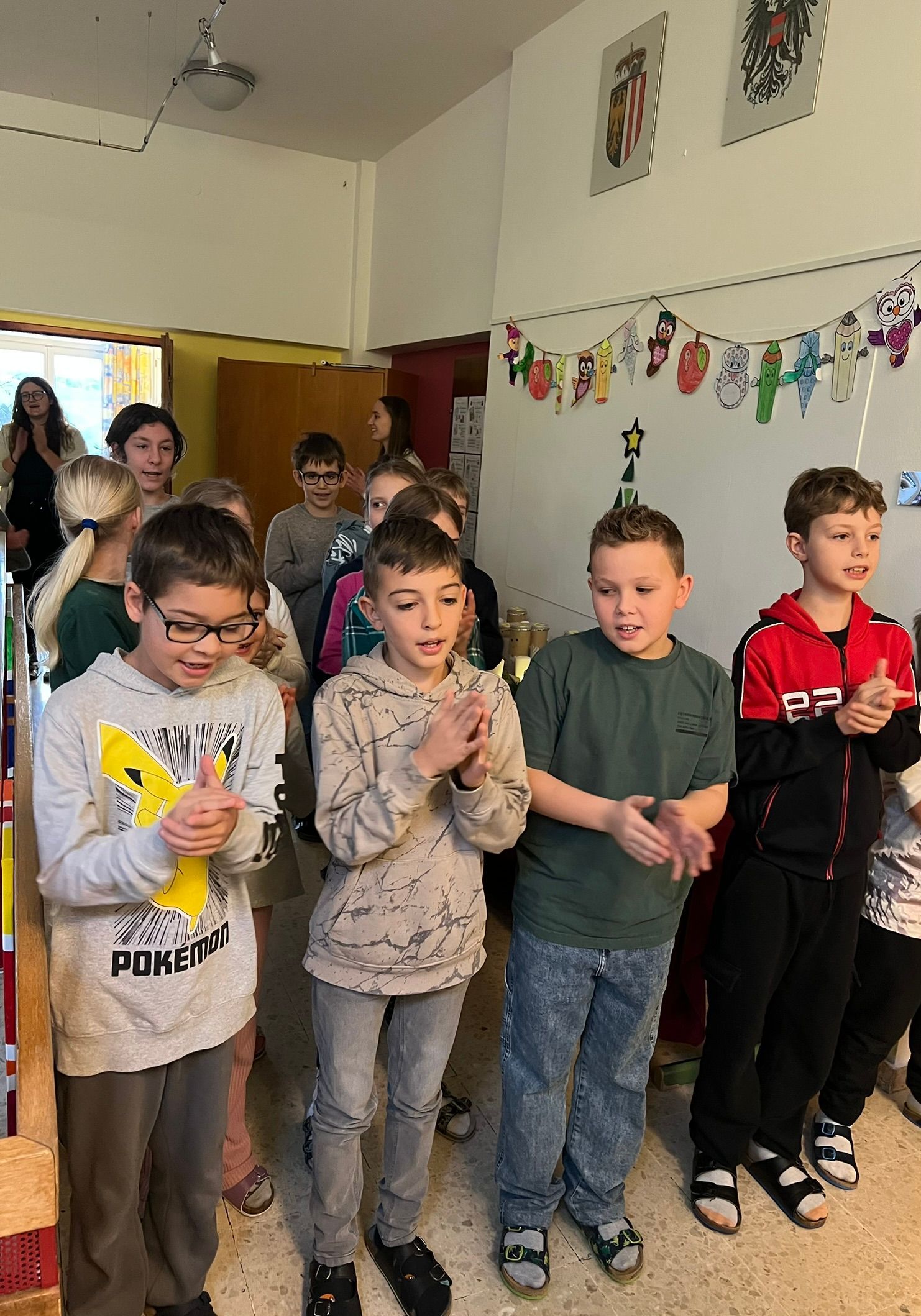 Gemeinsam sagten die Kinder ein Nikolausgedicht auf und sangen ihm sogar drei Nikolauslieder vor. Der Nikolaus war von den Darbietungen und dem schönen Gesang der Klamer Kinder sehr begeistert.