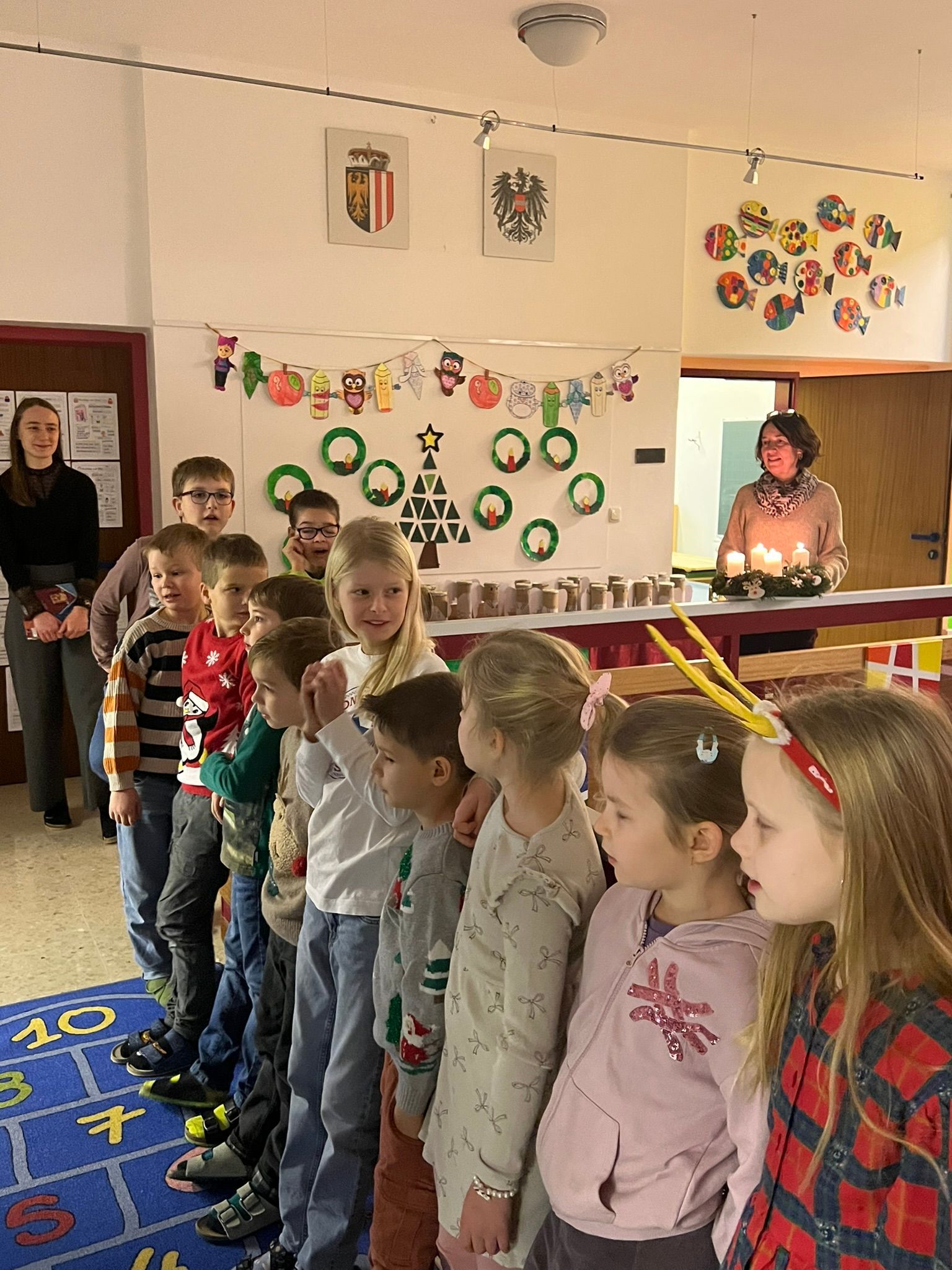 Am Morgen wurden Adventlieder gesungen, aus einem Weihnachtsbuch wurde vorgelesen und die Adventkalenderengel wurden geöffnet.