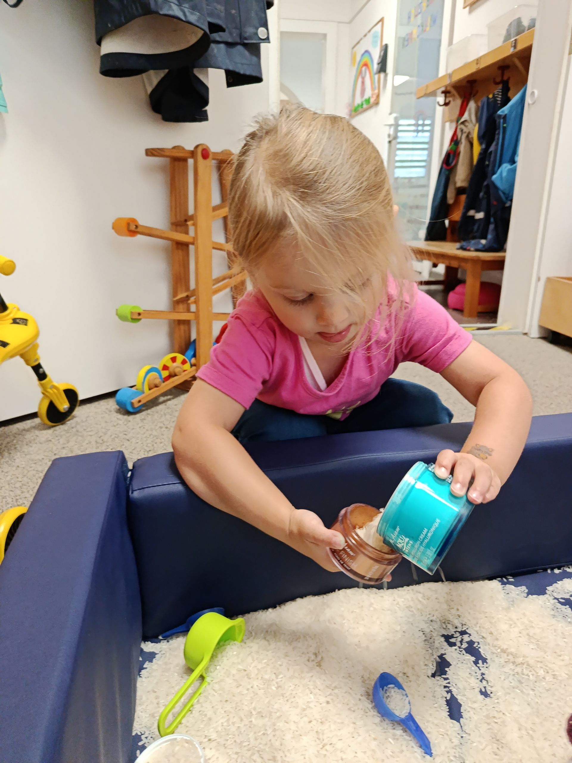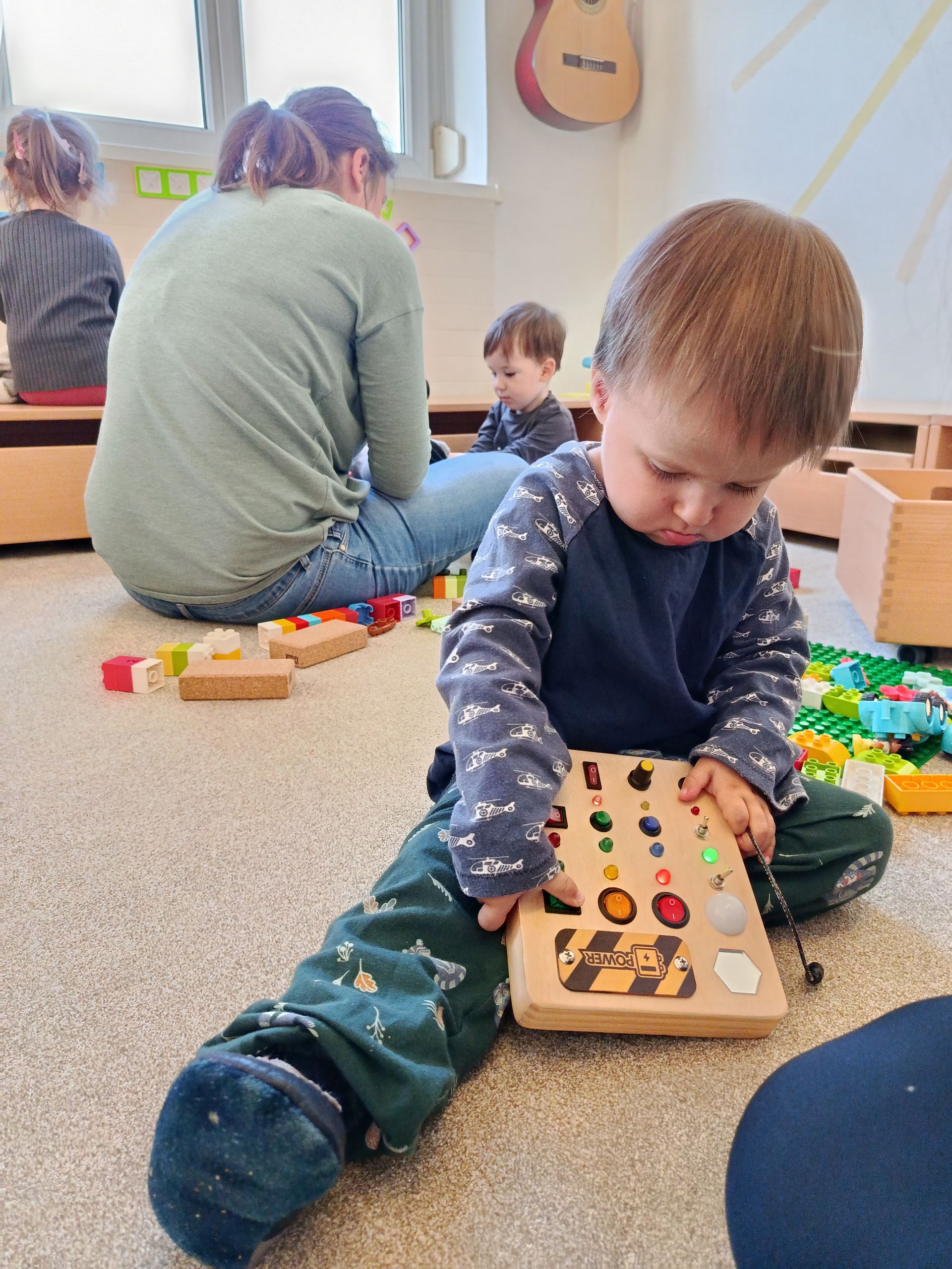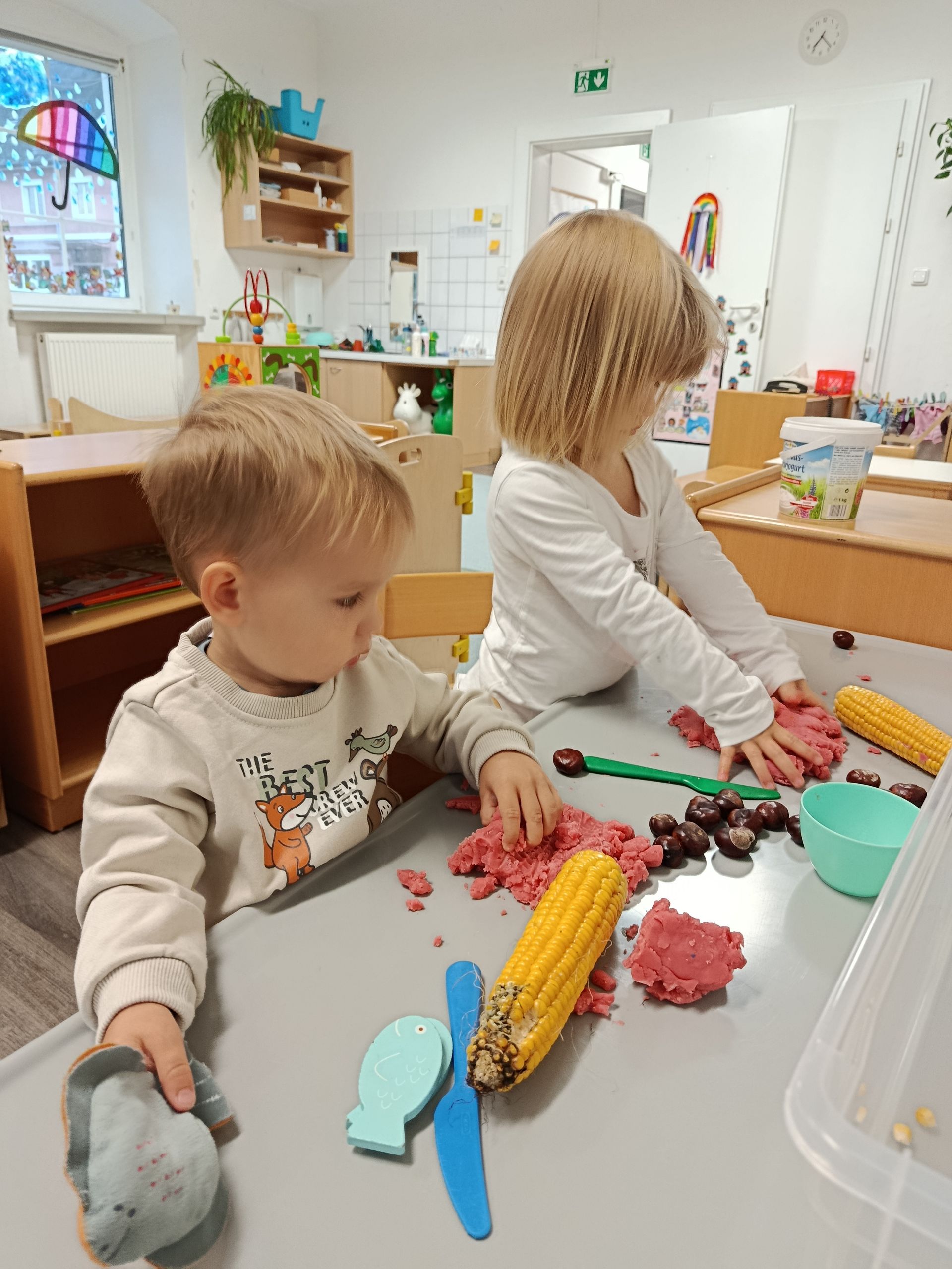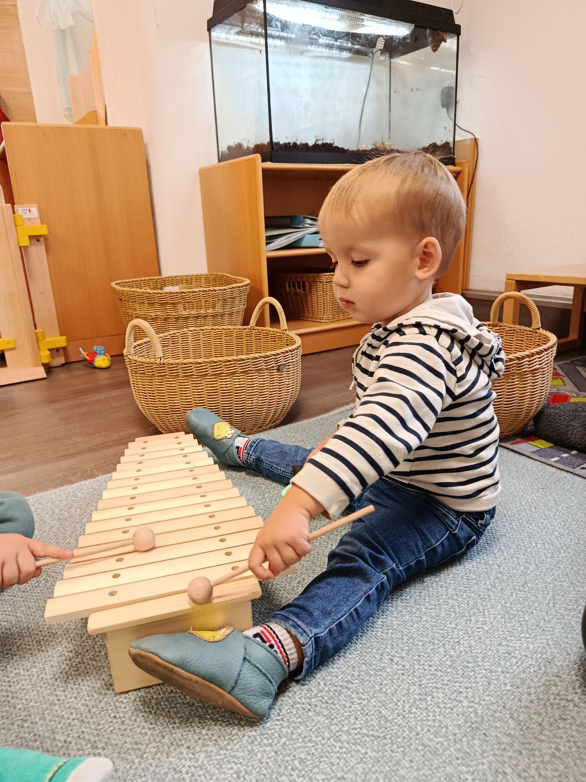 Die Kinder der Sonnengruppe haben sich in den neuen, hellen Räumlichkeiten schon sehr gut eingewöhnt. Außerdem waren sie schon fleißig mit dem Krabbelstubenbus unterwegs und durften die Umgebung erkunden – es wurden Kastanien gesammelt, Äpfel gepflückt und die Pferde auf der Weide besucht!