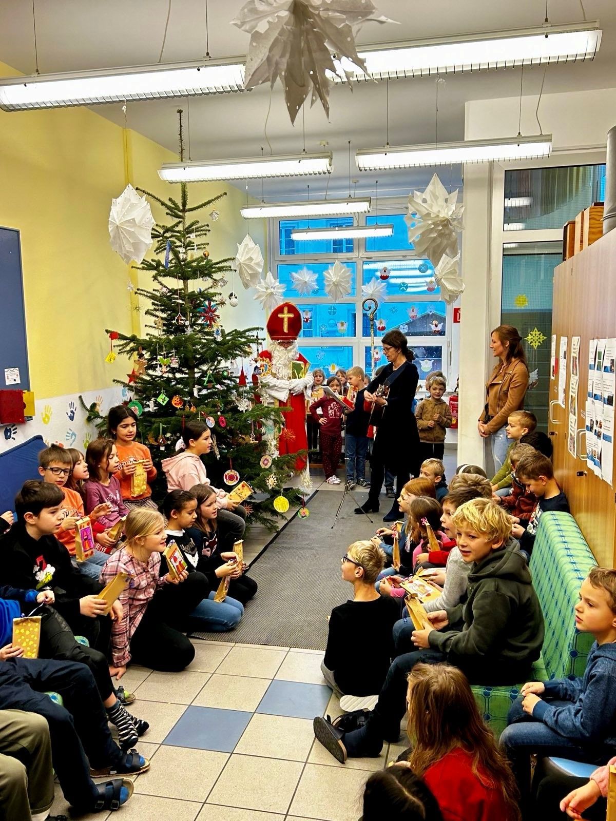 Gleich am Morgen des 6. Dezember 2023 bekamen die Kinder der VS Saxen Besuch vom Nikolaus.