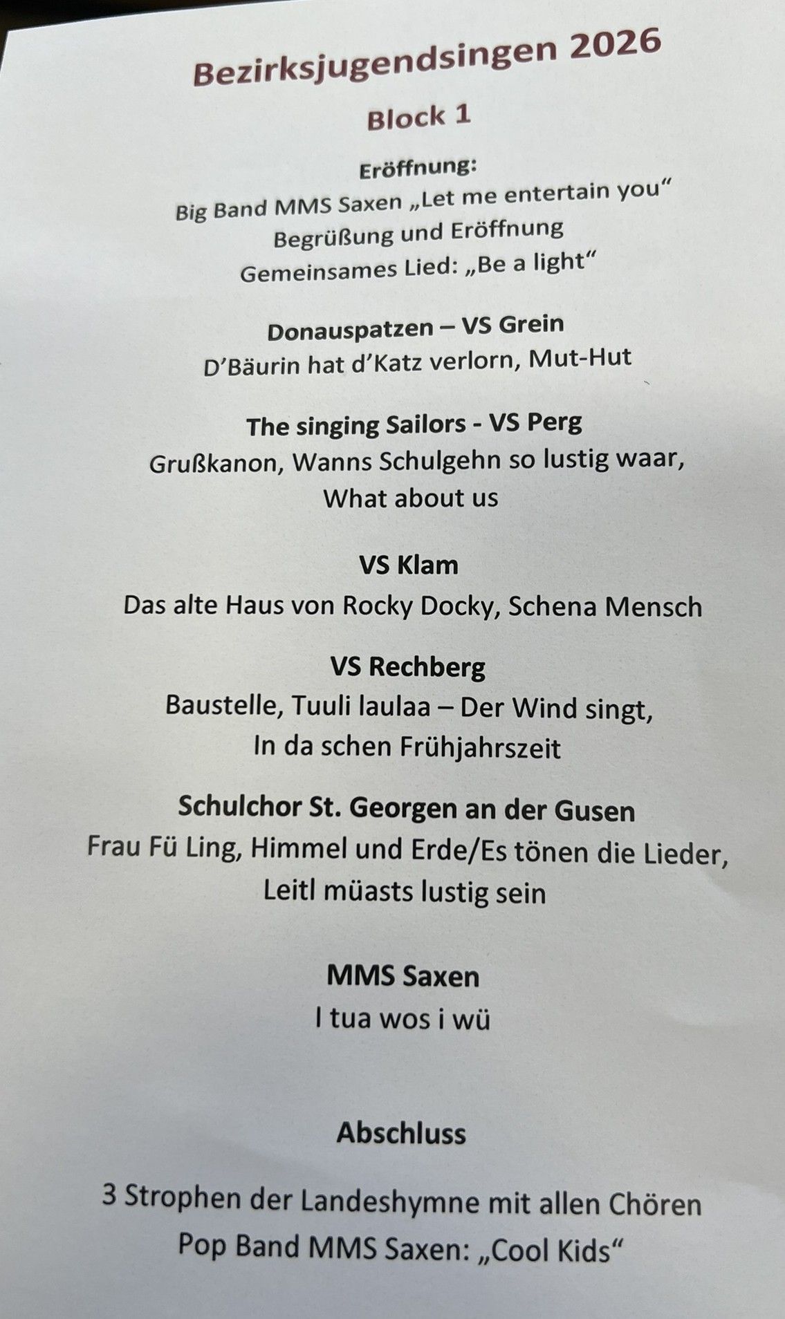 Am Donnerstag, 12. März 2026, fand das Bezirksjugendsingen an der Musikmittelschule Saxen statt.