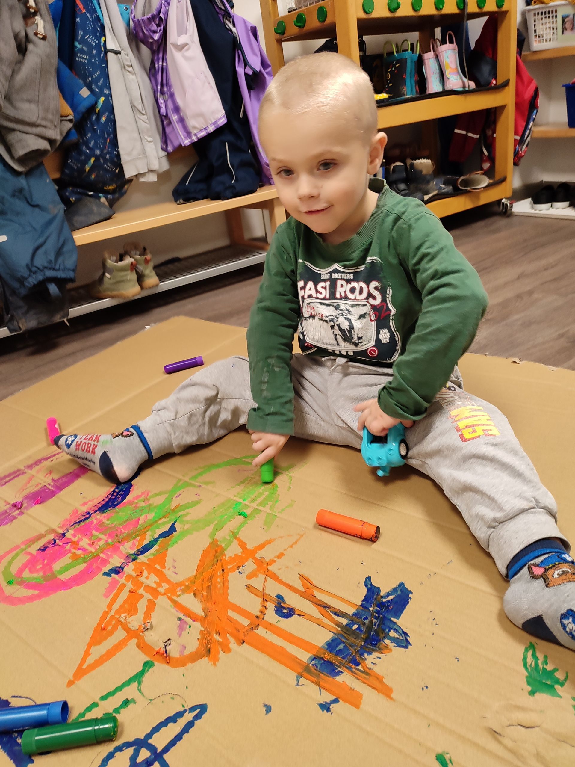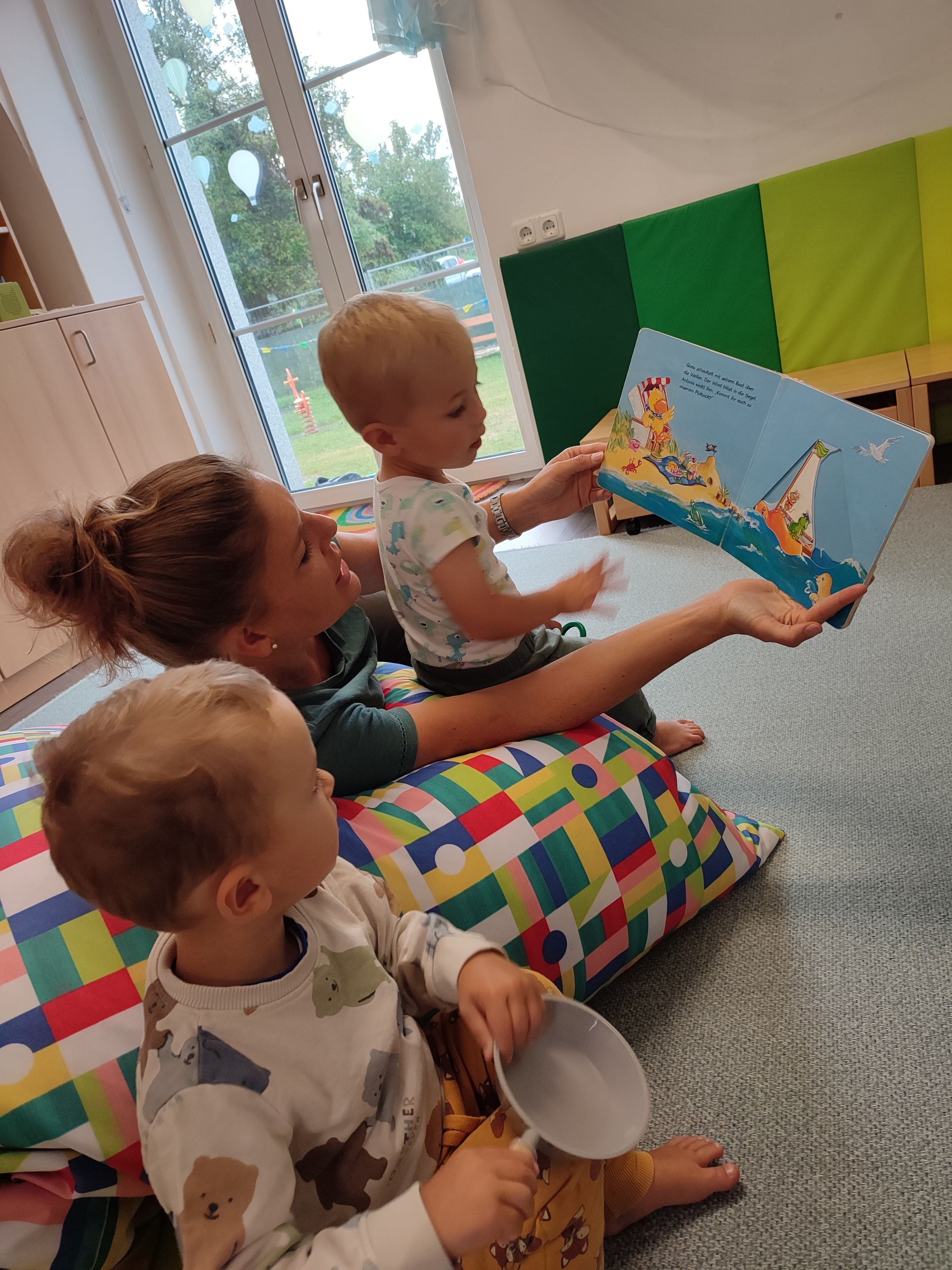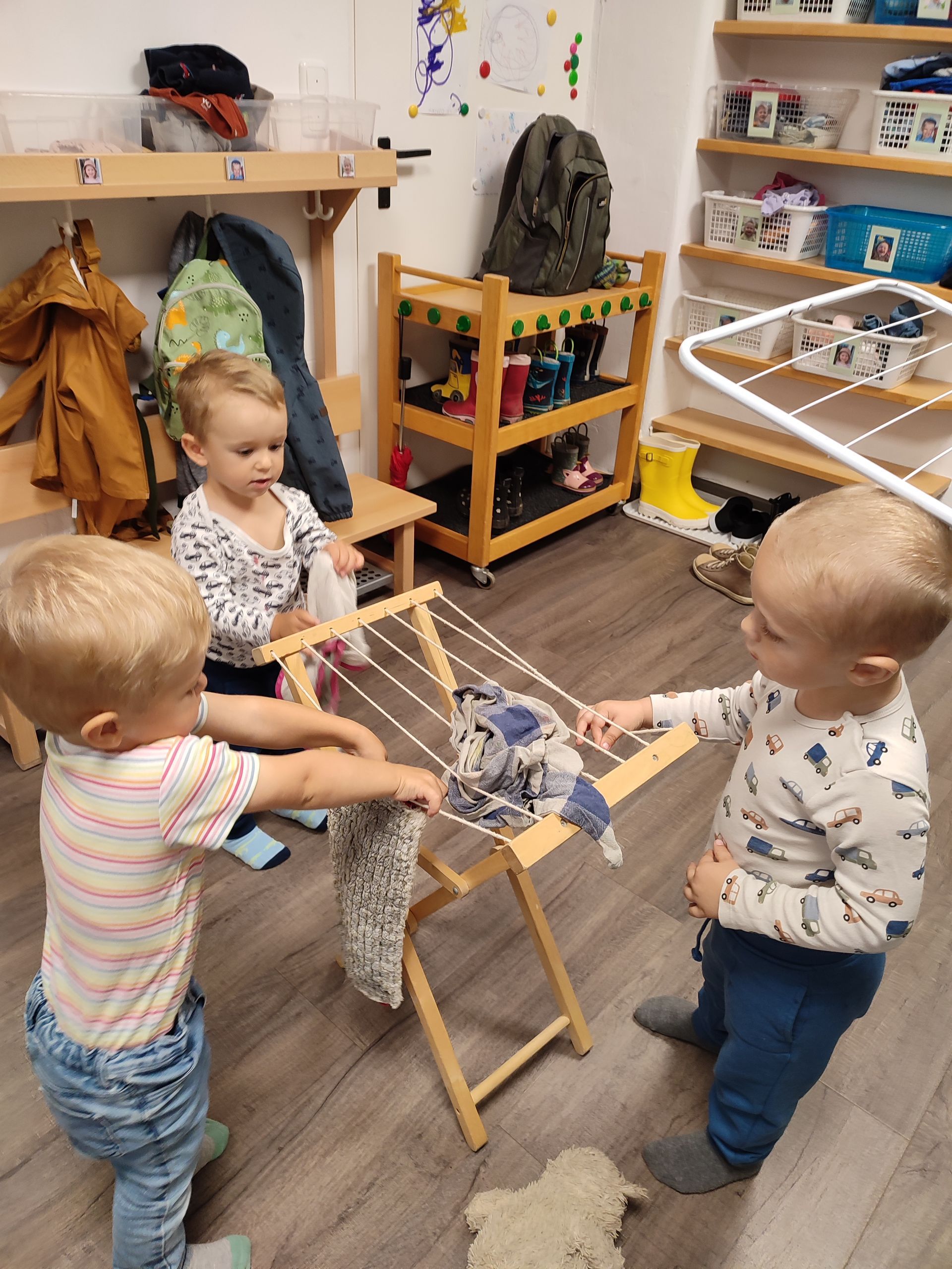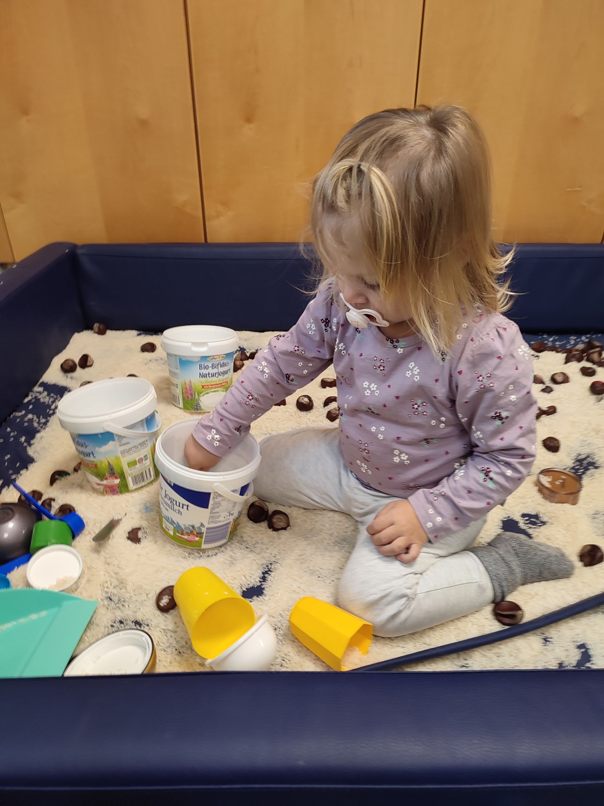 Wir sammeln Kastanien, erkunden die Umgebung mit unserem Krabbelstubenbus und knüpfen beim Spiel in der Krabbelstube die ersten Freundschaften.