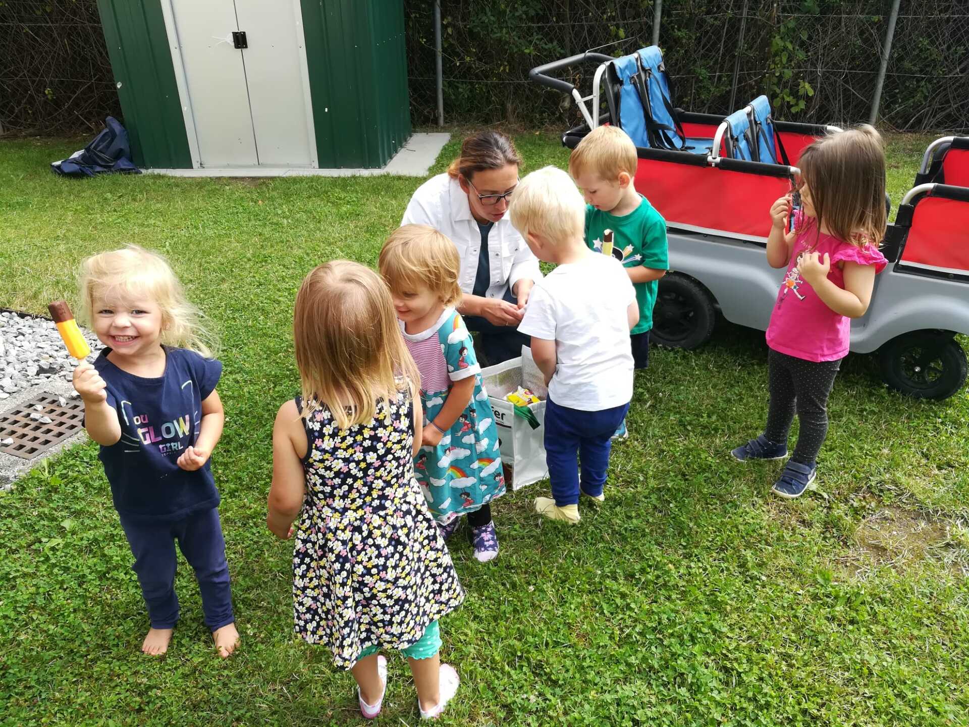 Mit einem Eis konnten wir auch alle Kindergartenkinder und Krabbelgruppekinder in der letzten Schulwoche überraschen.