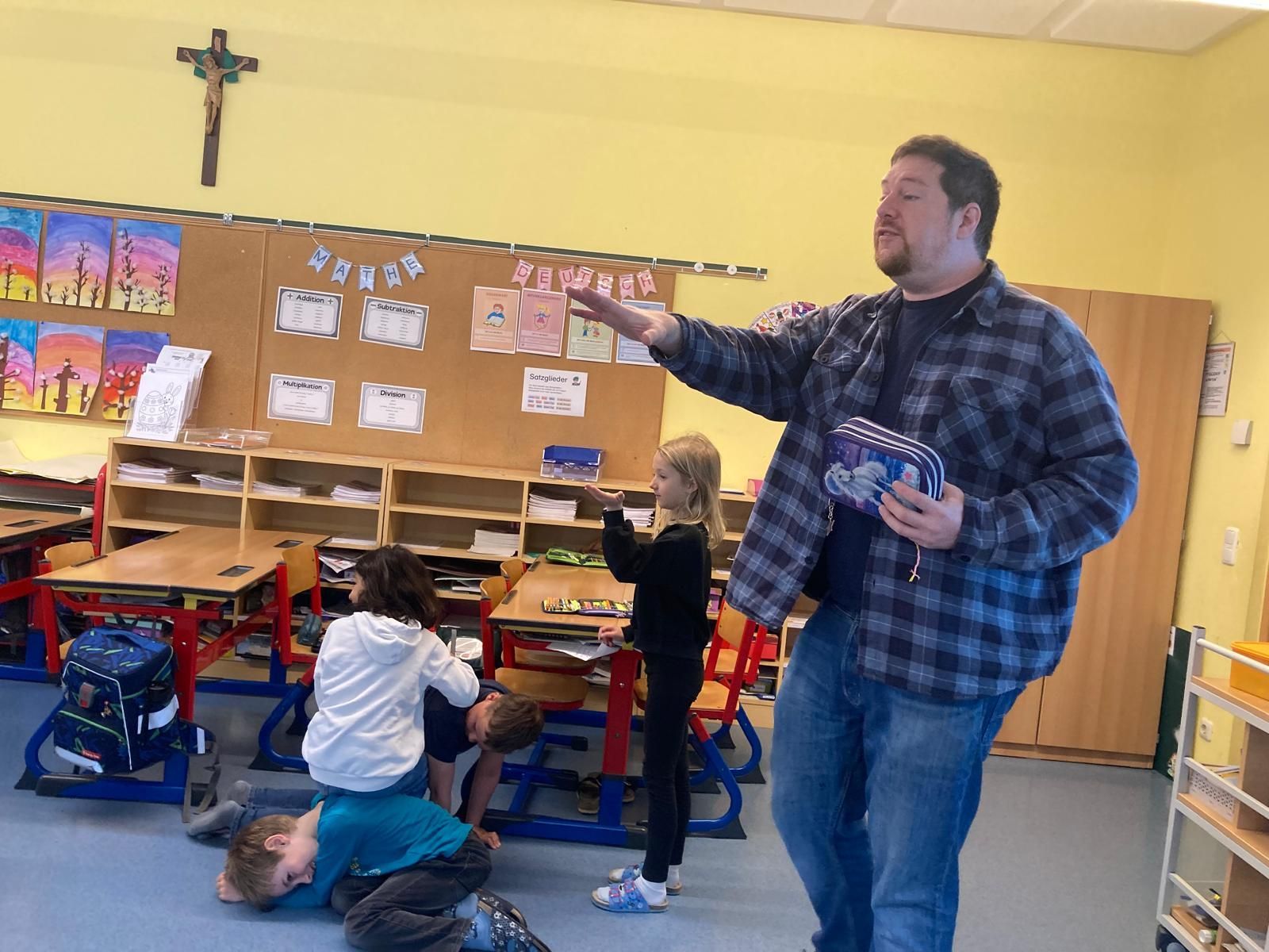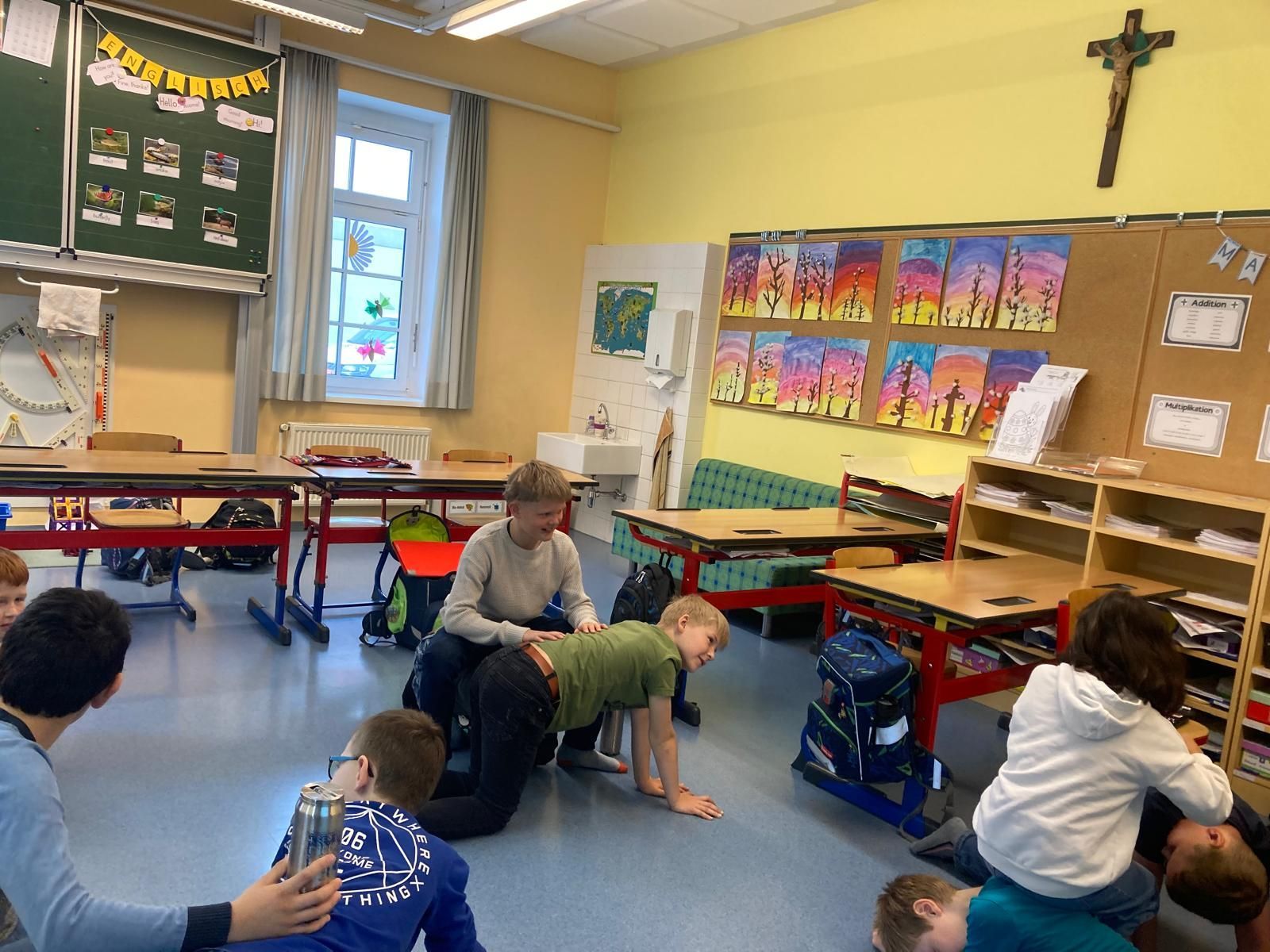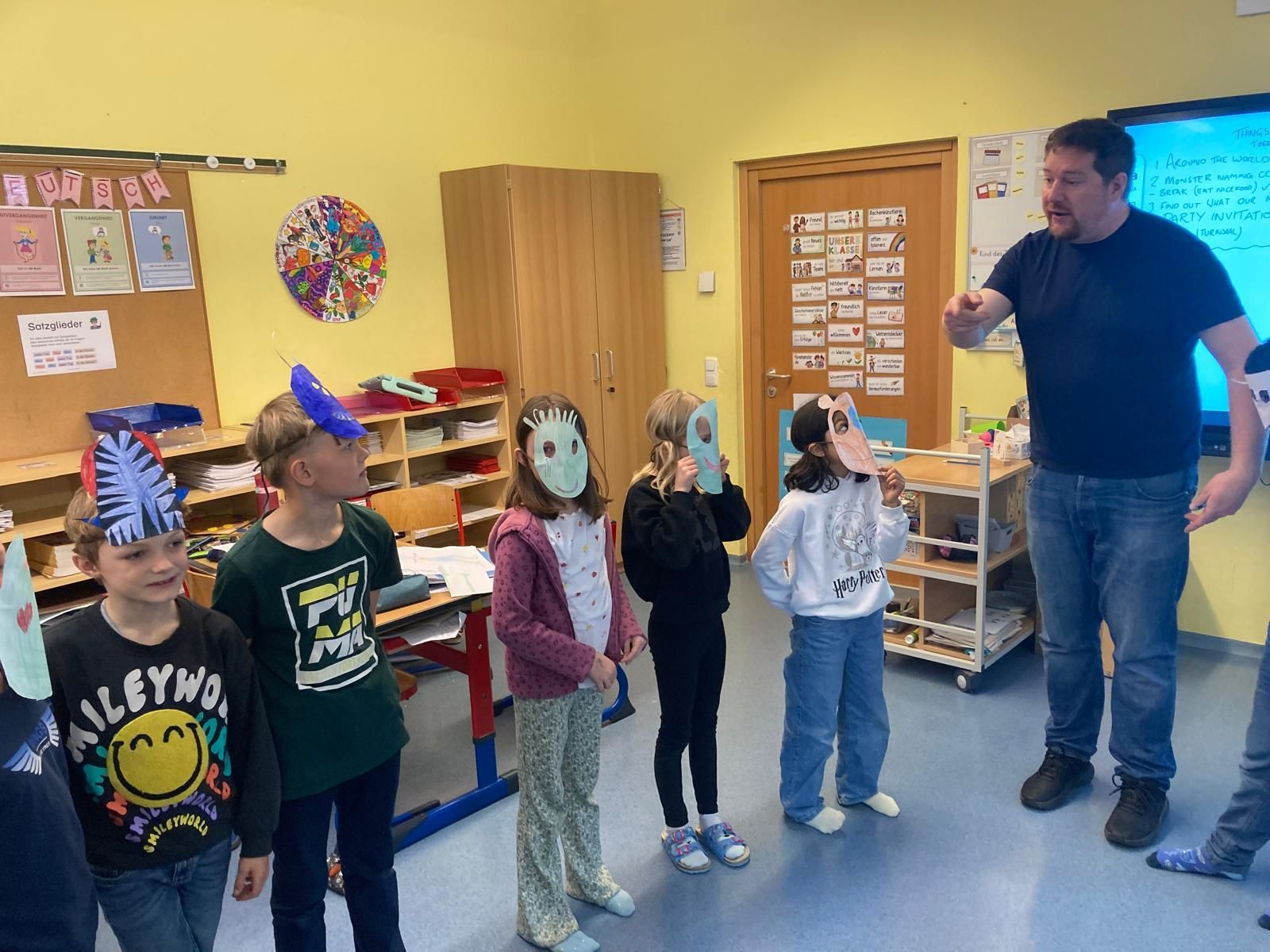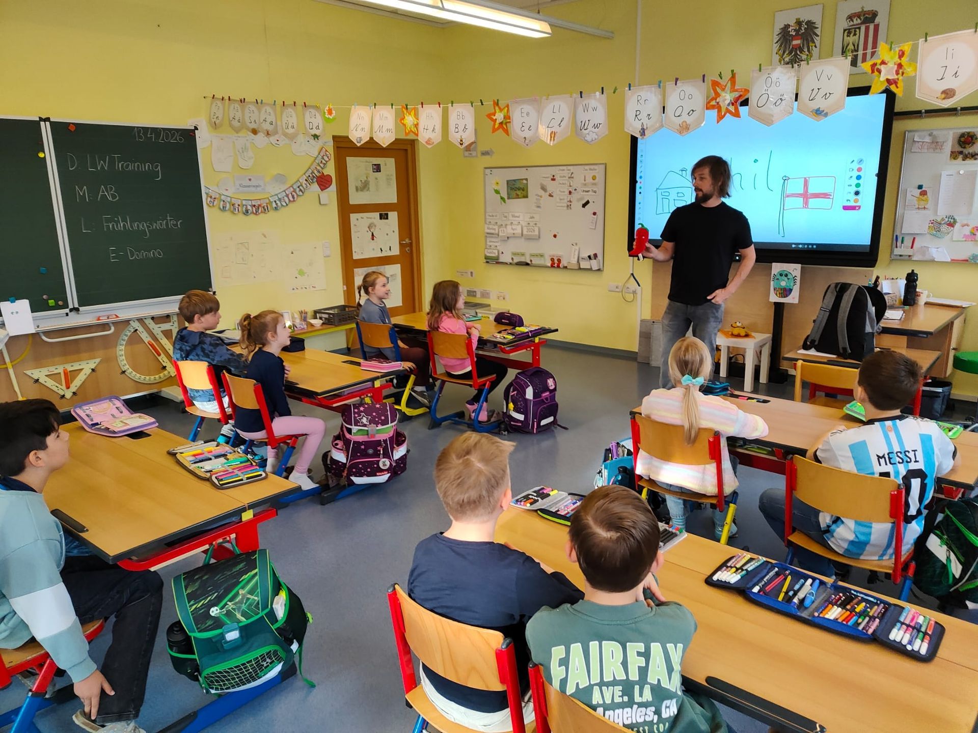 Von Montag, 13. April 2026 bis Mittwoch, 15. April 2026 durften die Kinder der 2. und 3. Klasse mit den Englisch- Projekttagen beginnen. An den drei Unterrichtstagen gestalteten die Native Speaker Phil & John den Unterricht gänzlich in englischer Sprache. Die Kinder hatten viel Freude an den englischen Spielen, Büchern und Theaterstücken und konnten in den drei Tagen ihre Scheu vor der Fremdsprache ablegen.
