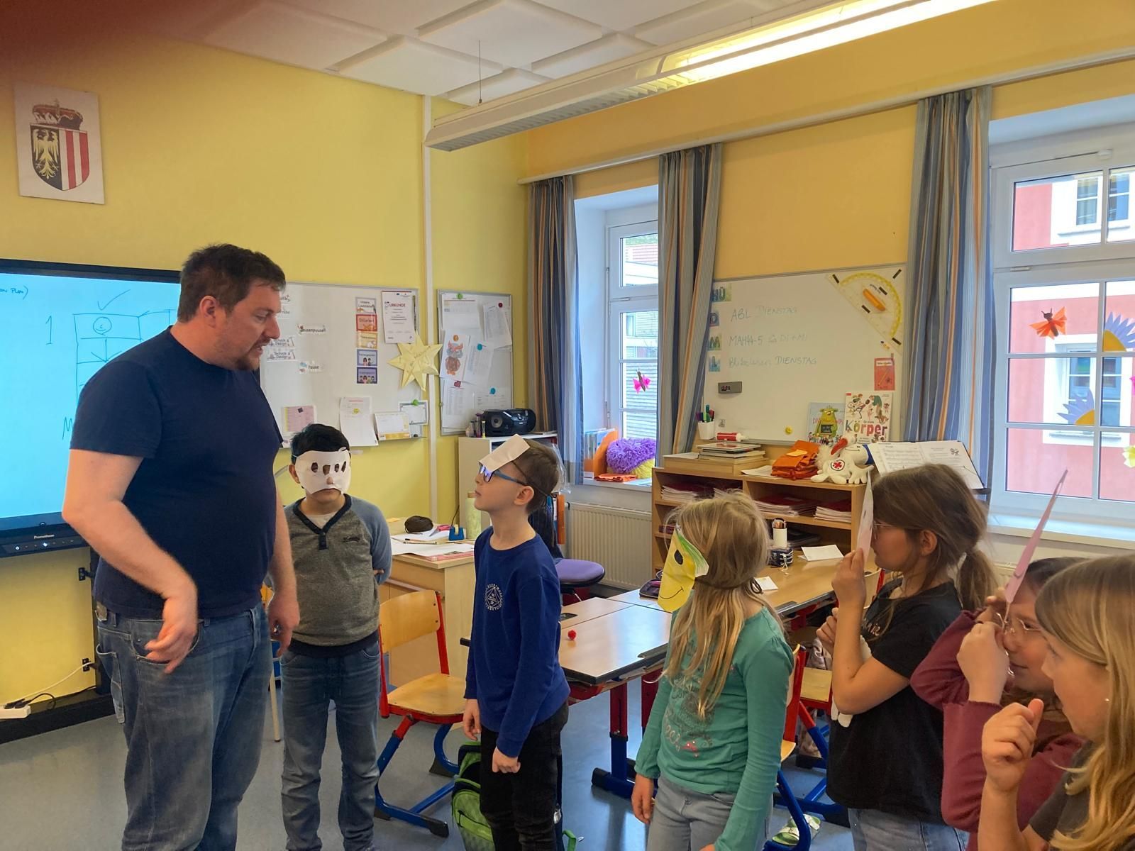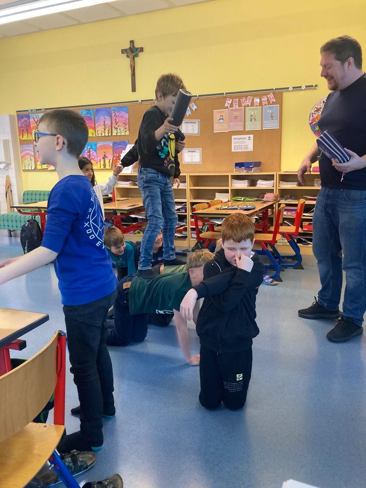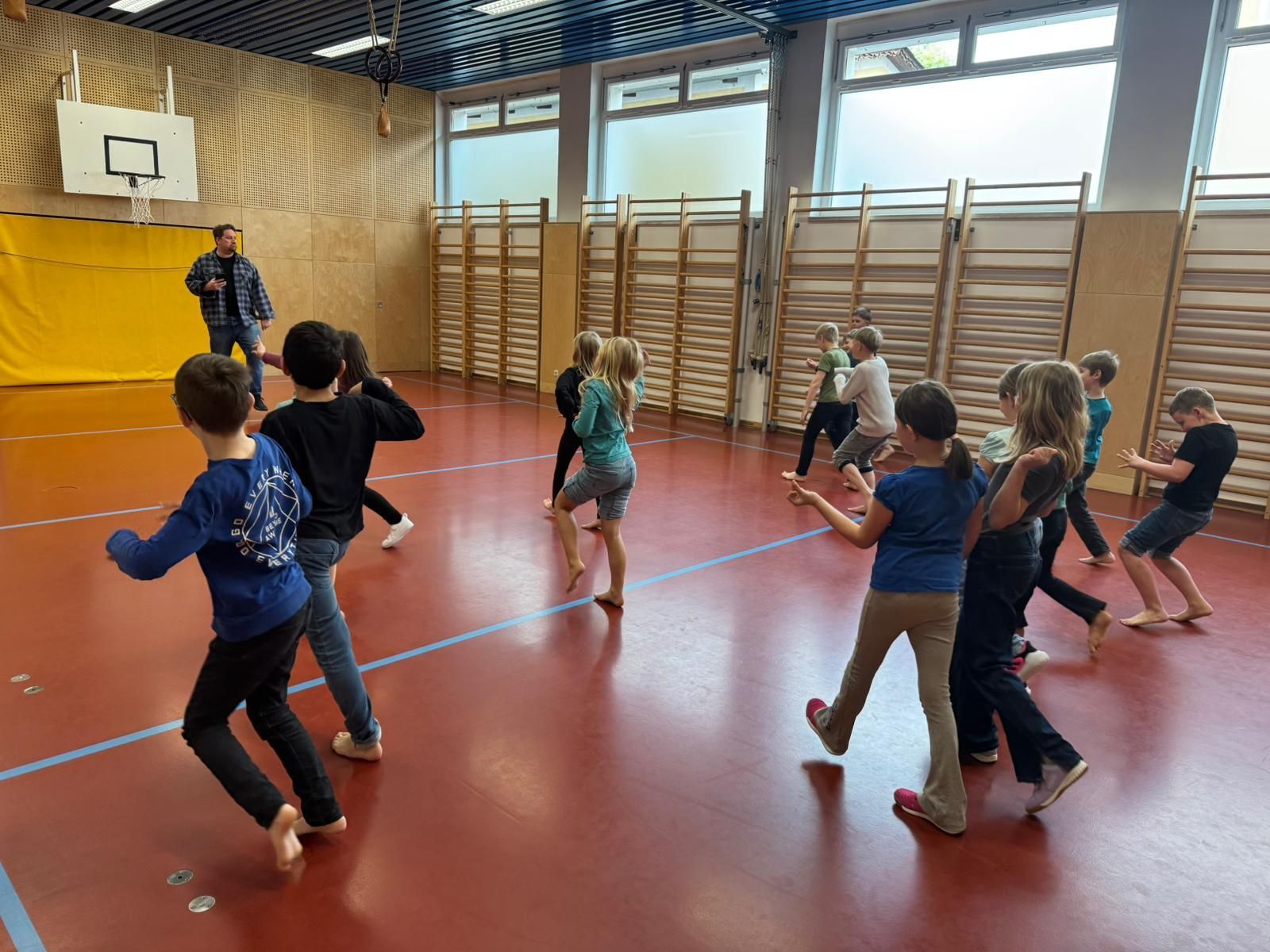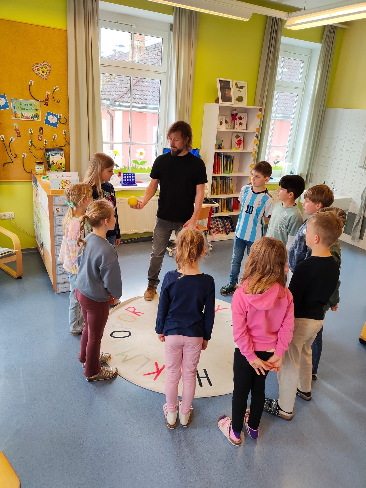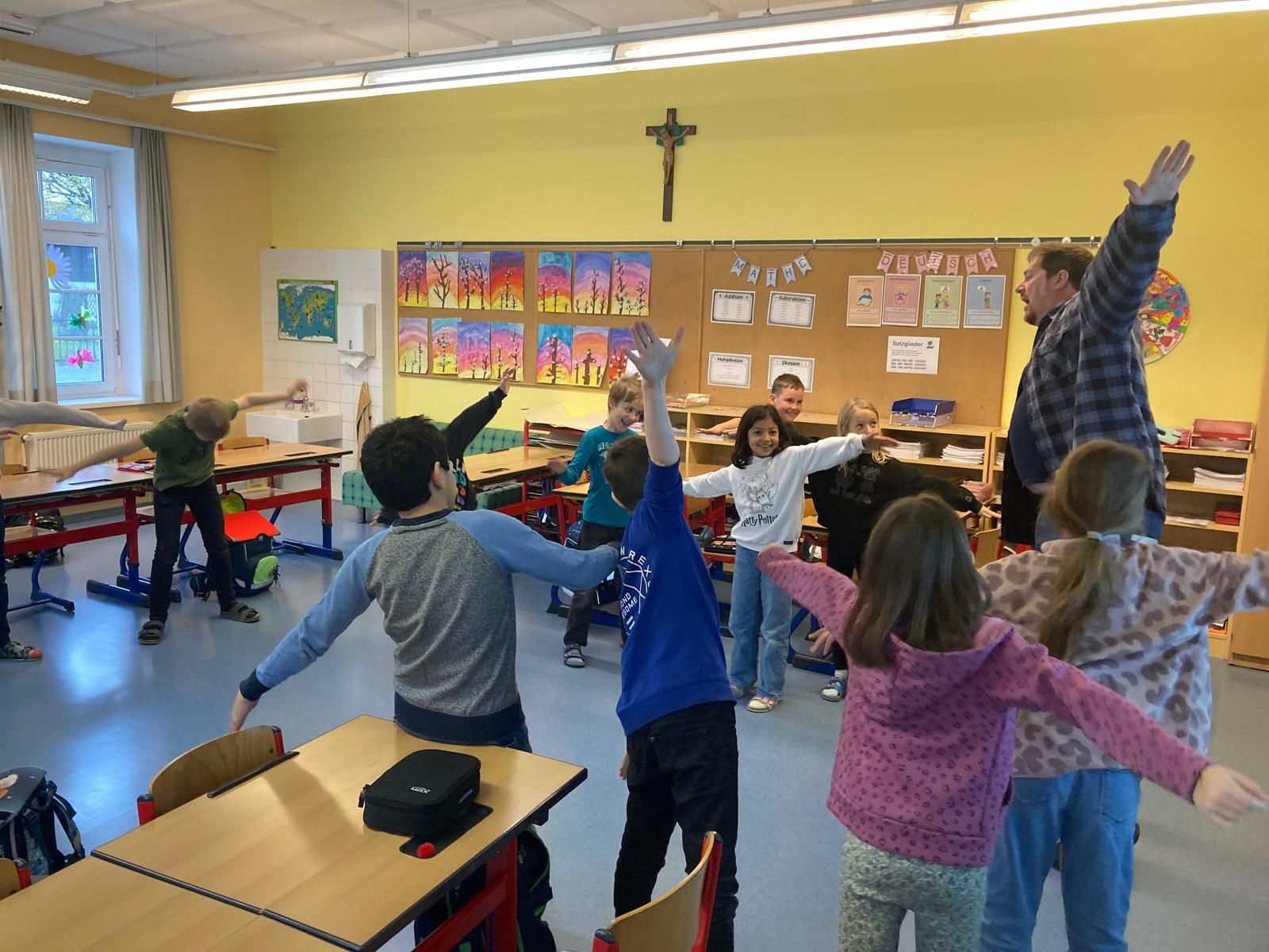 Von Montag, 13. April 2026 bis Mittwoch, 15. April 2026 durften die Kinder der 2. und 3. Klasse mit den Englisch- Projekttagen beginnen. An den drei Unterrichtstagen gestalteten die Native Speaker Phil & John den Unterricht gänzlich in englischer Sprache. Die Kinder hatten viel Freude an den englischen Spielen, Büchern und Theaterstücken und konnten in den drei Tagen ihre Scheu vor der Fremdsprache ablegen.