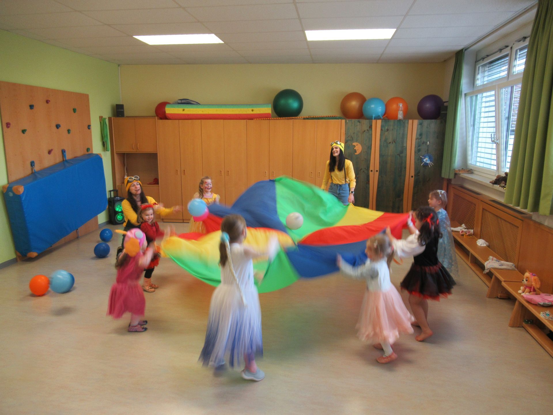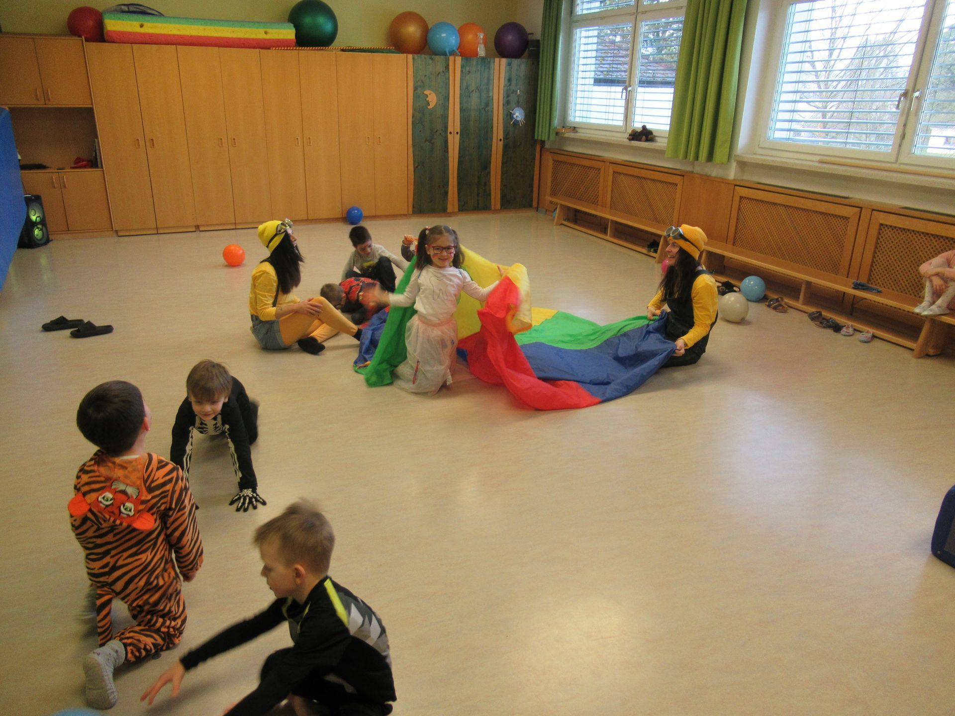 Zum Abschluss des bunten Vormittages gab es für alle noch eine Polonaise durch den Kindergarten mit ein paar lustigen Faschingstänzen im Turnsaal.