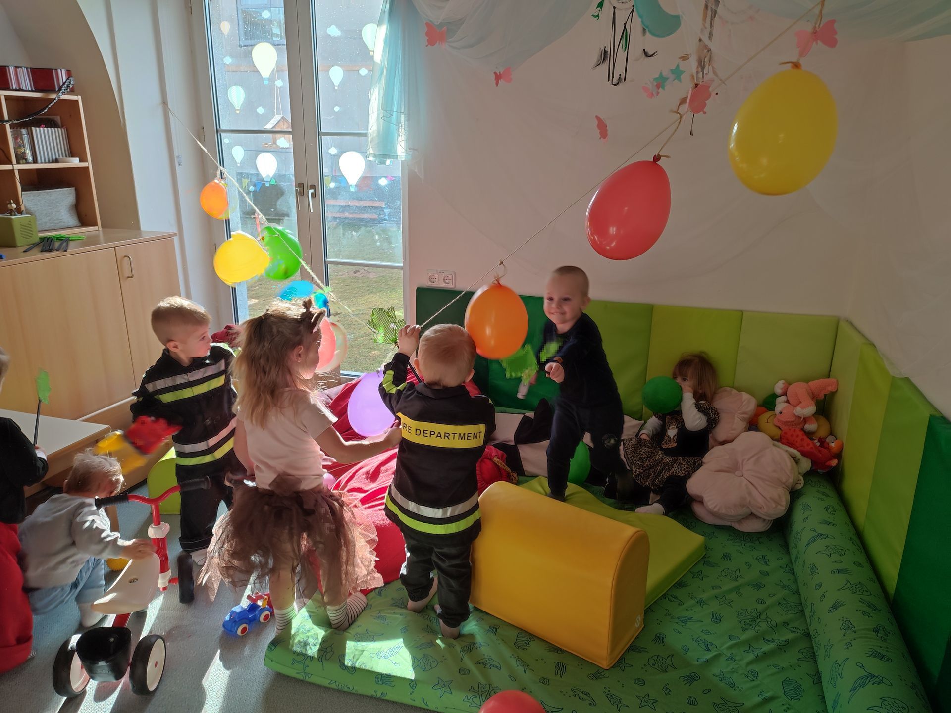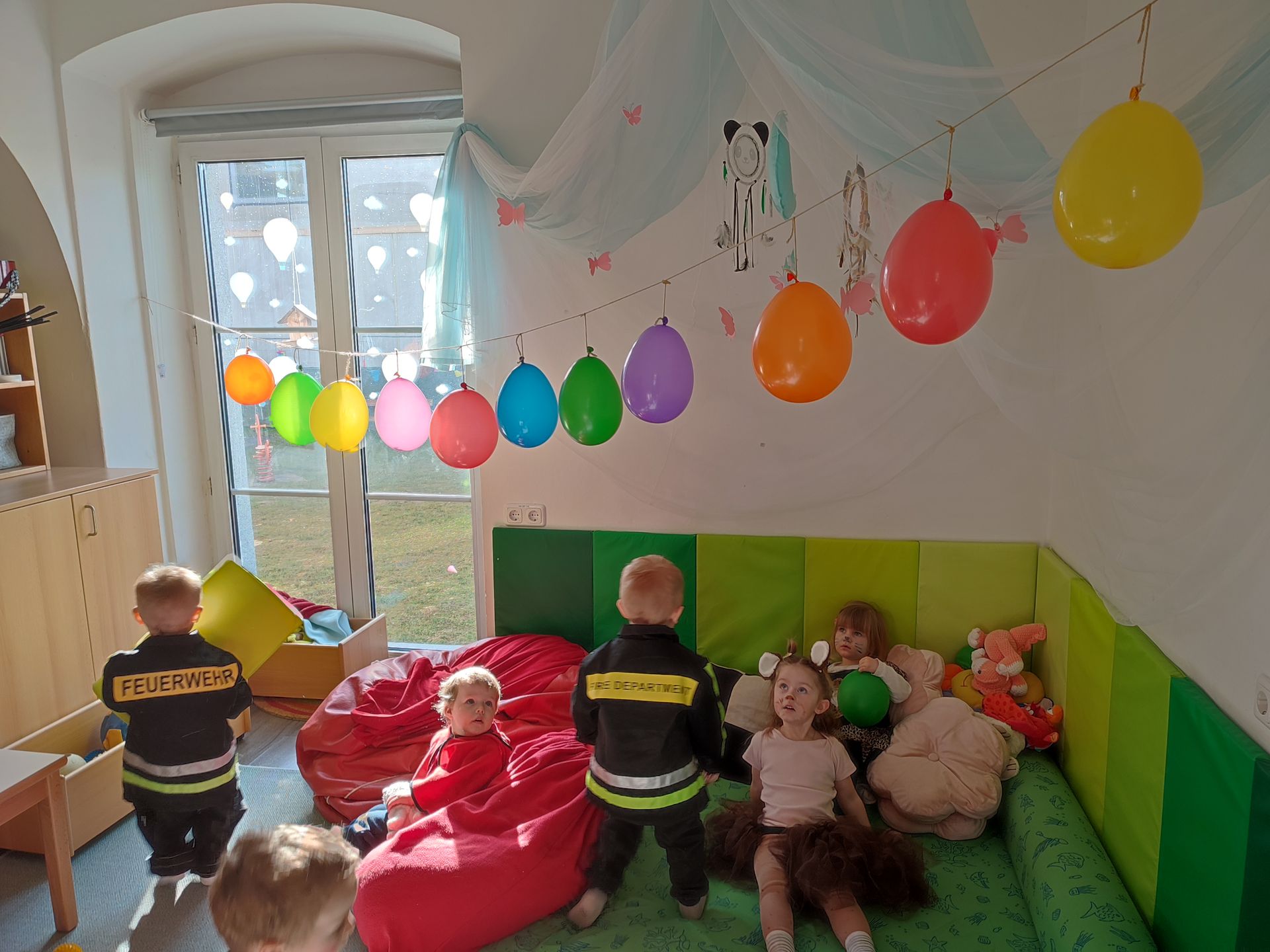 Den Faschingsdienstag feierten wir in vollen Zügen! Viele Kinder kamen voller Freude in tollen Kostümierungen – von Feuerwehrmännern über Tiger, Katzen, Bären, Drachen und Micky Maus war alles dabei! Die Kinder durften sich im Bällebad austoben und neben Musik und Tanz gab es in den aufgehängten Luftballons auch noch eine süße Überraschung – gar nicht so leicht da dranzukommen - aber gemeinsam haben es alle geschafft, eine Süßigkeit zu ergattern!