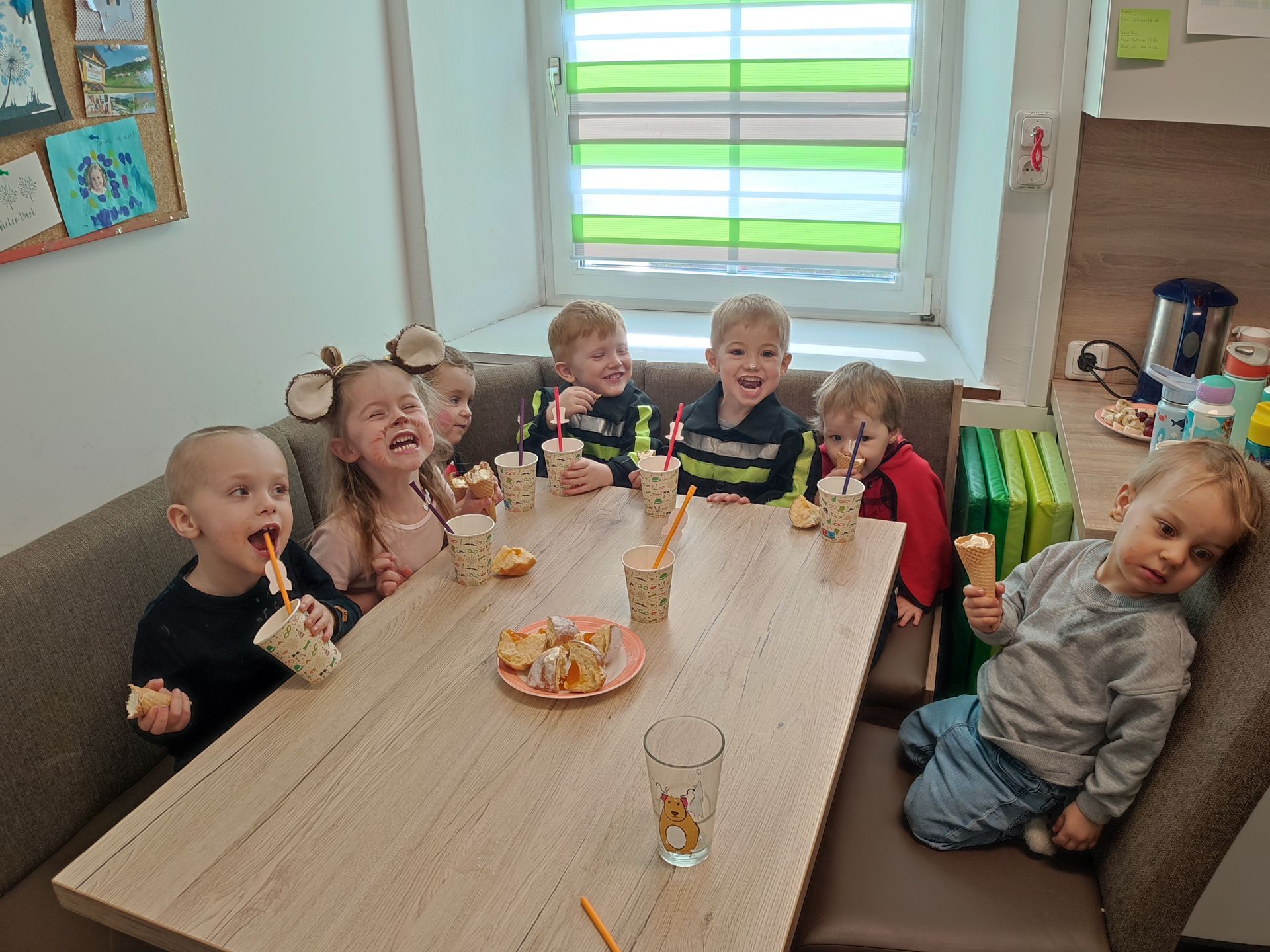 Natürlich darf bei einem richtigen Fest eine besondere Jause nicht fehlen. Neben einer leckeren Würsteljause und Eistütenkasperln gab es noch Krapfen, die wir vom Elternverein bekommen haben. Herzlichen Dank dafür!