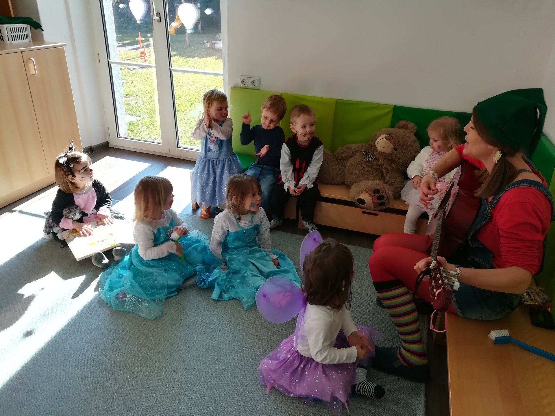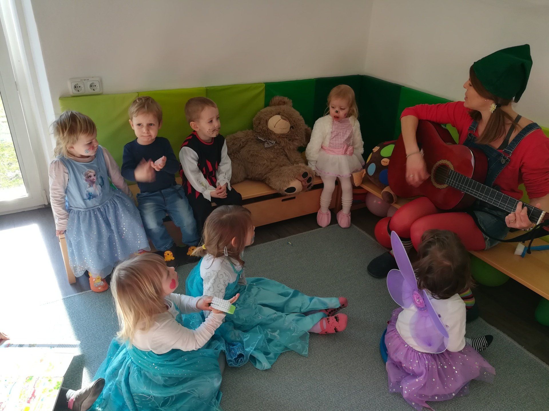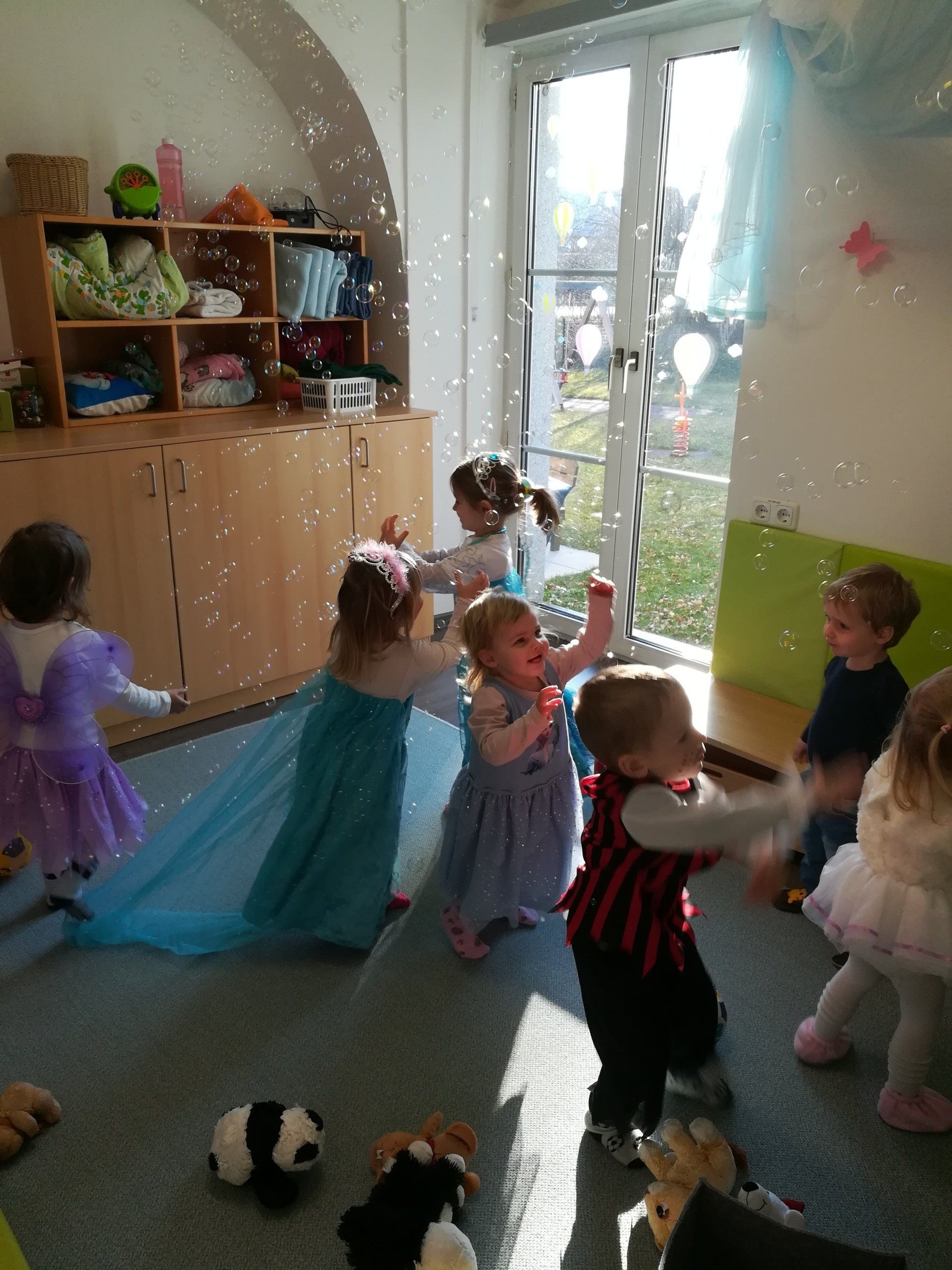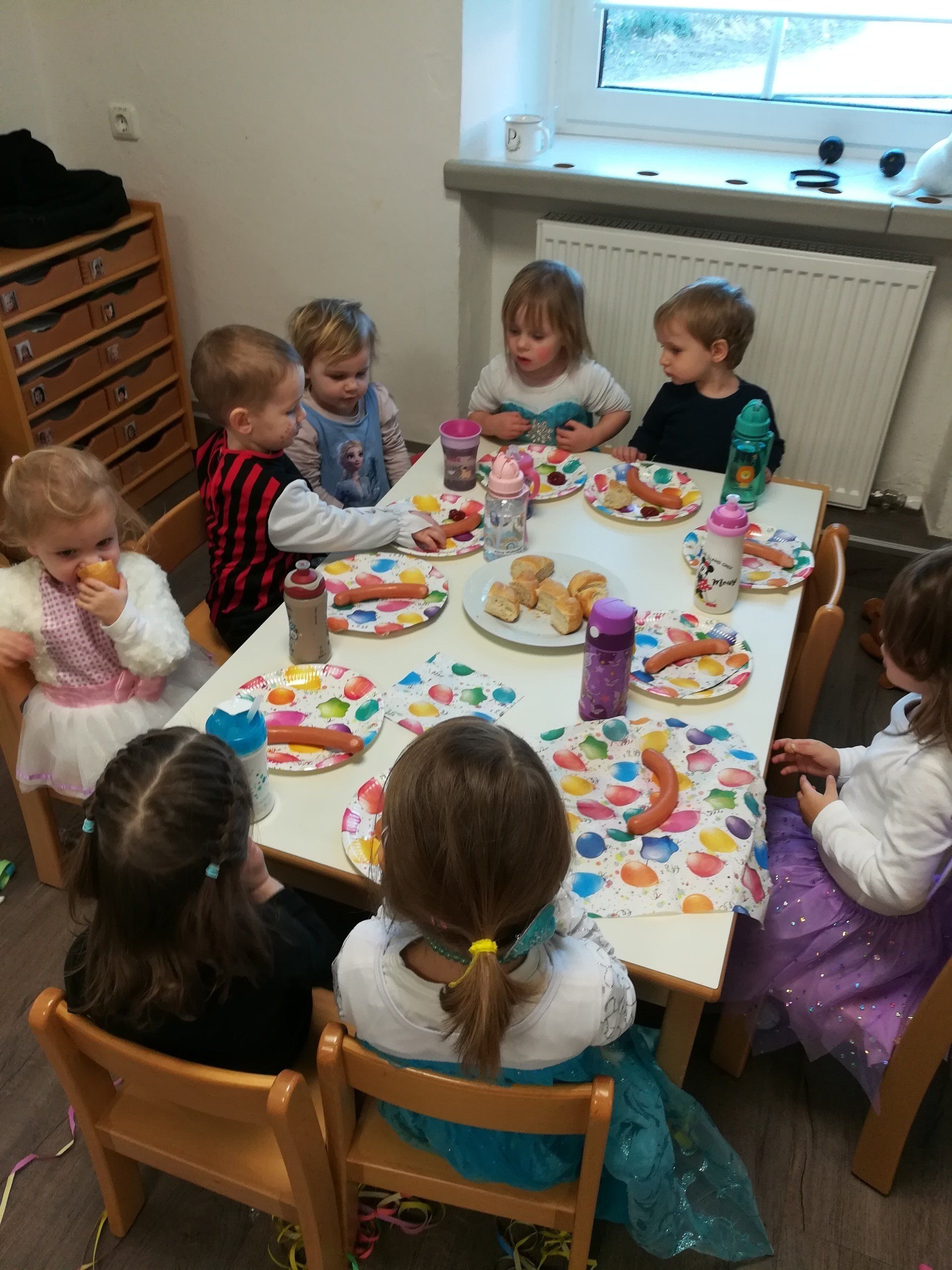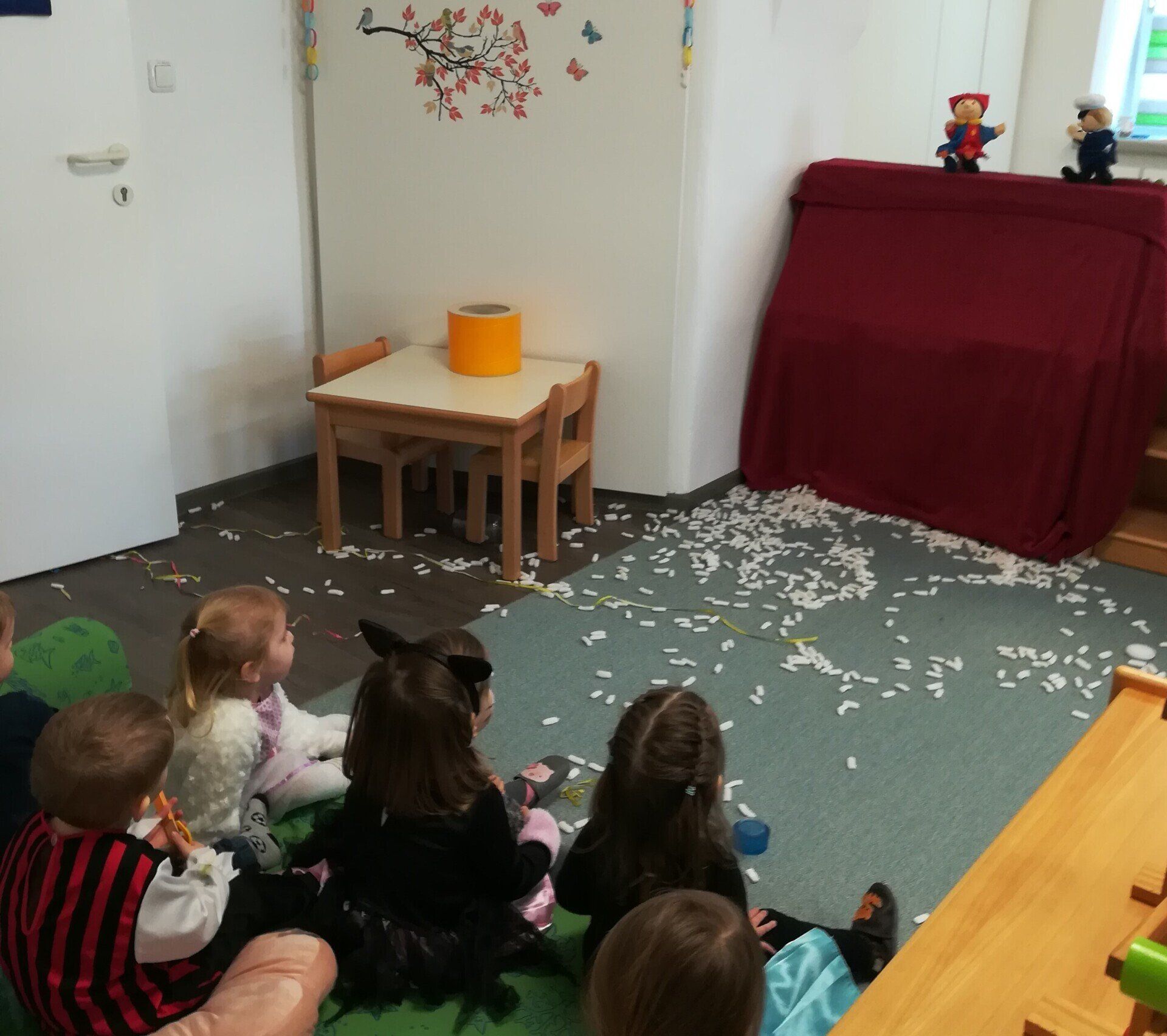 Am Faschingsdienstag kamen alle Kinder in ihren liebsten Verkleidungen in die Krabbelstube. Ein Pirat, Bob der Baumeister, Prinzessinnen, Schmetterlinge, eine Katze und sogar ein kleines Lämmlein waren mit dabei. Es besuchte uns auch wieder der Kasperl, der sich nach langer Suche letztendlich als Gespenst verkleidet hat. Es wurde gesungen, getanzt, getobt, geschminkt und zur Jause gab es Würstel und Faschingskrapfen. Ein herzliches Dankeschön an den Elternverein Saxen und die Familie Wartha für die Krapfenspende!
