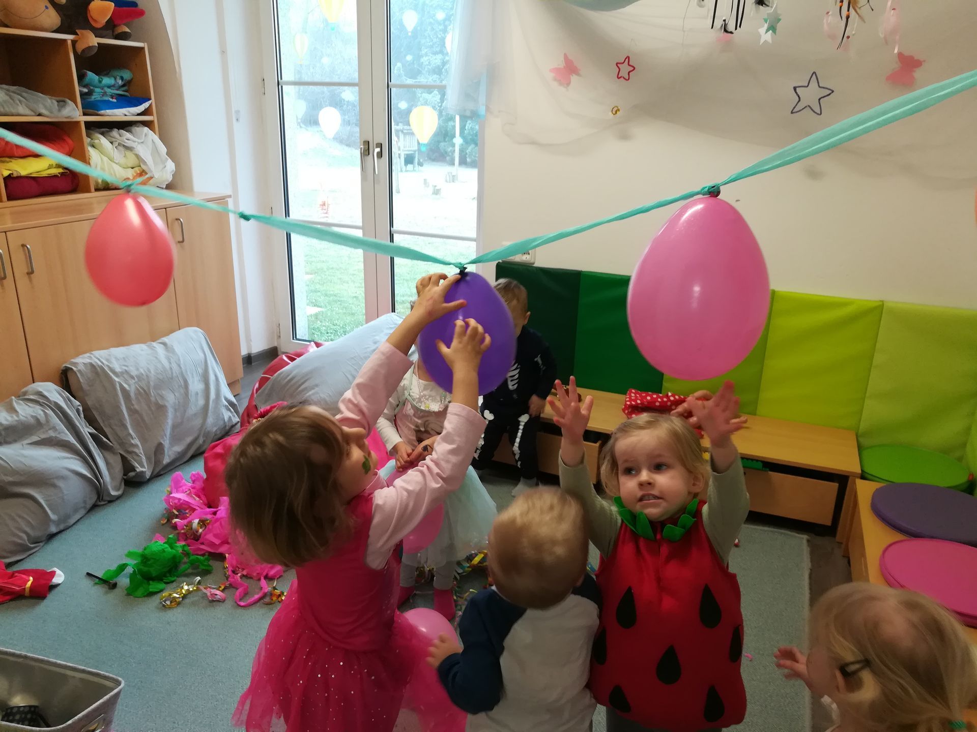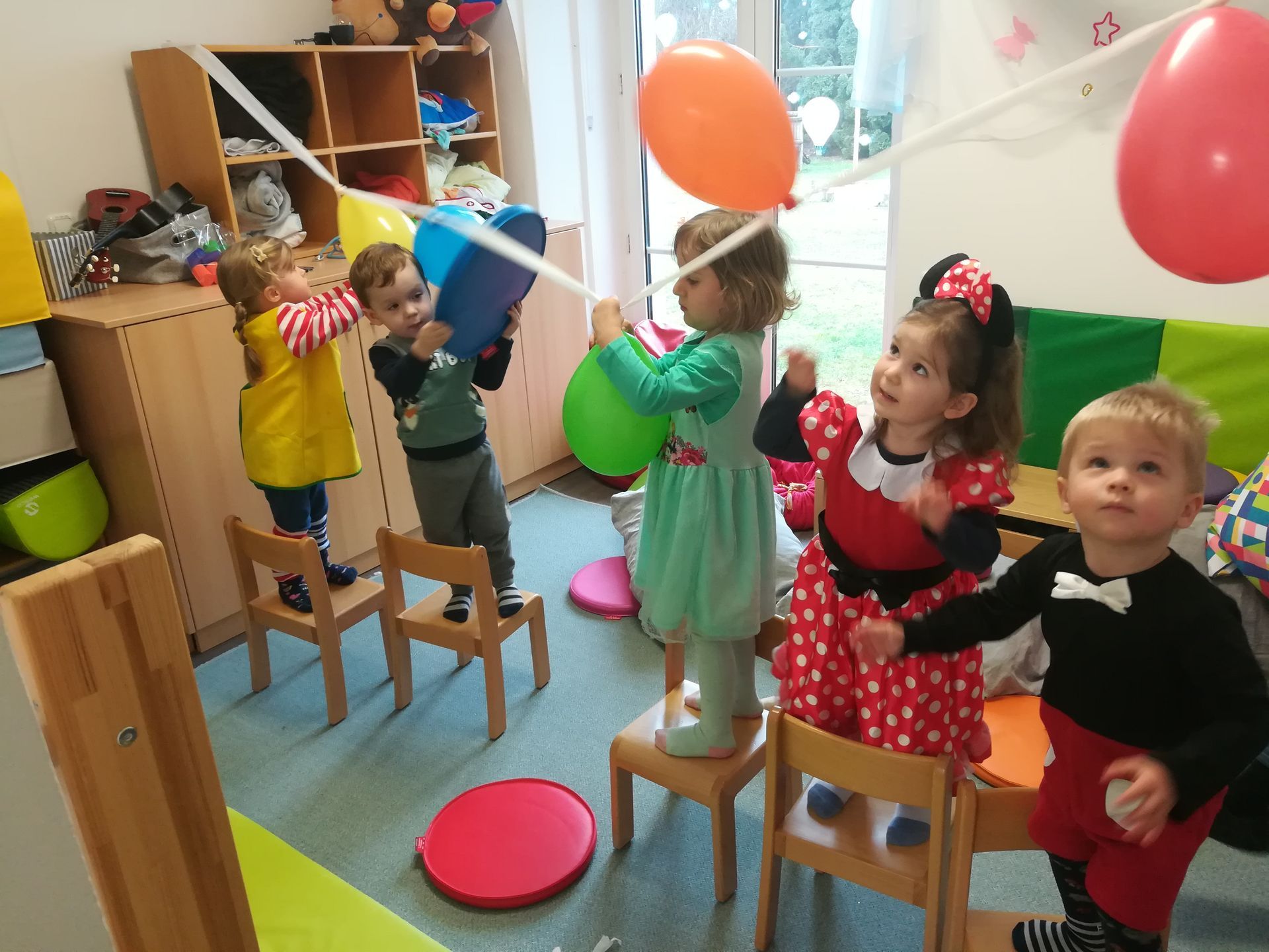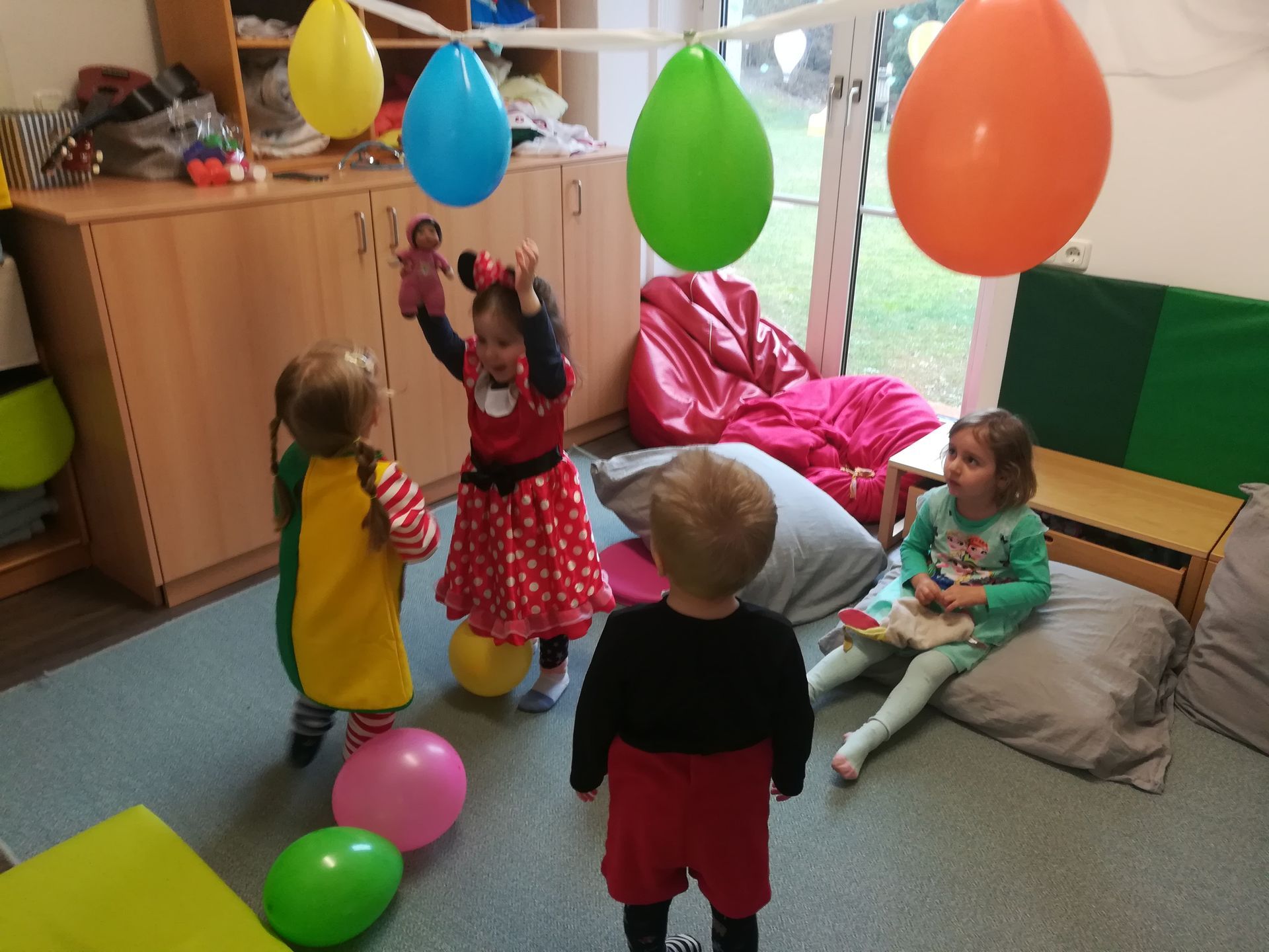 In diesem Jahr haben wir den Fasching richtig hoch leben lassen! Gleich eine ganze Woche lang feierten wir in lustigen Kostümen. Die Kinder durften täglich aufs Neue wählen, ob und wie sie sich verkleiden wollen. Spiel und Spaß und auch mal etwas "Blödsinn machen" standen im Vordergrund. Ein Luftballontanz mit Süssigkeiten, eine Luftschlangenparty, selbstständiges Schminken, ein lustiges Kasperltheater und natürlich die jährliche Würstel- und Krapfenjause waren Programmpunkte. Es war eine lustige und abwechslungsreiche Faschingswoche!