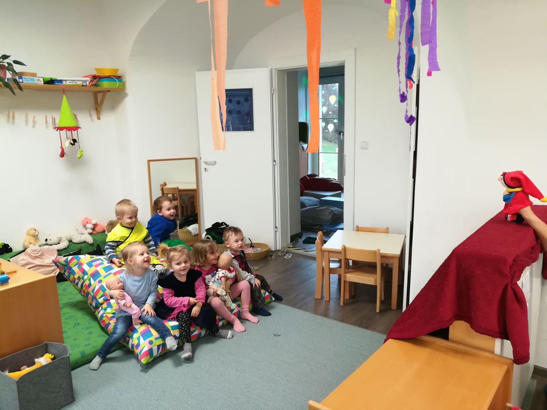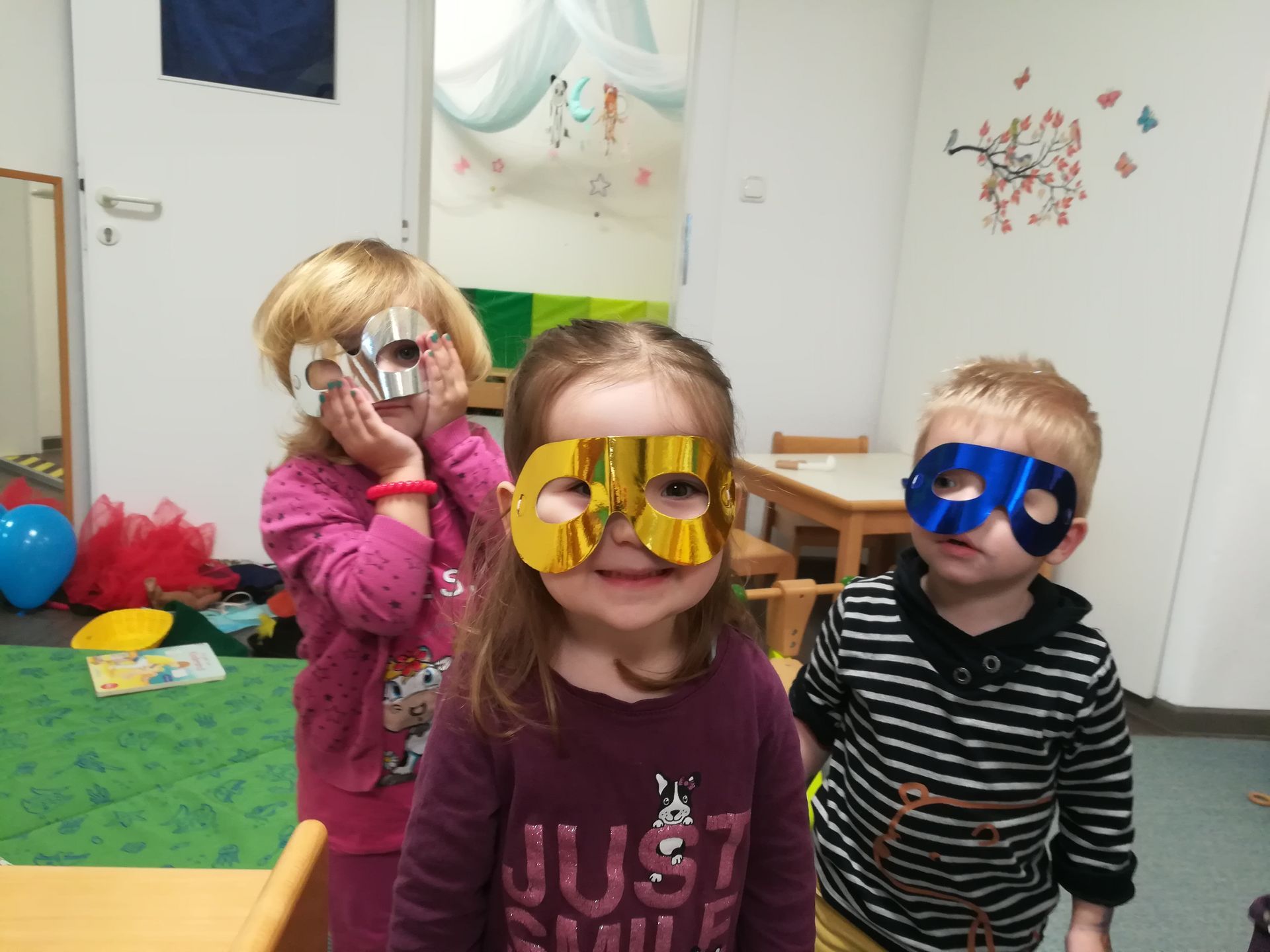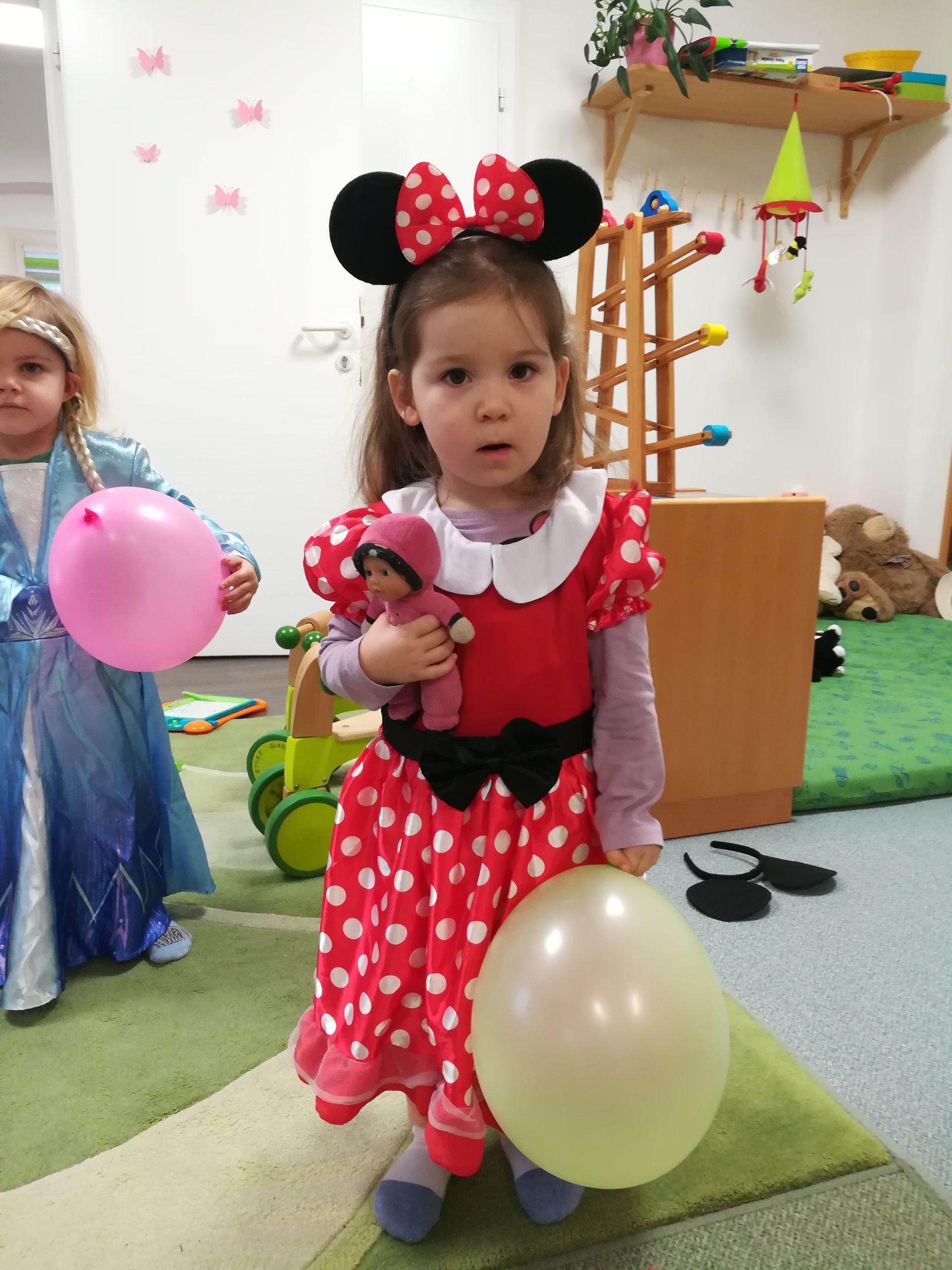 In diesem Jahr haben wir den Fasching richtig hoch leben lassen! Gleich eine ganze Woche lang feierten wir in lustigen Kostümen. Die Kinder durften täglich aufs Neue wählen, ob und wie sie sich verkleiden wollen. Spiel und Spaß und auch mal etwas "Blödsinn machen" standen im Vordergrund. Ein Luftballontanz mit Süssigkeiten, eine Luftschlangenparty, selbstständiges Schminken, ein lustiges Kasperltheater und natürlich die jährliche Würstel- und Krapfenjause waren Programmpunkte. Es war eine lustige und abwechslungsreiche Faschingswoche!