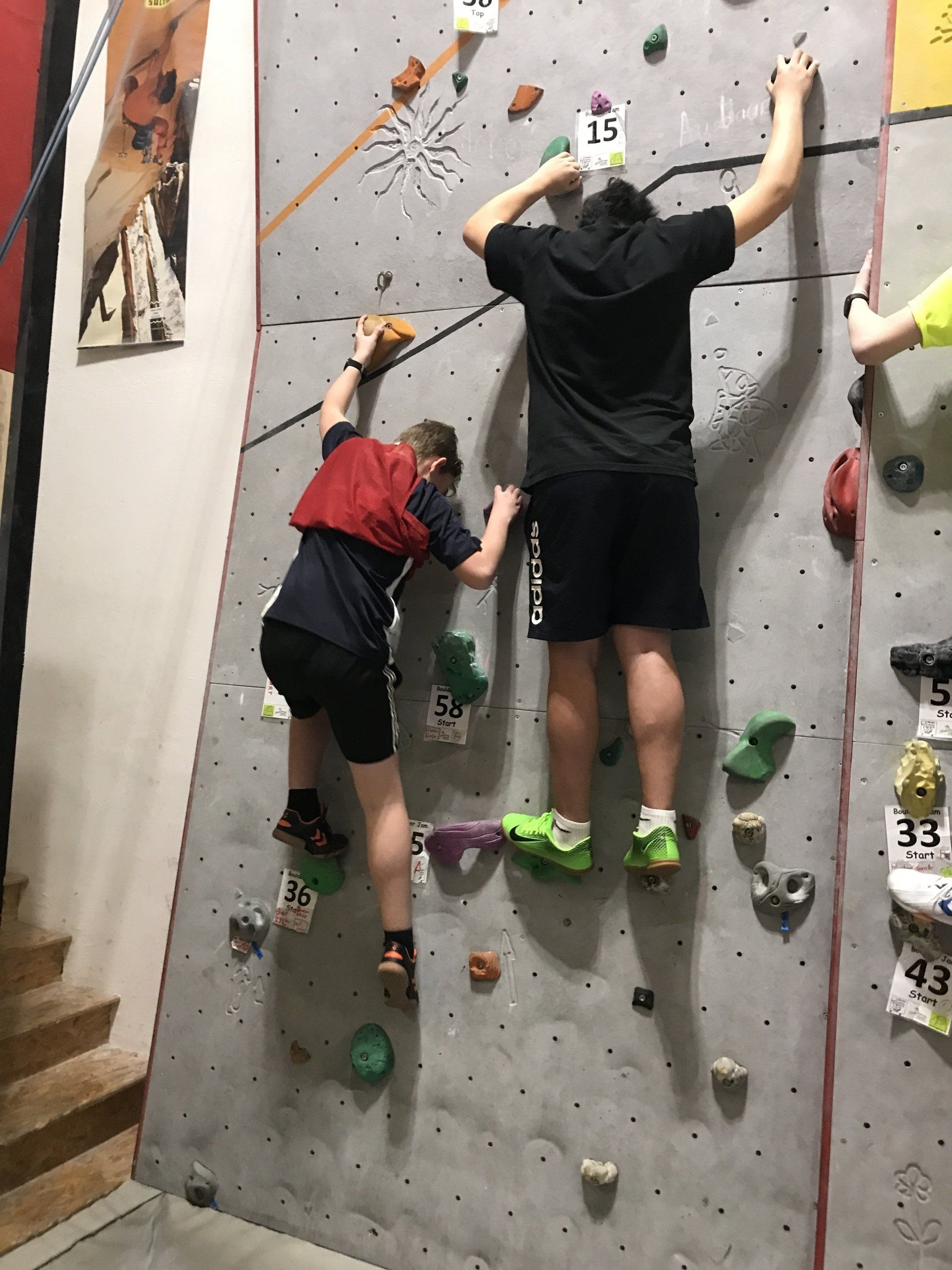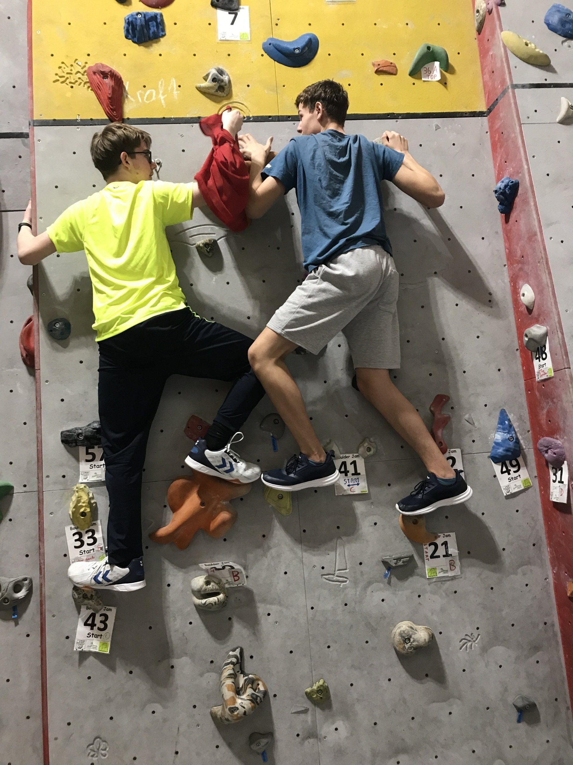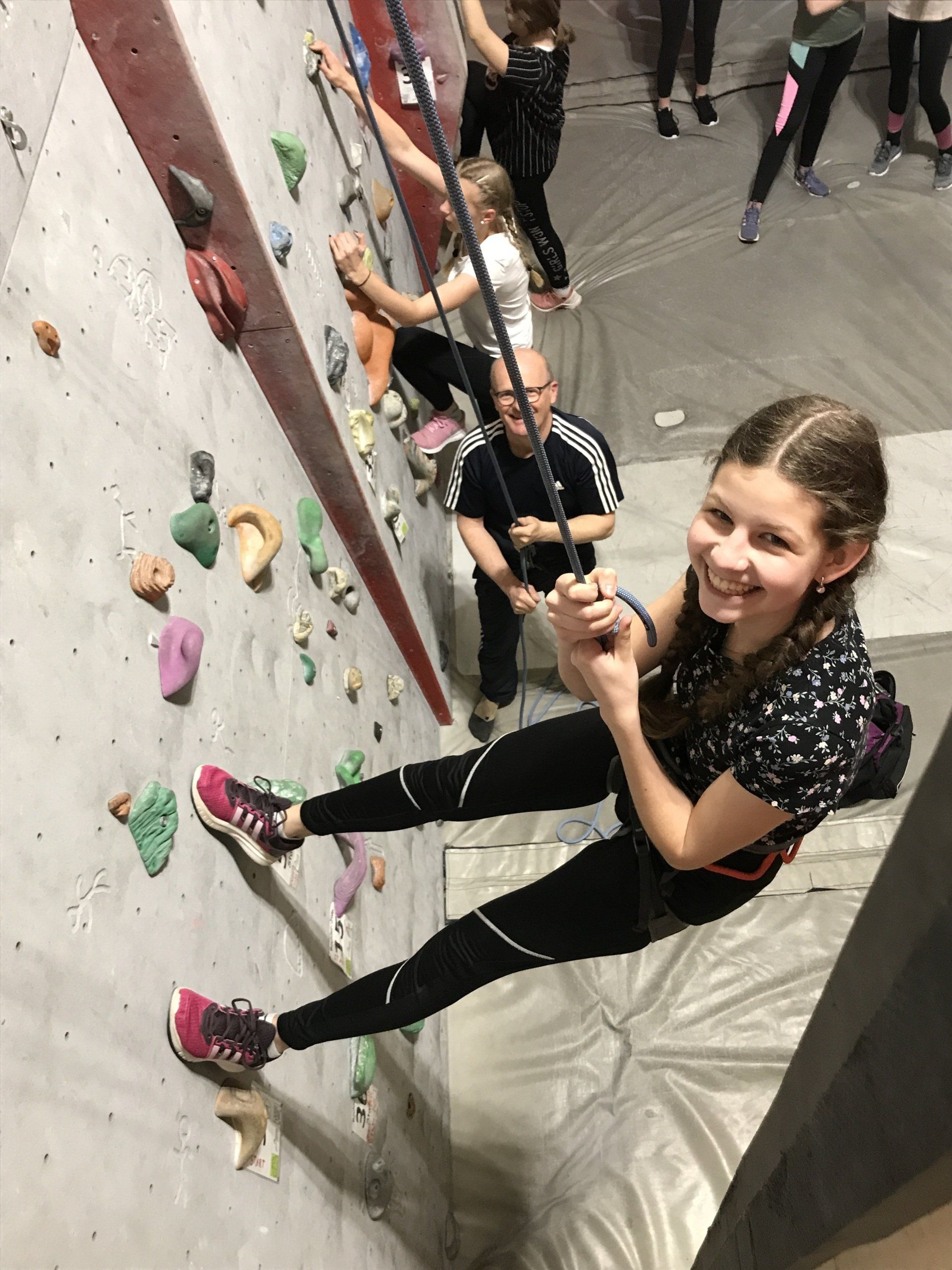 Inm Unterricht Fit und Gesund probieren wir verschiedene Sportarten aus, darunter auch Klettern in der Halle - Toprope kletternin der Kletterhalle Grein stand mit den 4. Klassen auf dem Plan. Für einige Schüler war es eine völlig neue Erfahrung, sie waren mit Begeisterung und vollem Einsatz dabei.