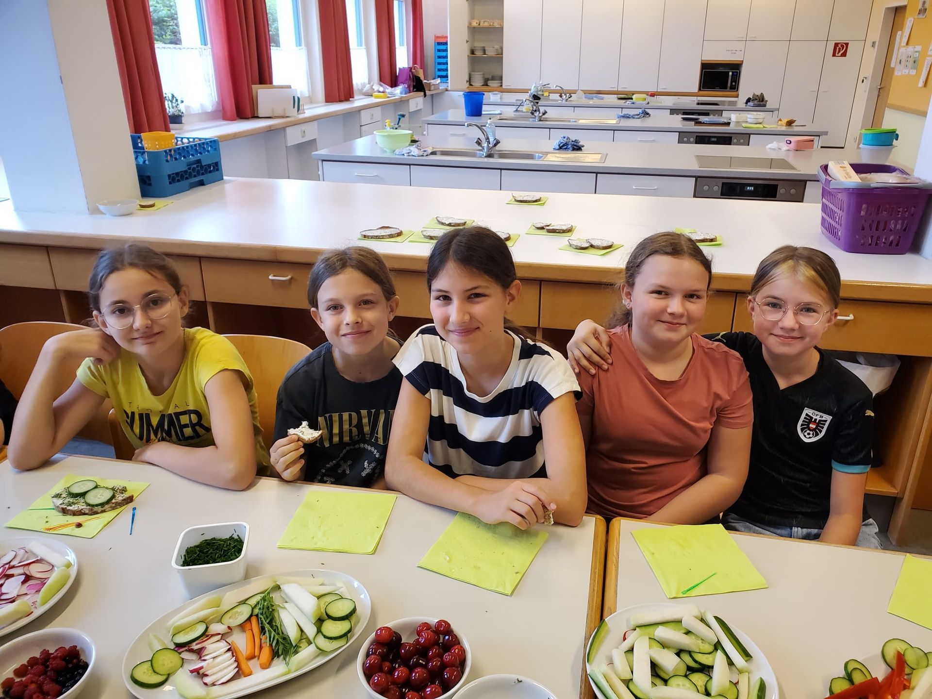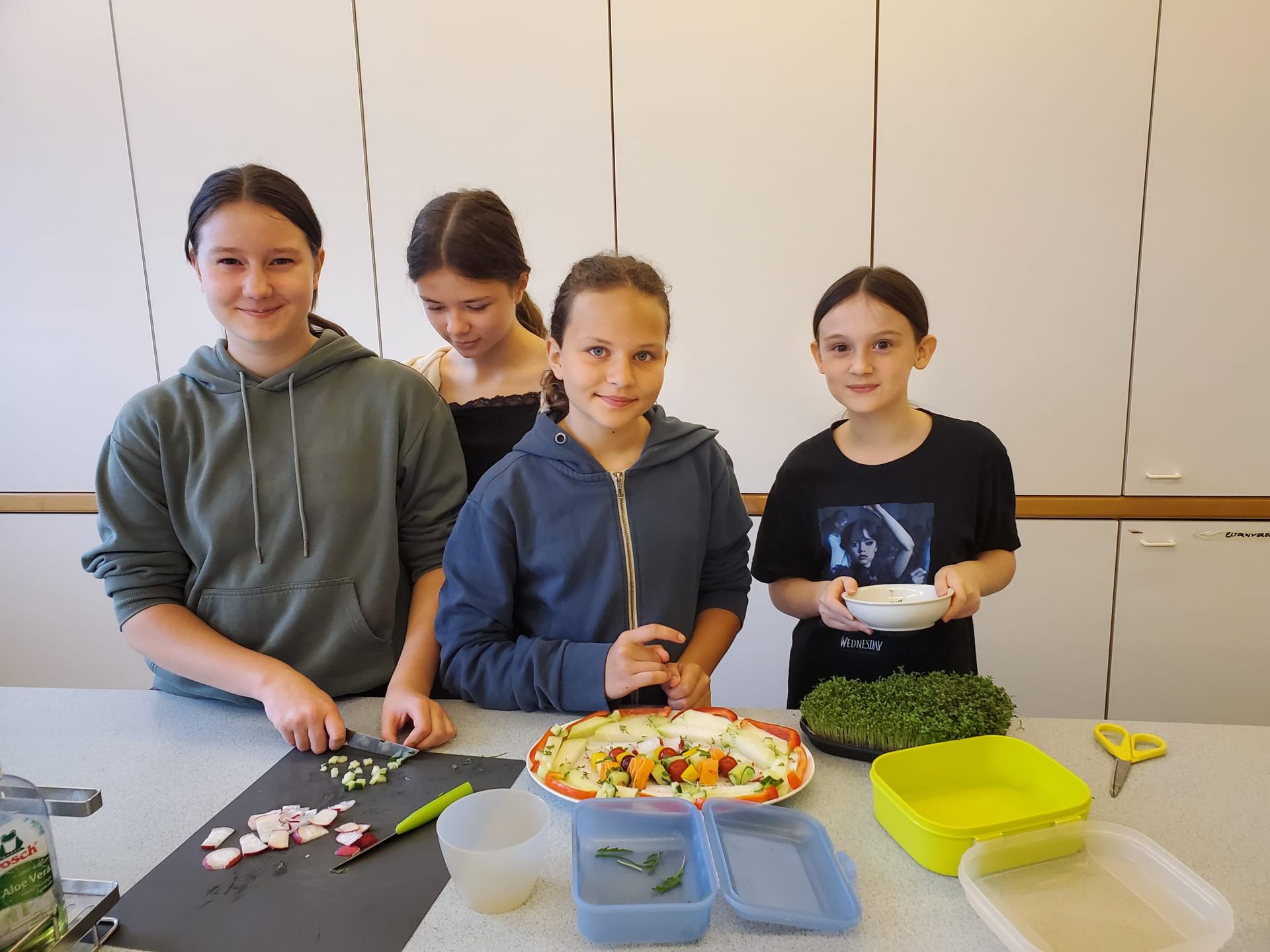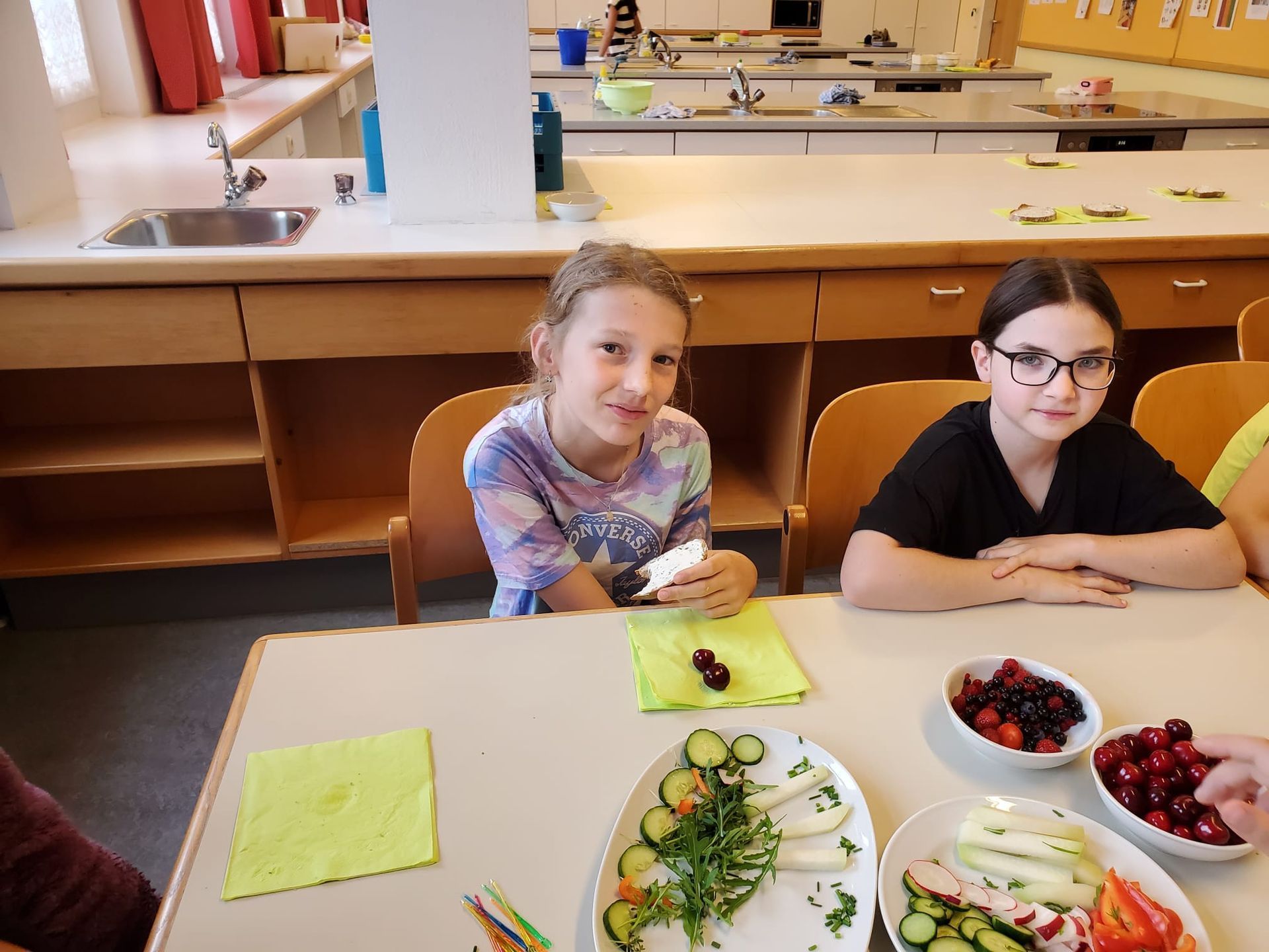 In Rahmen de s Biologieunterrichts wurde in der 1. Klasse unter Anleitung von Frau Christine Wallner ein gesunder Jausentisch zubereitet.....