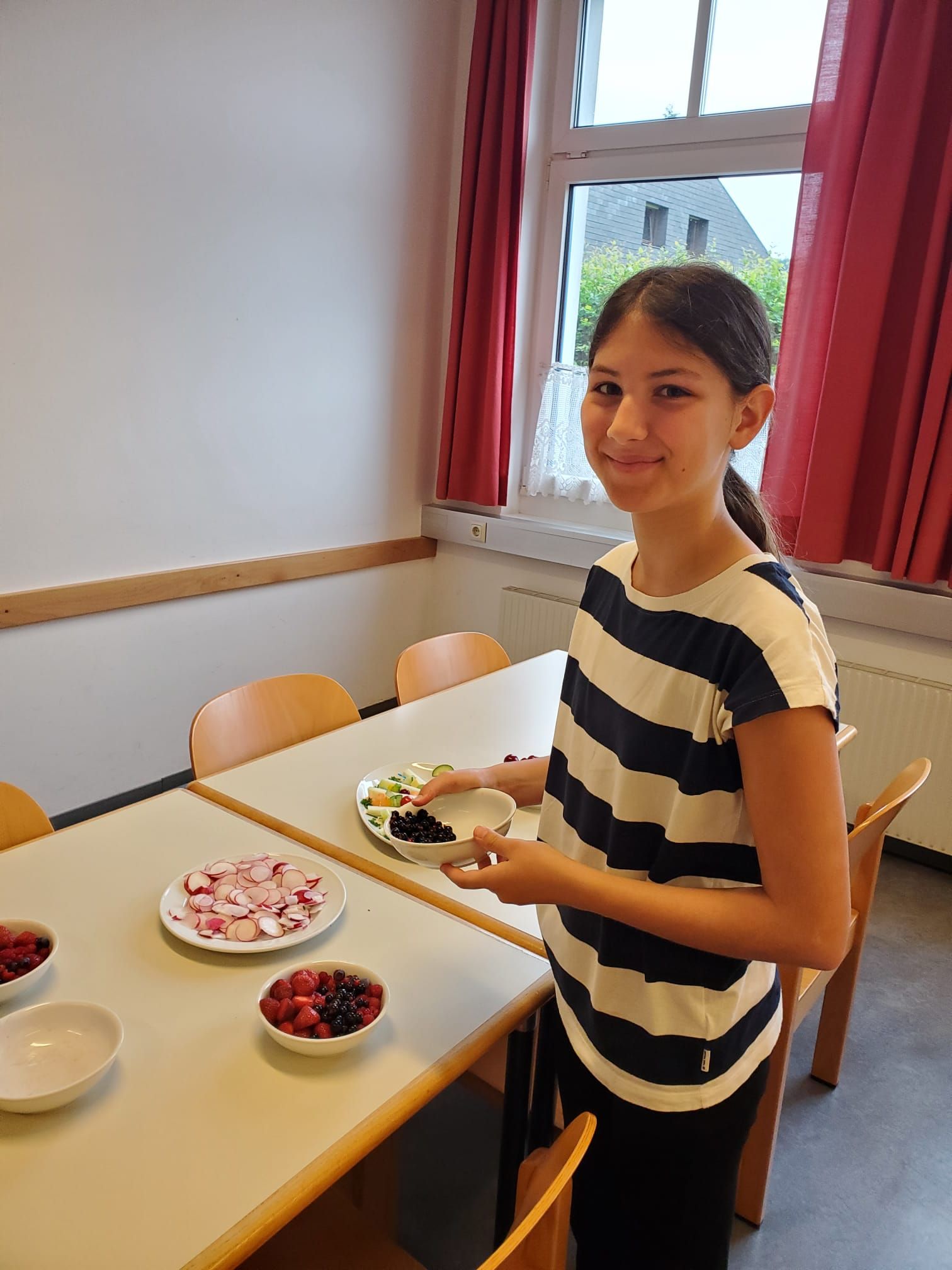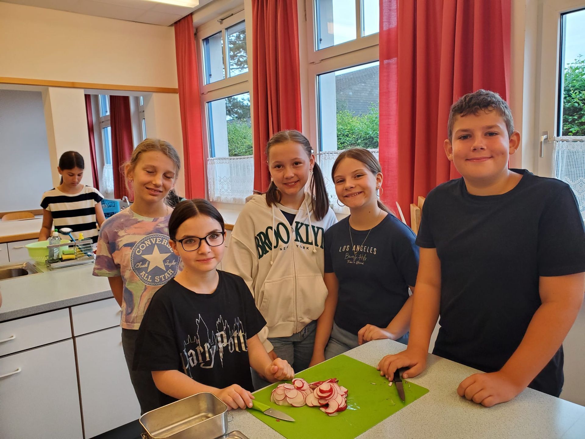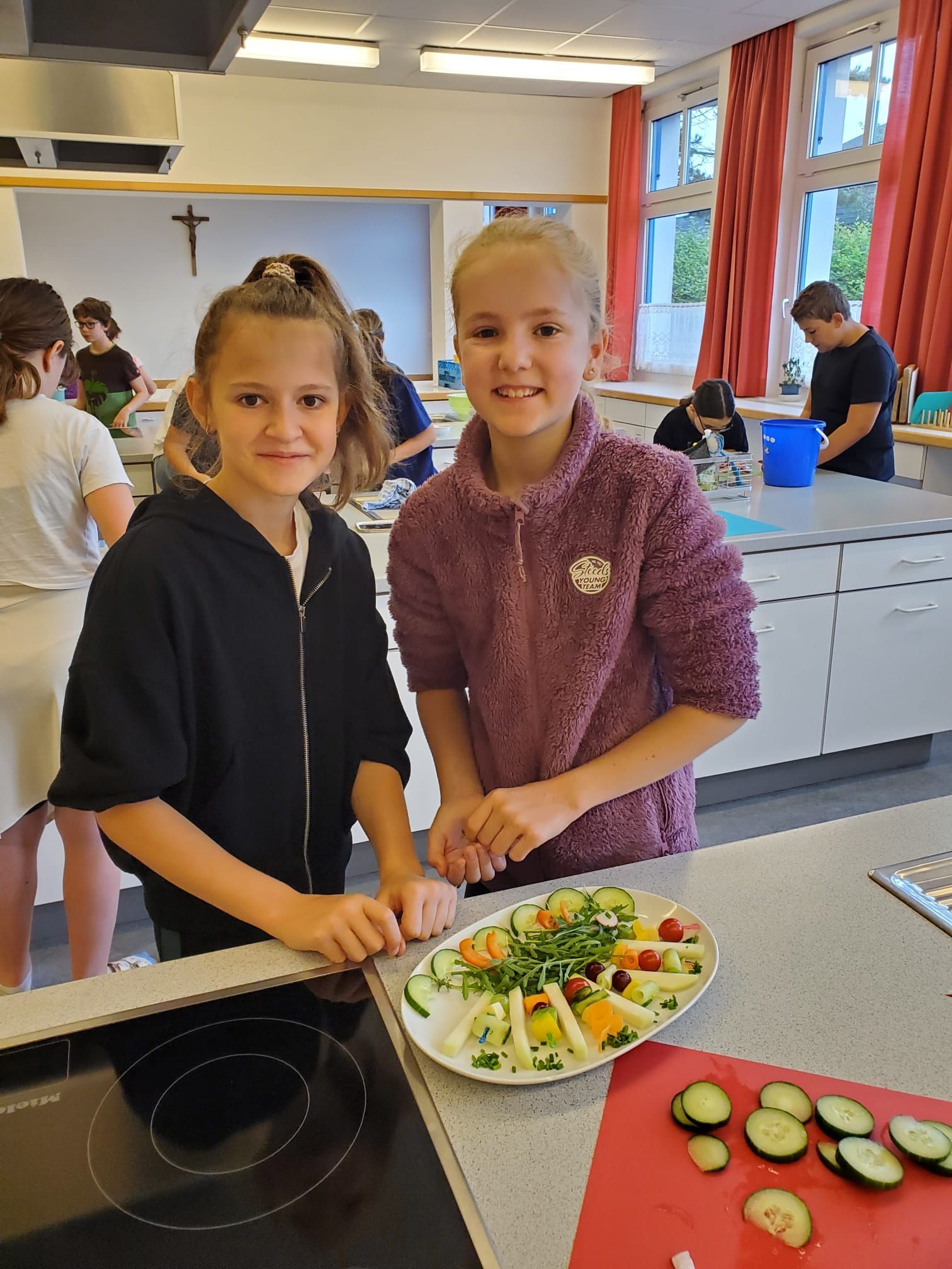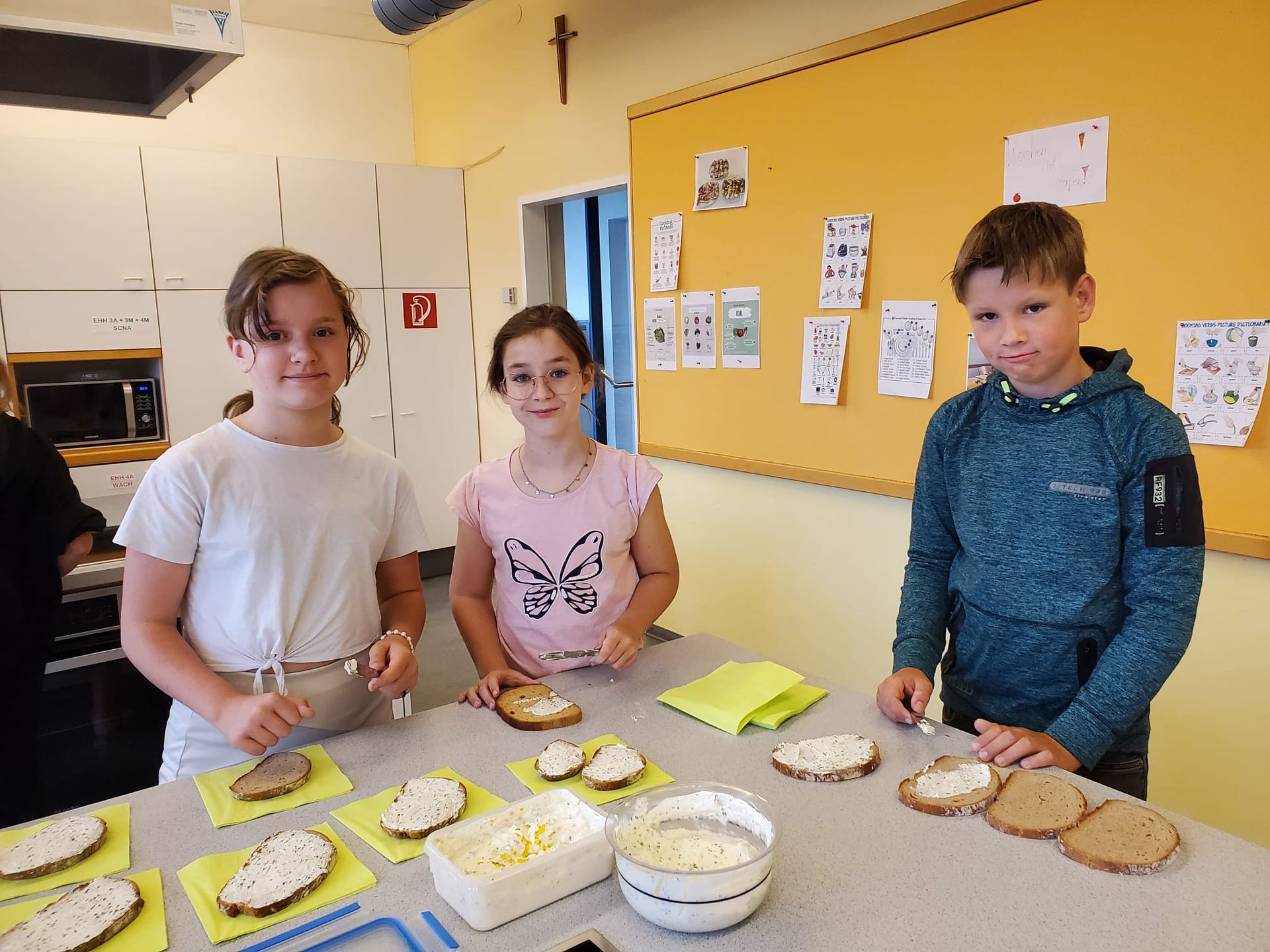 In Rahmen de s Biologieunterrichts wurde in der 1. Klasse unter Anleitung von Frau Christine Wallner ein gesunder Jausentisch zubereitet.....
