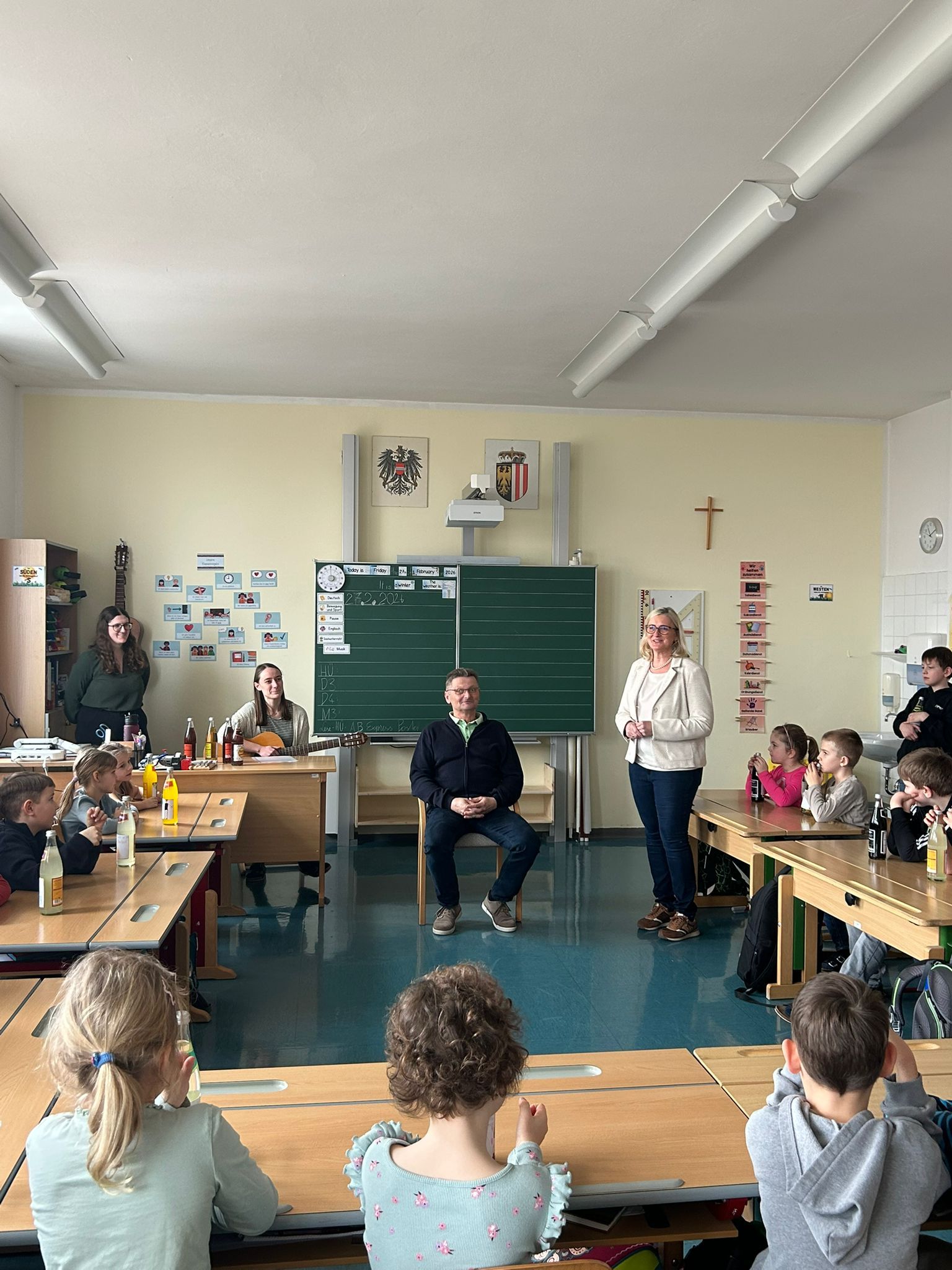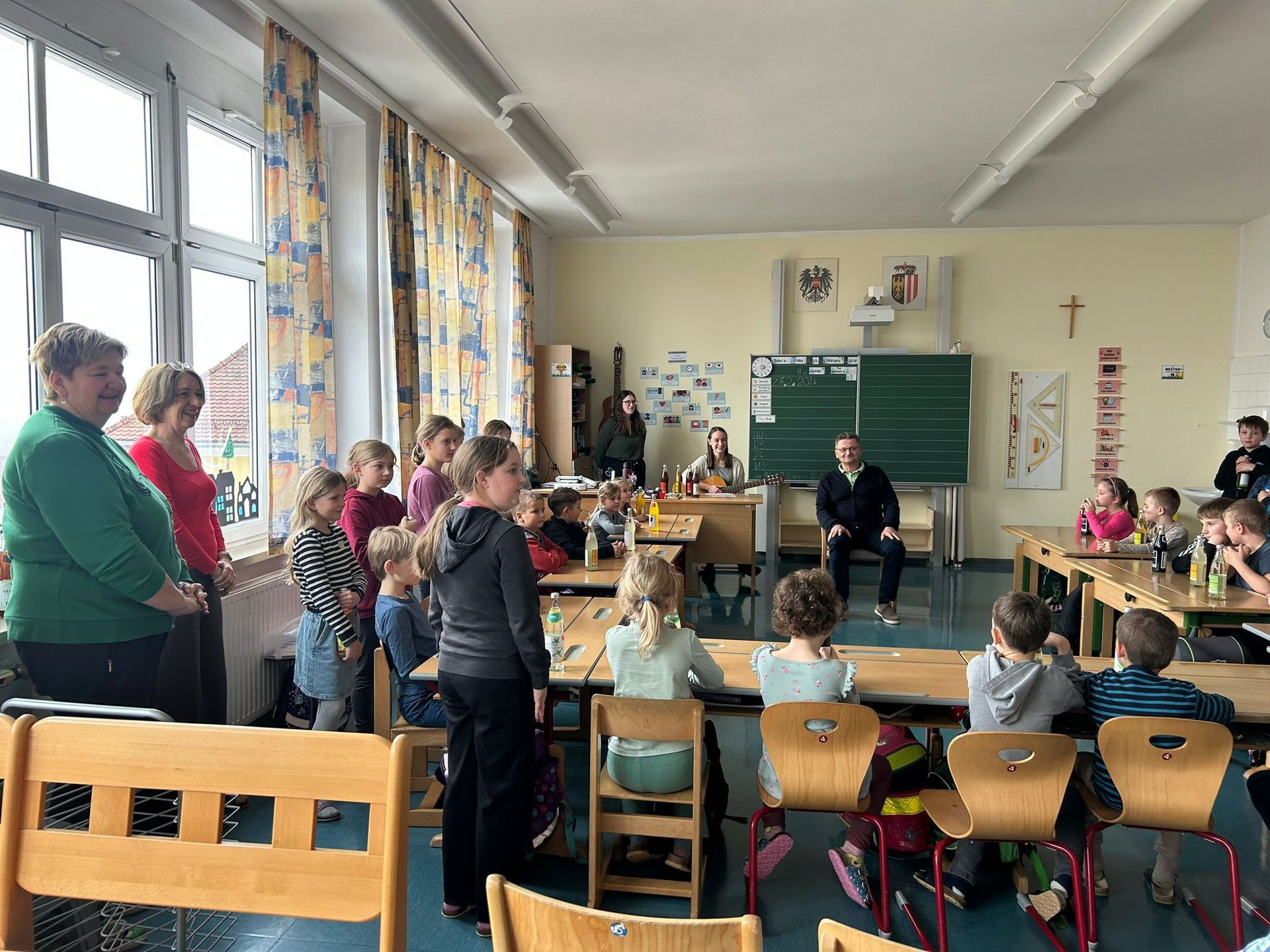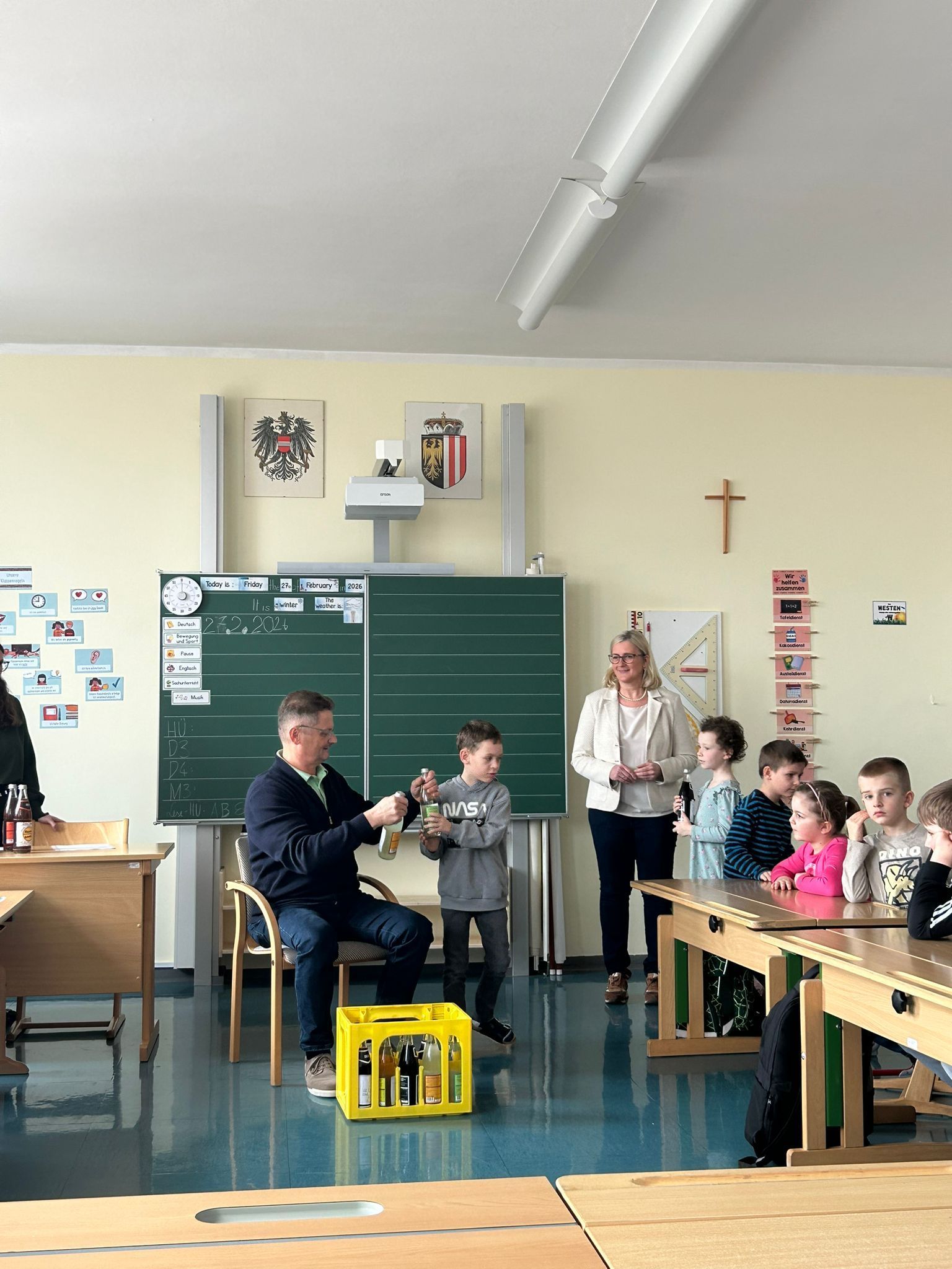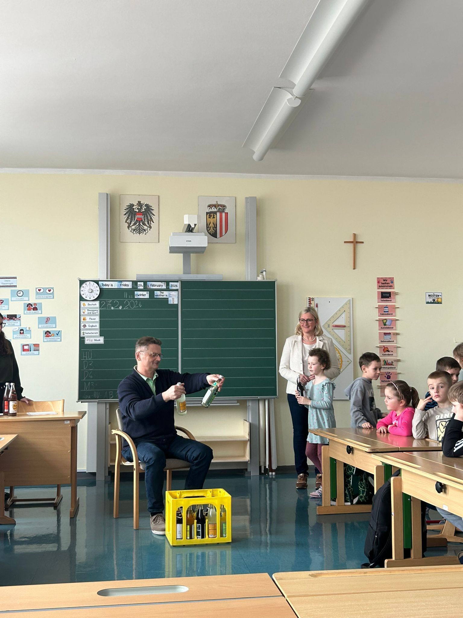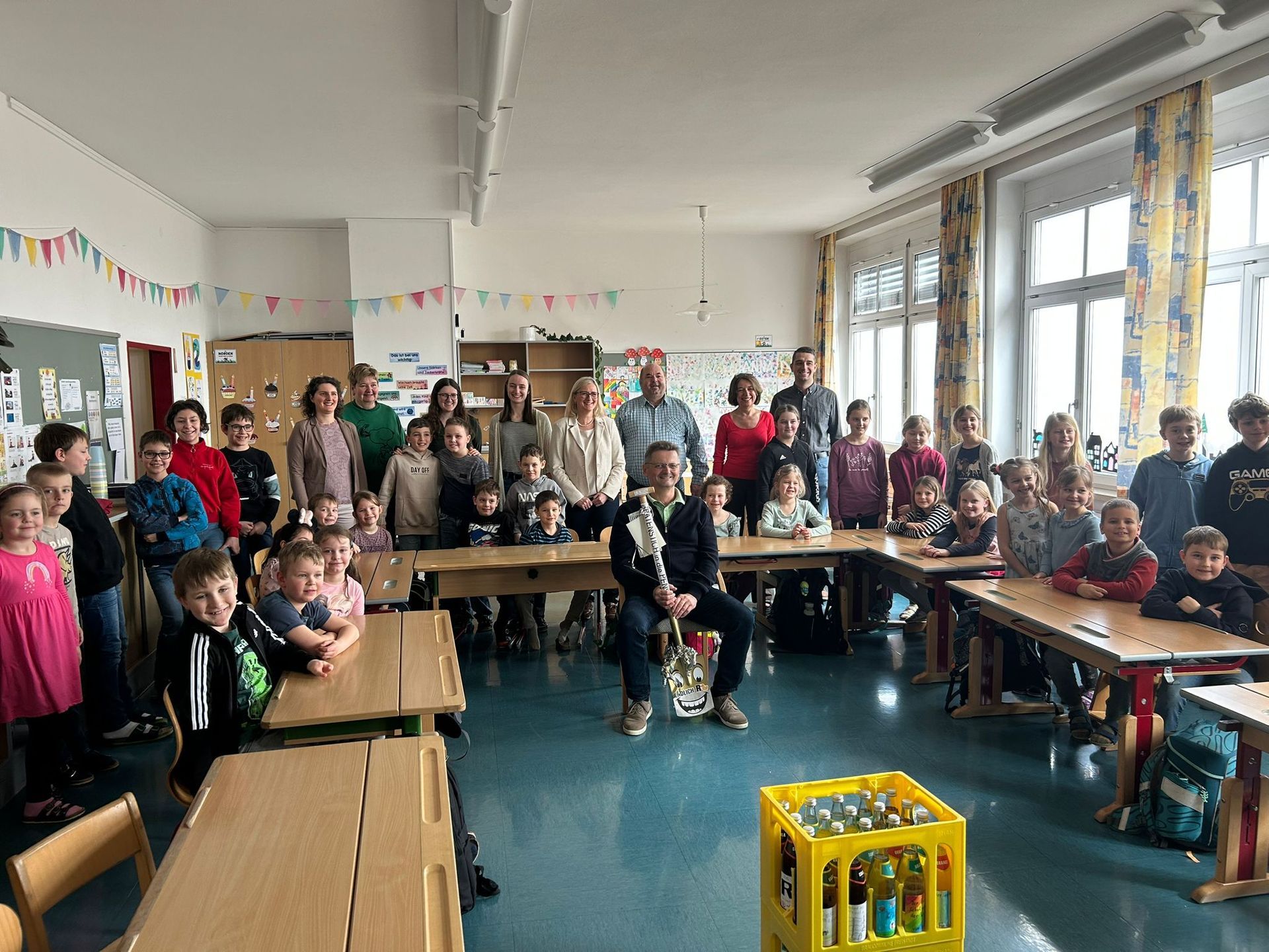 27. Februar 2026 bei einer kleinen Abschiedsfeier für seinen tollen Einsatz. Die Schüler und Schülerinnen gestalteten Herbert Etiketten für seine Lieblingslimonaden und sangen ihm 2 Lieder vor.