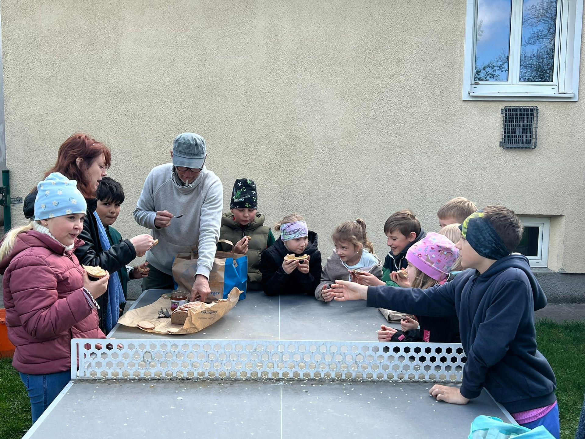 Zum Schluss gab es für die fleißigen Helfer noch zur Stärkung Honigbrote.