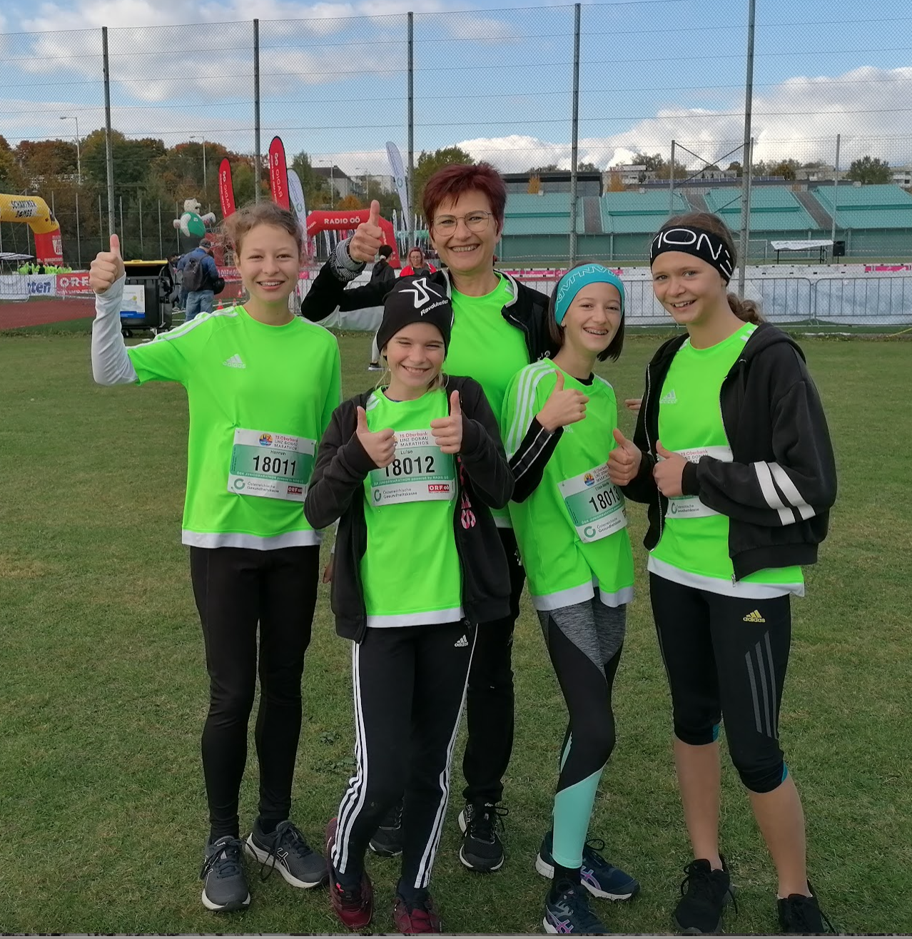 Mit 12 Kindern ging die Lehrerin und Lauftrainerin Elfriede Steinkellner beim Juniormarathon an den Start – dabei erreichte Helene Entner einen tollen 3. Platz im Teens-Bewerb über 2100m. Es gab auch einen Starter beim Schule läuft Viertelmarathon – Aaron nsport sorgte das Saxener Busunternehmen Kurzmann.