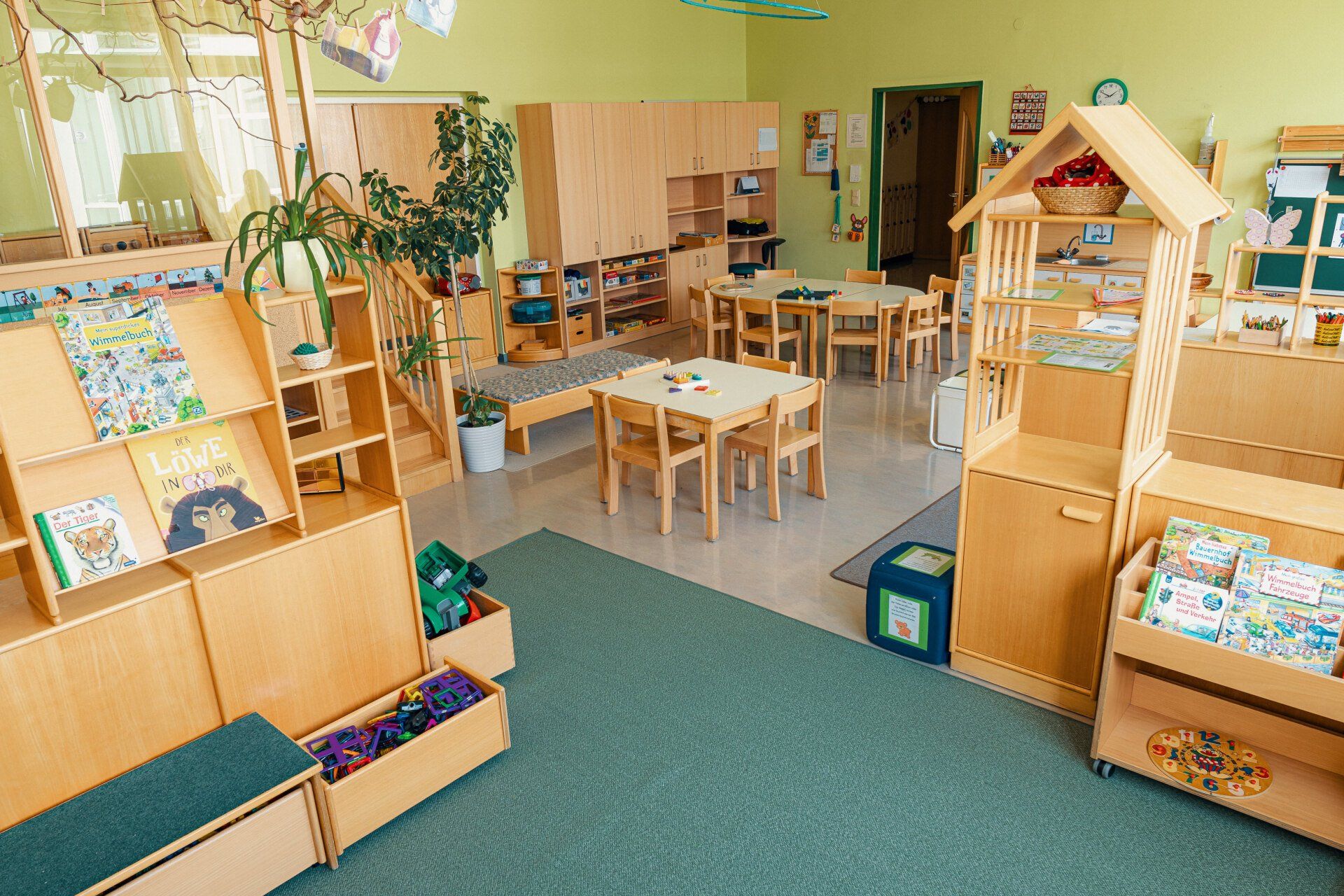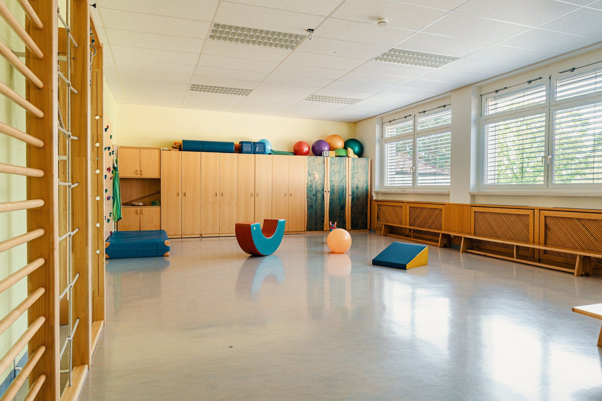 befindet sich, neben der orangen und grünen Gruppe, ein großer und gut ausgestatteter Bewegungsraum.
