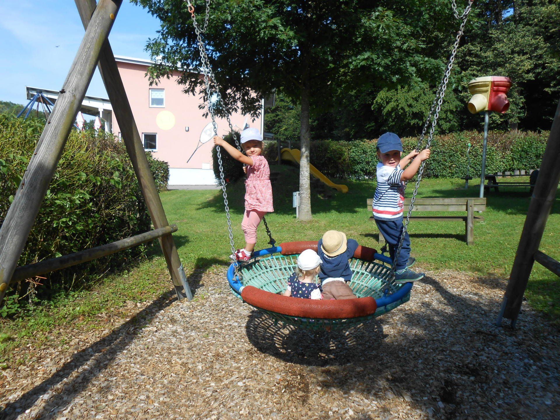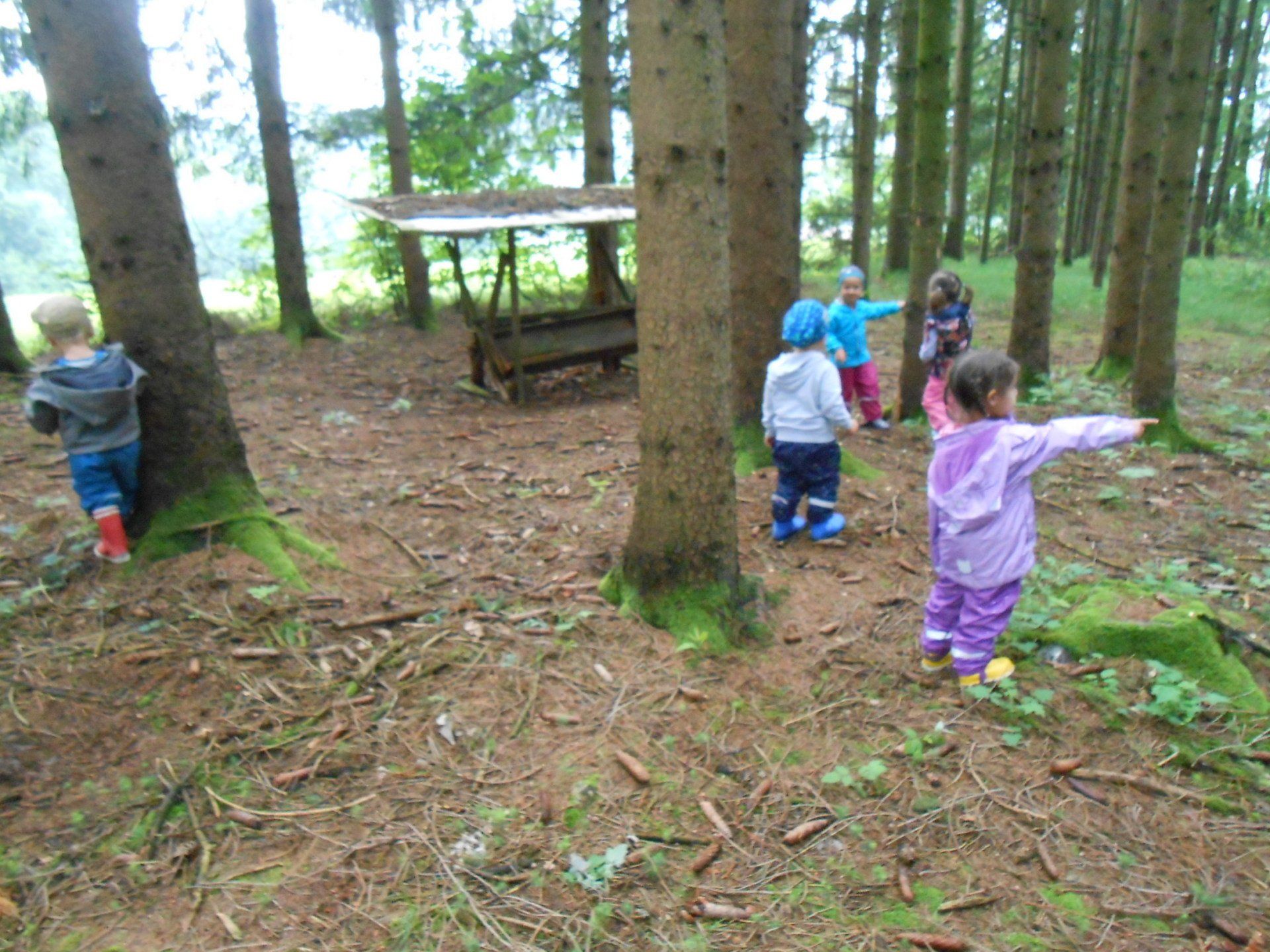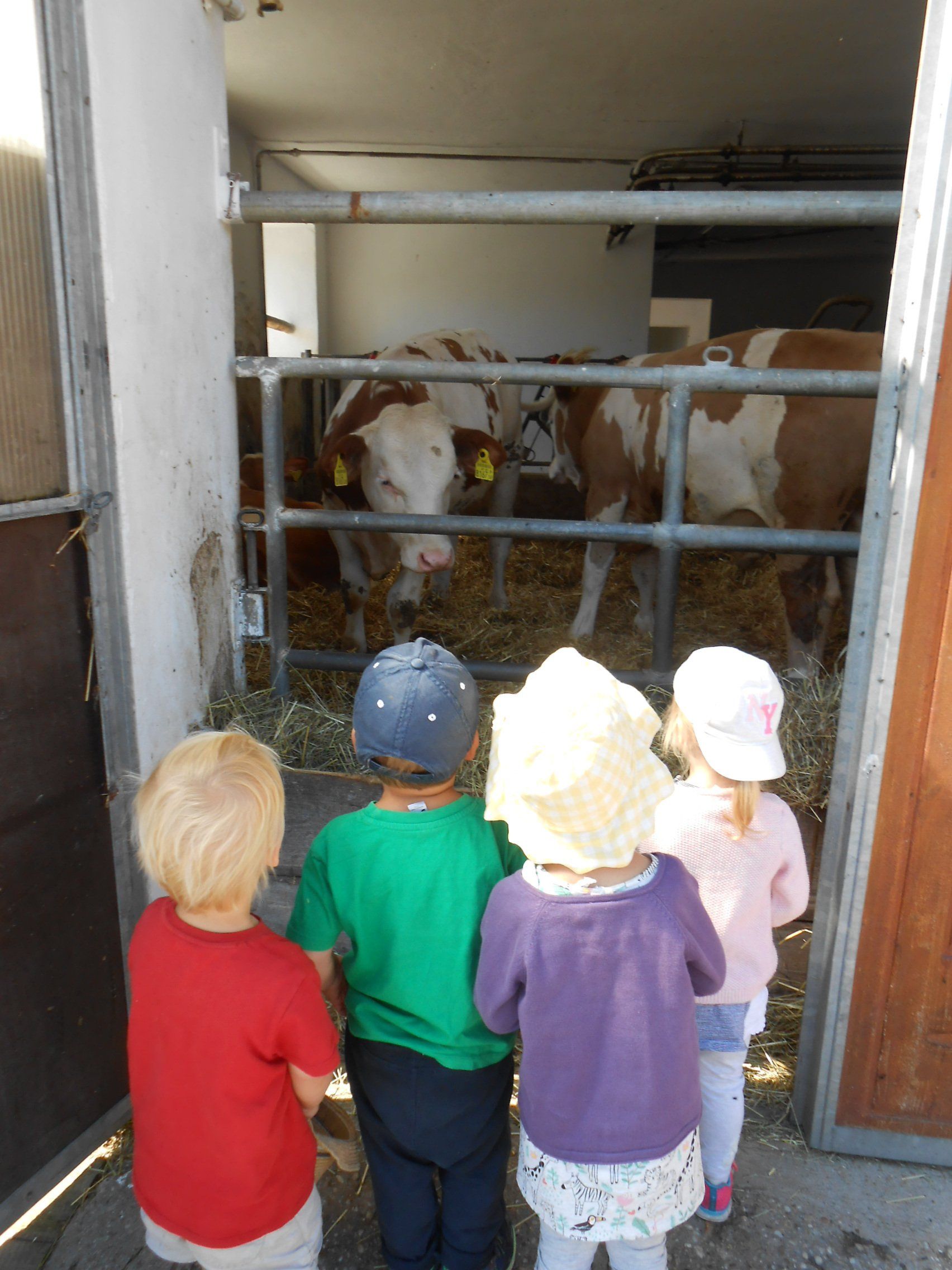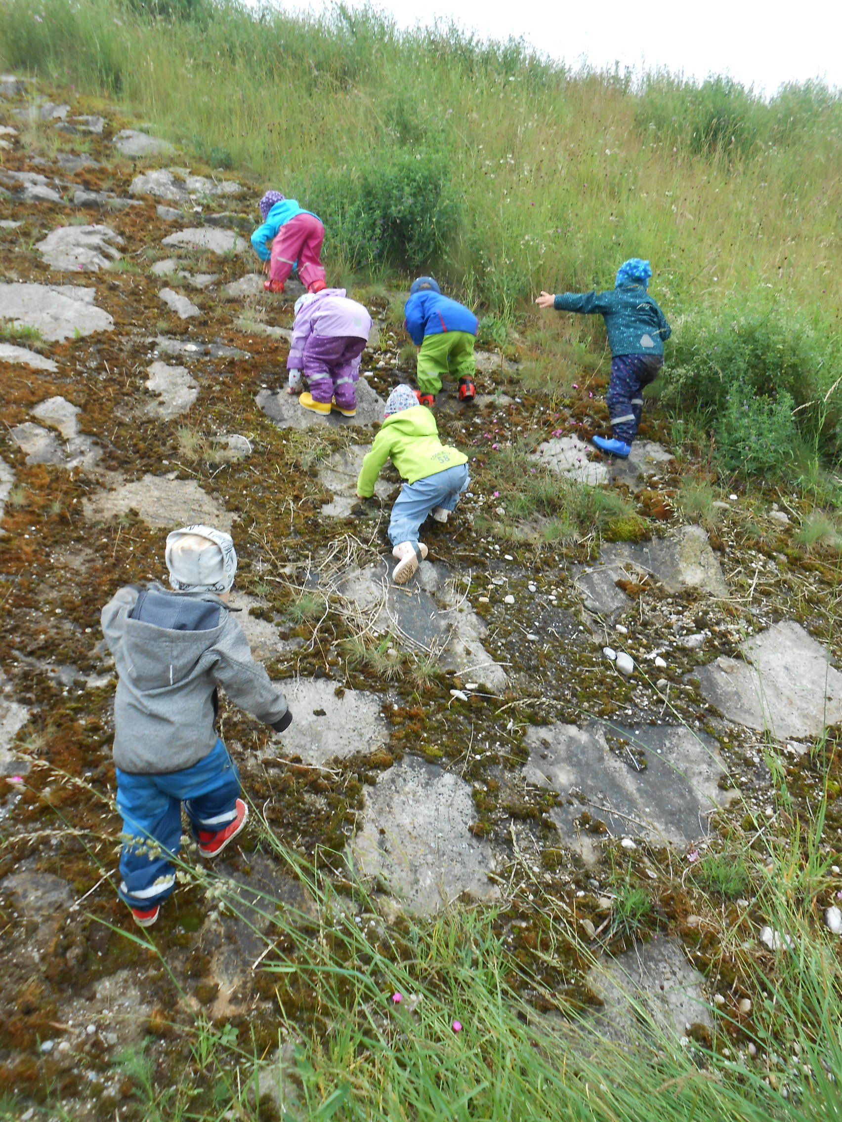 Mit unseren Krabbelstubenbussen, und auch fleißig zu Fuß, sind wir viel draußen unterwegs. Unsere Ausflüge führen uns durch den Wald, über Wiesen und Wege und zu den verschiedensten Spielplätzen in der Umgebung. Wir besuchen die Kühe am Bauernhof, die Pferde auf der Weide und entdecken am Wegesrand viele große und kleine Schnecken. Außerdem beobachten wir die Traktoren auf den Feldern, den Bagger auf der Baustelle und den regelmäßig vorbeifahrenden Zug. Draußen in der Natur gibt es immer was zu sehen!