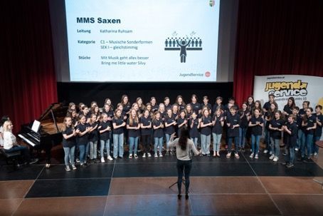 Der Chor der Musikmittelschule Saxen hat beim diesjährigen Landesjugendsingen in St. Florian einen ausgezeichneten Erfolg erzielt. Sie präsentierten vor der beeindruckten Jury den Schlager "Mit Musik geht alles besser" aus dem Jahr 1943, den Folk Song aus Nordamerika "Bring me little water, Silvy!" und das Volkslied "Und die Liab is a Bach".