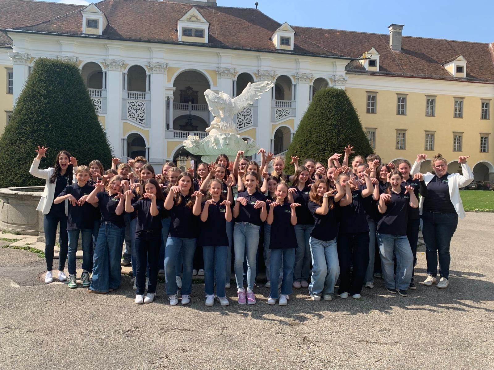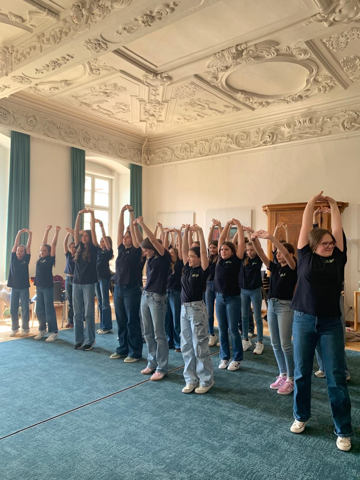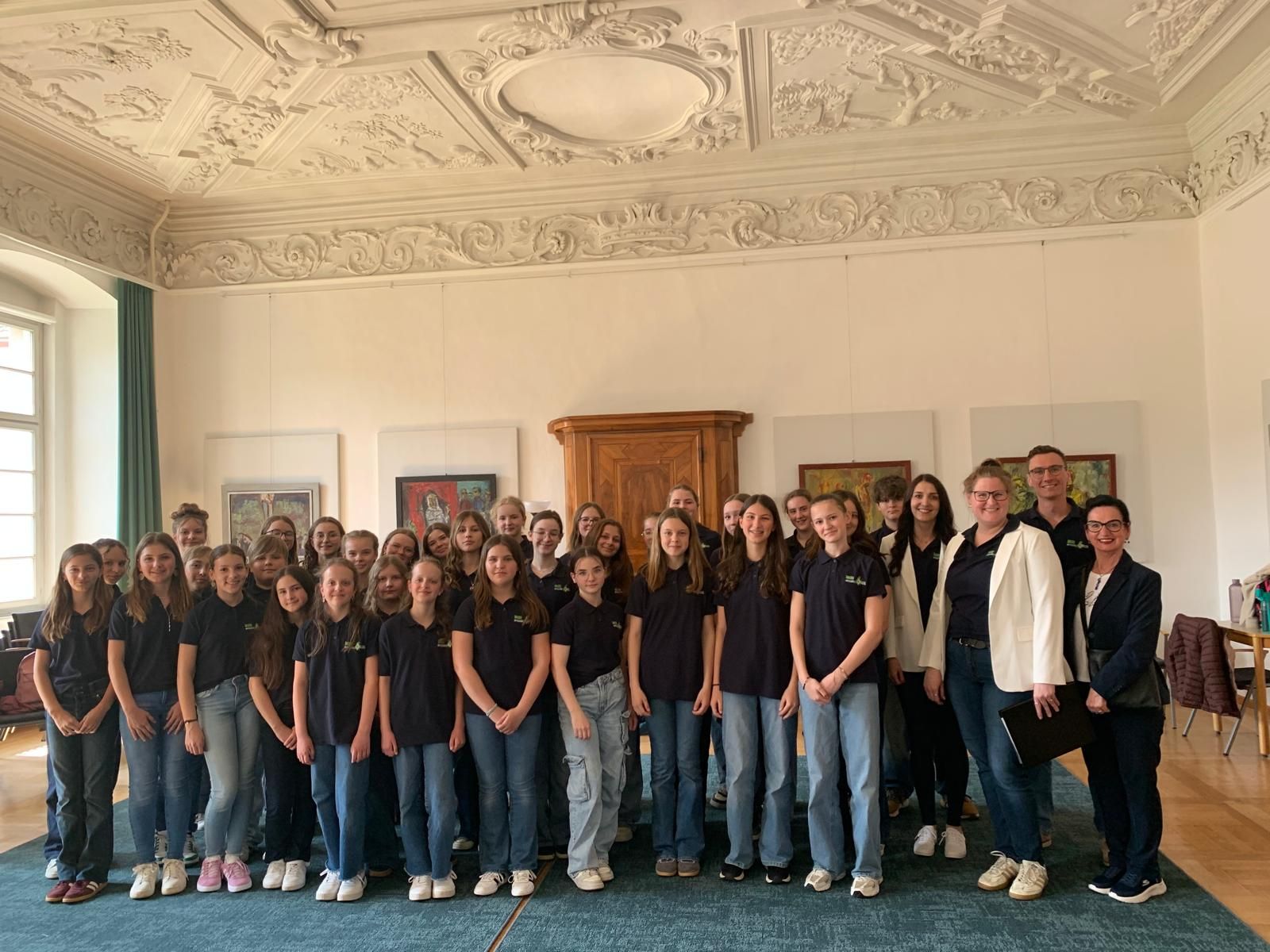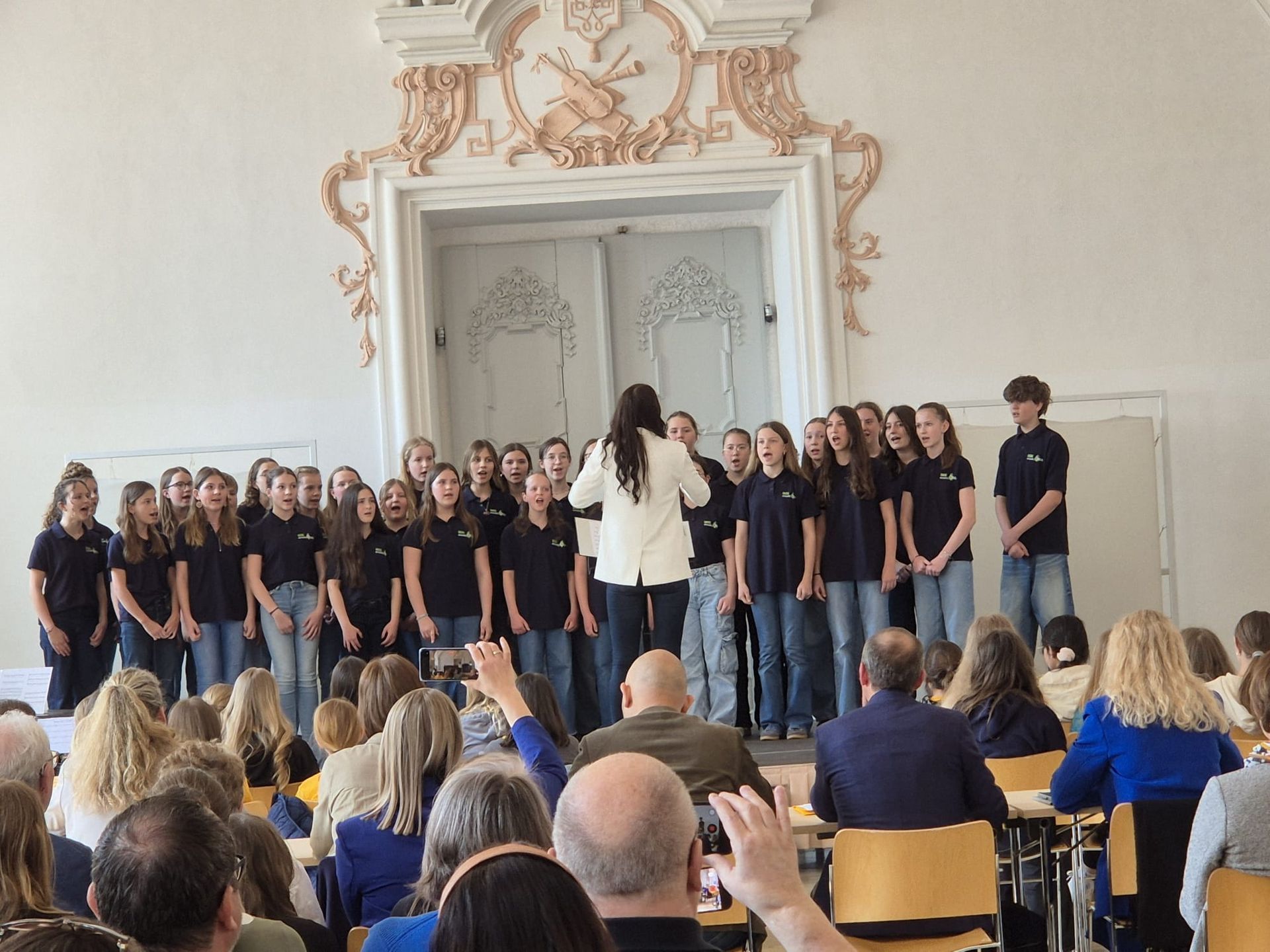 Unter der Leitung von Katharina Ruhsam und Lisa Maria Fischer-Müller präsentierte sich der Chor im stimmungsvollen Sala Terrena (Gartensaal) des Stiftes St. Florian. Vor einer fünfköpfigen Jury brachten die jungen Sängerinnen und Sänger die Stücke „I tua wos i wü“ „Red, Red Rose“ und „Some Nights“ zur Aufführung.