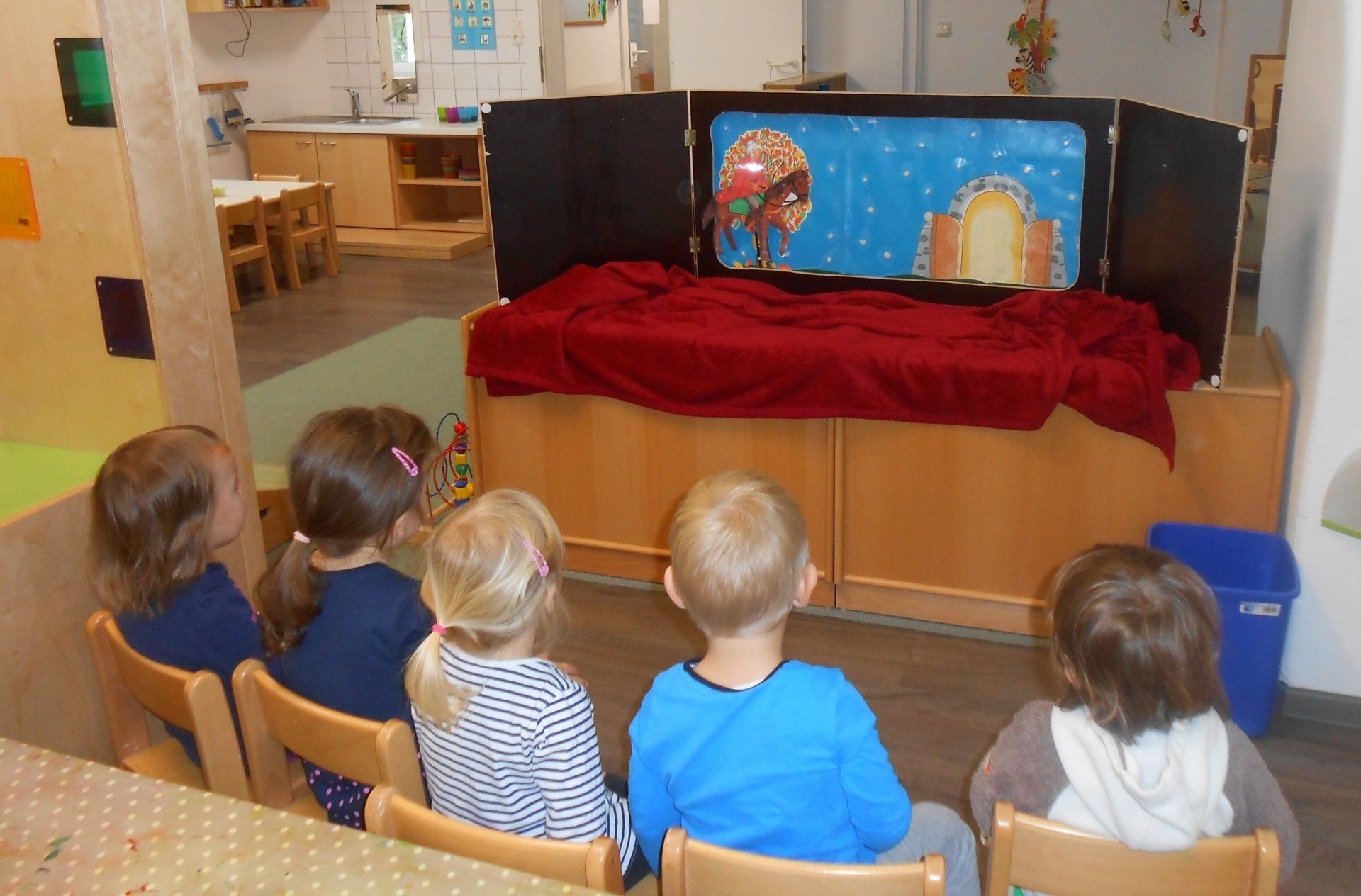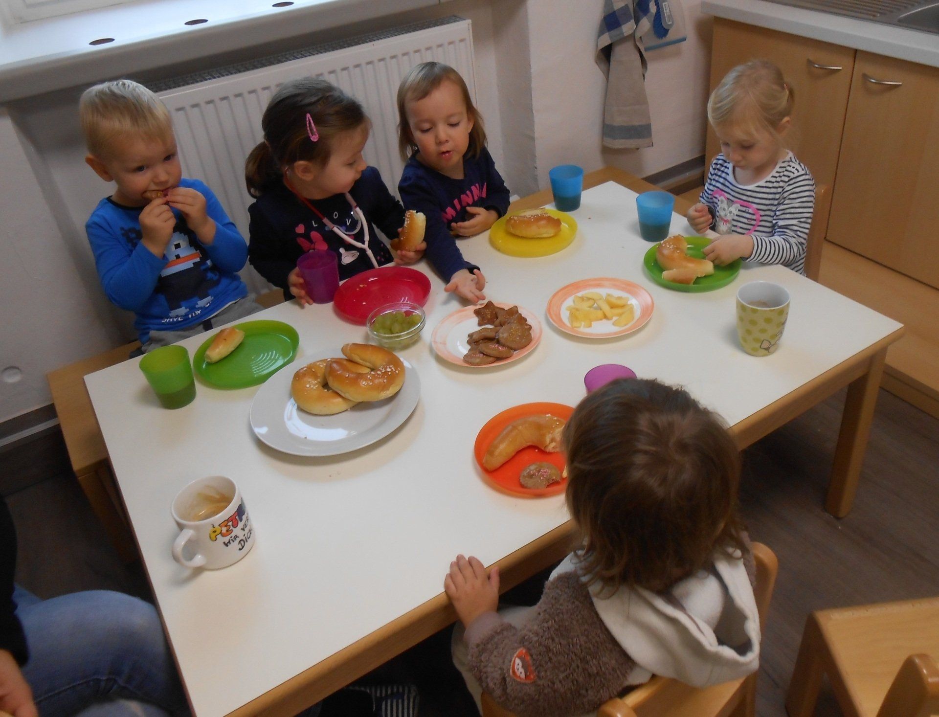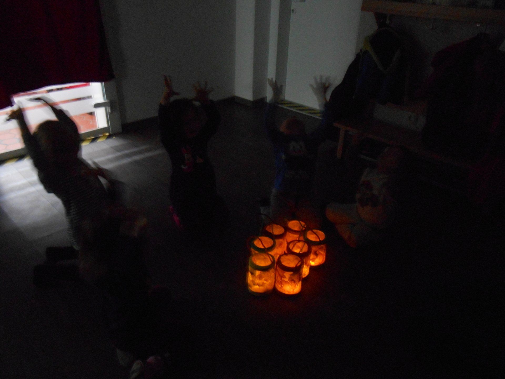 Unser diesjähriges Laternenfest musste leider, wie so viele Feste in diesem Jahr, Corona-bedingt gruppenintern und ohne Eltern stattfinden. Also hieß es improvisieren! Wir verdunkelten alle Fenster und machten unseren kleinen Lichterumzug mit unseren wunderschönen, selbst gebastelten Laternen durch die Räumlichkeiten der Krabbelstube. Um das Spiel mit Licht und Dunkelheit noch mehr zu vertiefen, bekam jedes Kind einen bunt leuchtenden Luftballon. Die Legende vom heiligen Martin wurde den Kindern altersentsprechend mit unserem Stabfiguren-Theater vermittelt. Und zur gemeinsamen Jause gab es selbst gebackenen Lebkuchen und natürlich Martinskipferl zum Teilen!