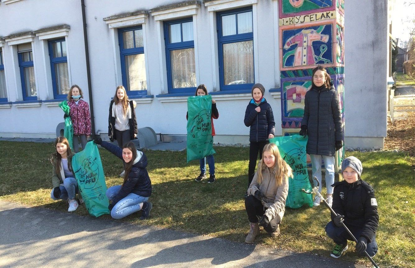 Vom 8. bis 10. März sammelten Schülerinnen und Schüler der Musikmittelschule gemeinsam mit ihren Lehrkräften rund um das Schulgebäude, auf den Wegen zur Schule und entlang der B3 weggeworfenen Müll. Sie unterstützen dabei die Aktion „Hui statt Pfui“. Die Kinder waren mit Eifer dabei. Jede Art von Unrat wurde gewissenhaft aufgehoben. Auch heuer zeigten sich die Kinder betroffen von der Achtlosigkeit so mancher Mitbürger gegenüber der Natur.