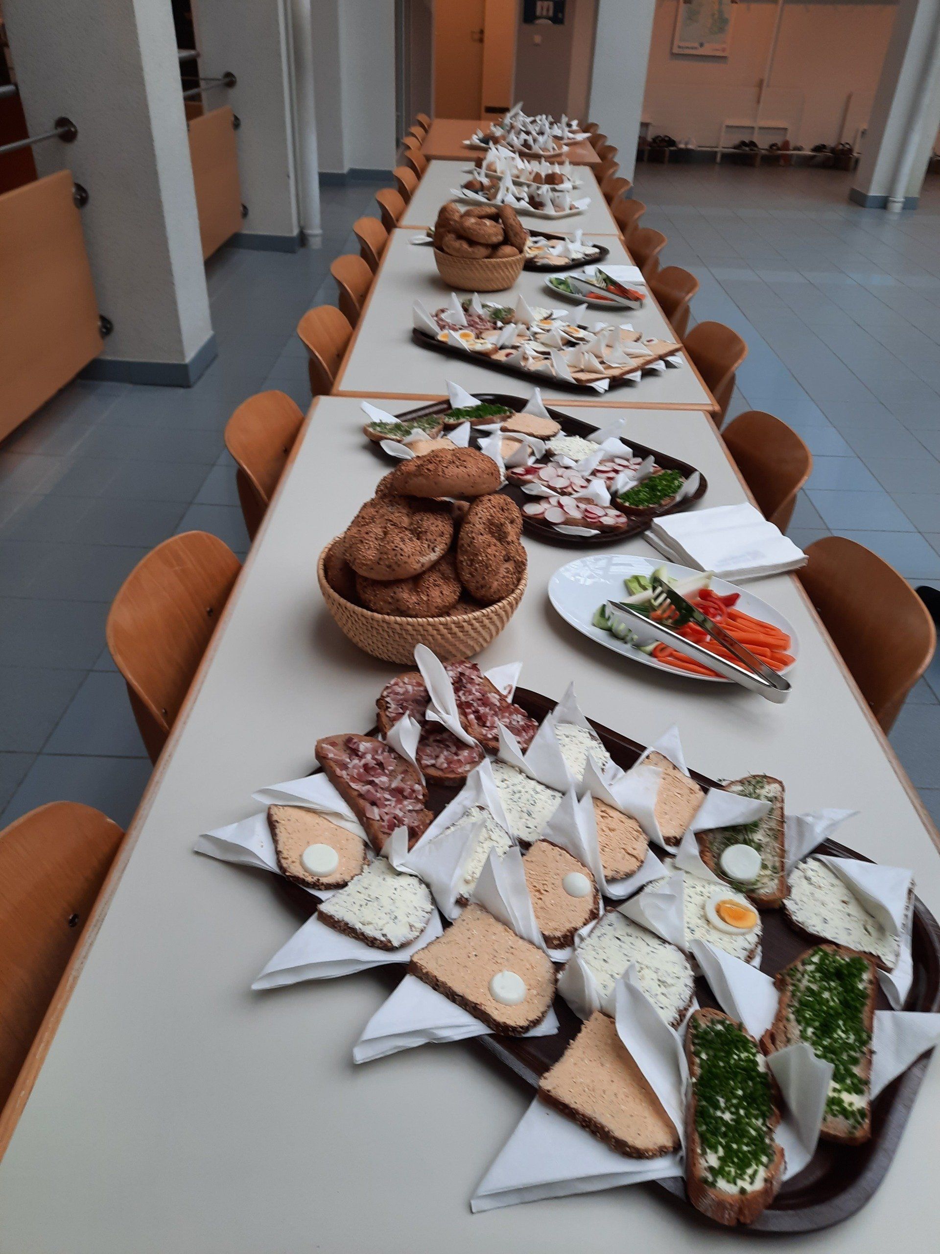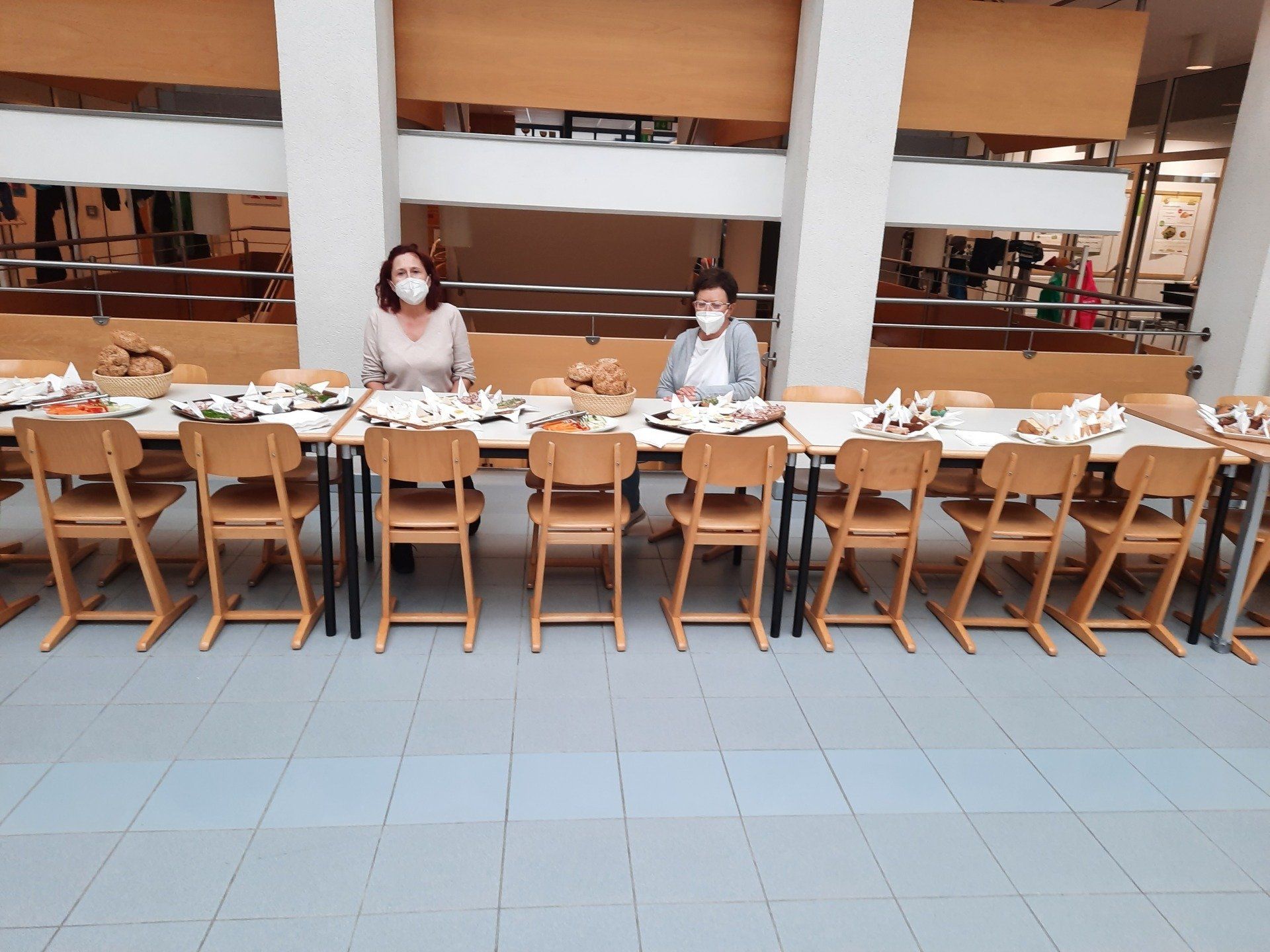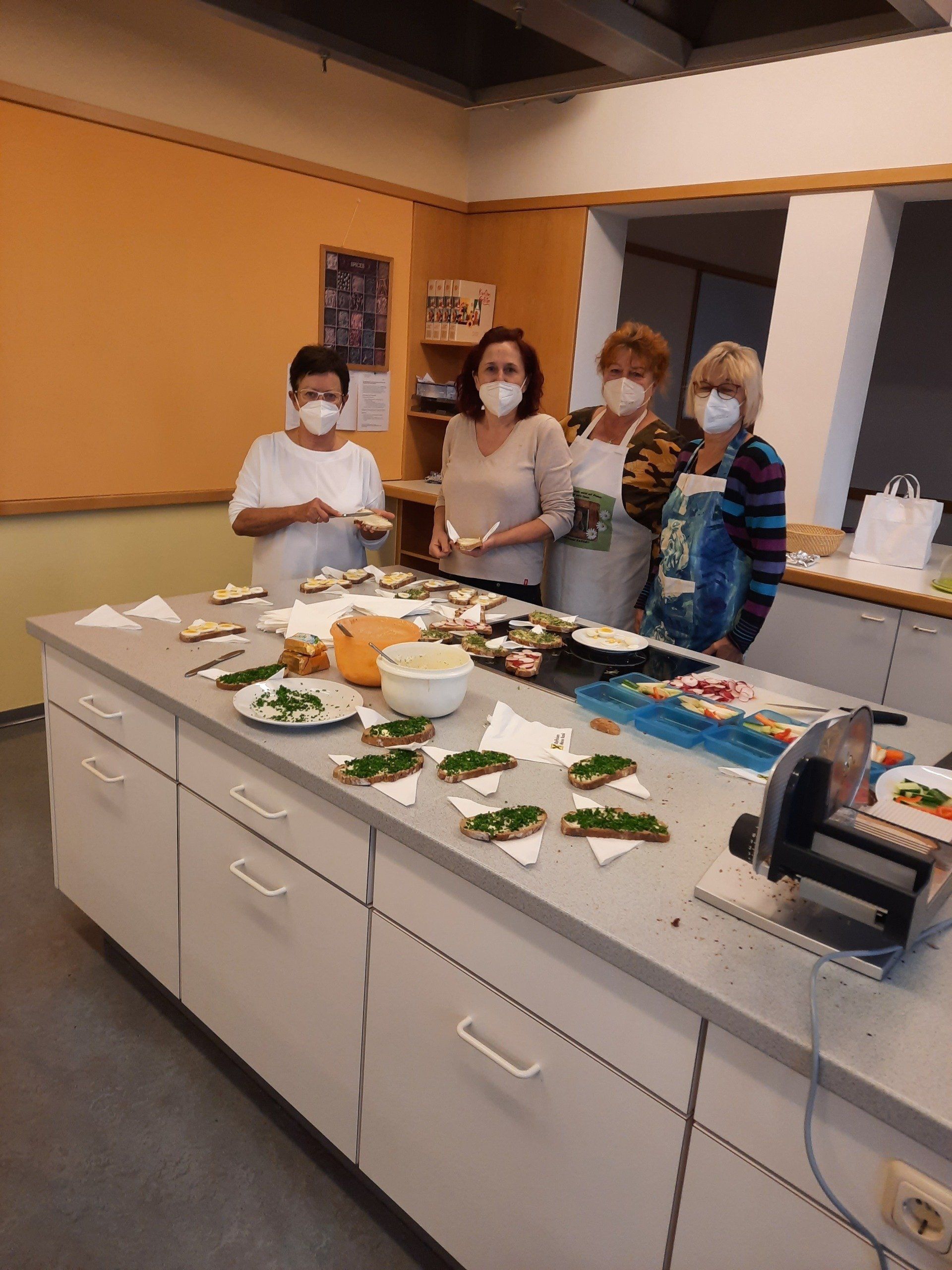 Die Jause findet solange es die Coronarichtlinien zulassen, jeden Mittwoch statt. Neben leckeren und vollwertigen Mehlspeisen gibt es Vollkorn Topfenbrote, Vollkornweckerl, auf frisch gebackenem Bauernbrot Schnittlauch, Radieschen, Ei, Speck und Kresse.