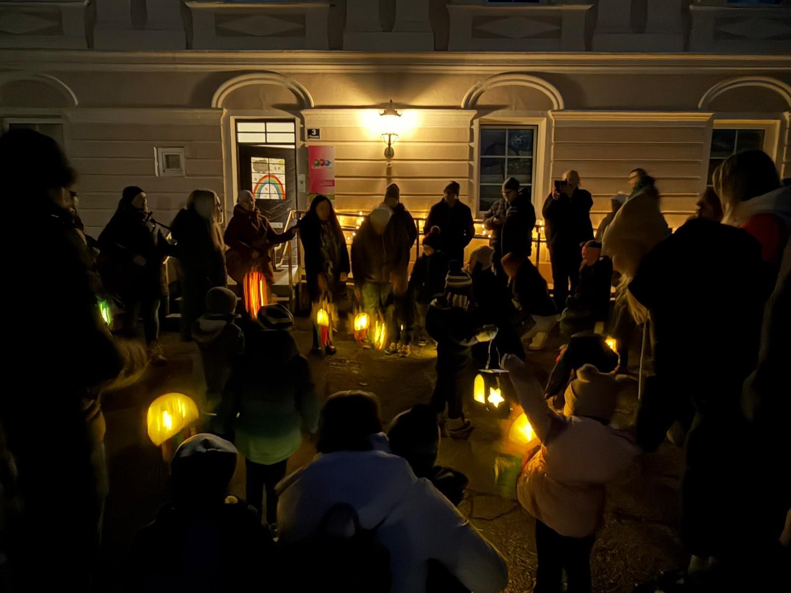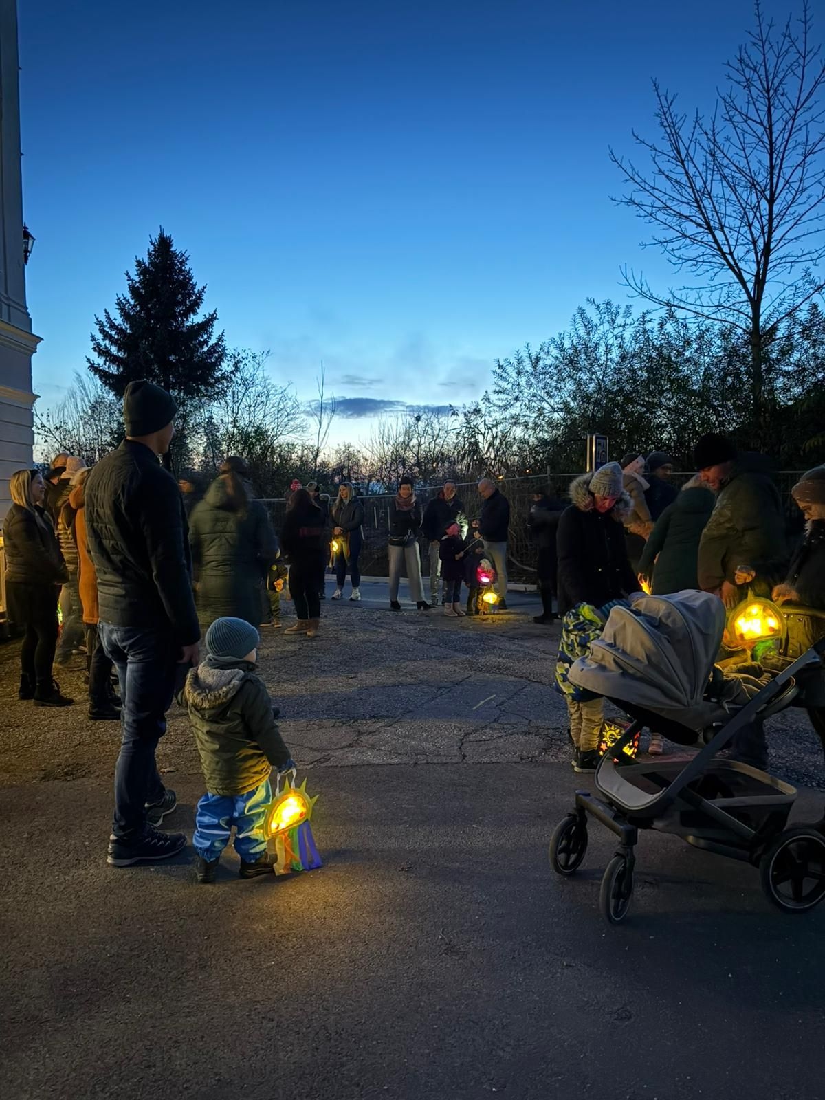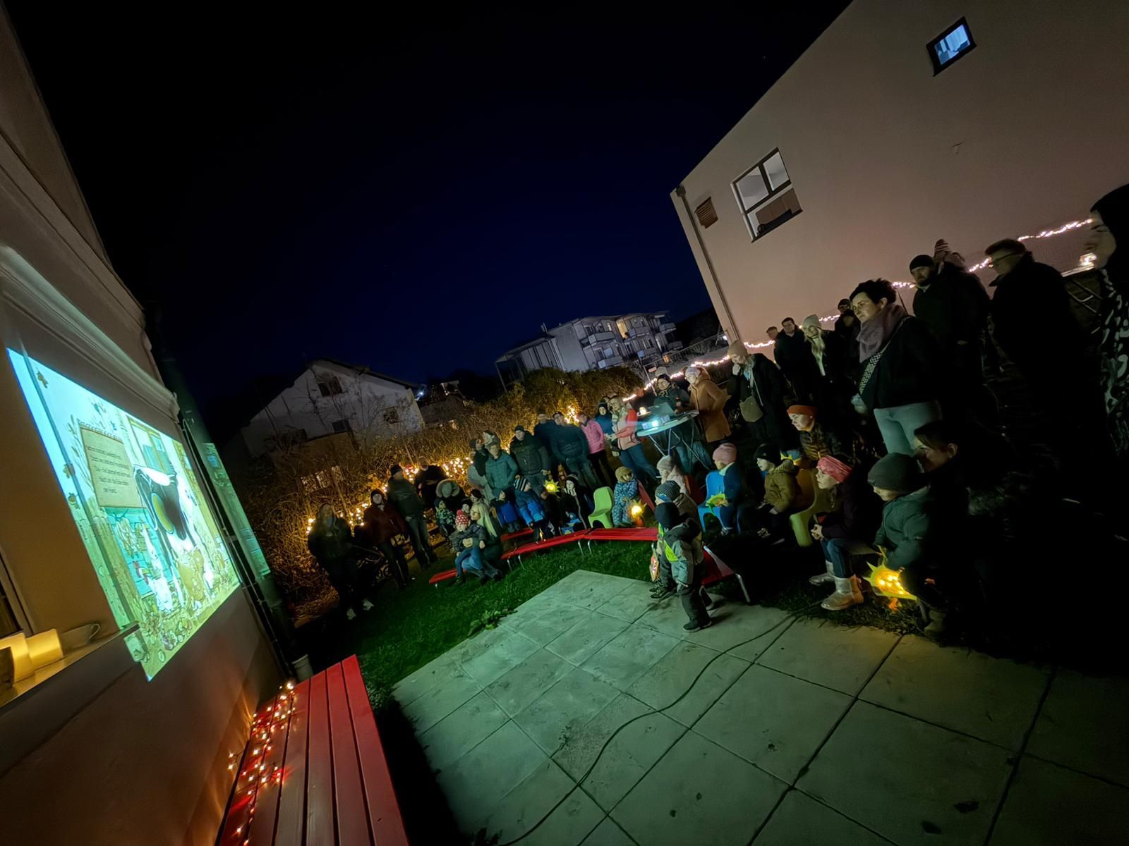 Nach einem kleinen Lichtertanz startete der Laternenumzug, welcher im Garten der Krabbelstube endete und wo viele, helle Lichter und ein ganz besonderes Freilicht-Kino auf die Kinder und ihre Familien warteten. Nachdem wir die Laternen Geschichte von Kuh Lieselotte hörten, gab es selbst gebackene Kipferl, Kekse und Kinderpunsch.