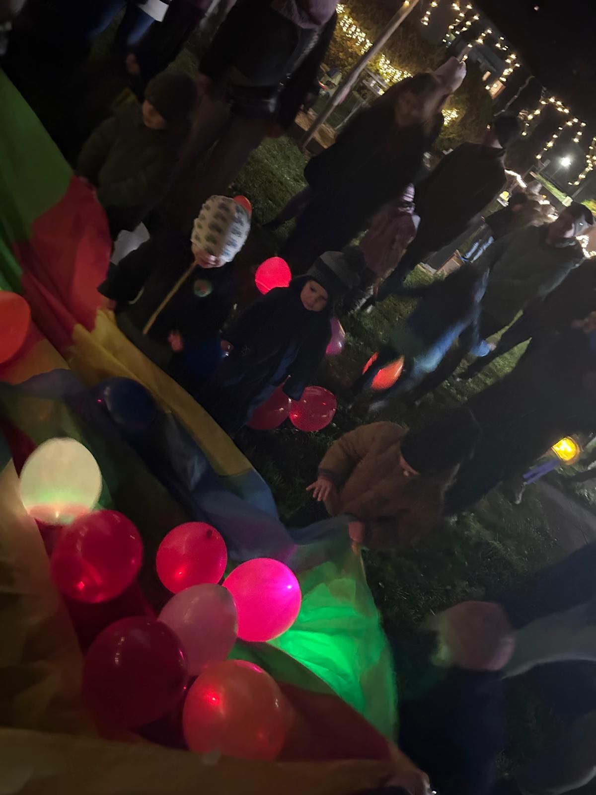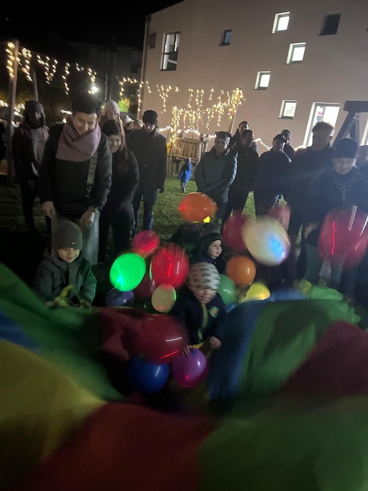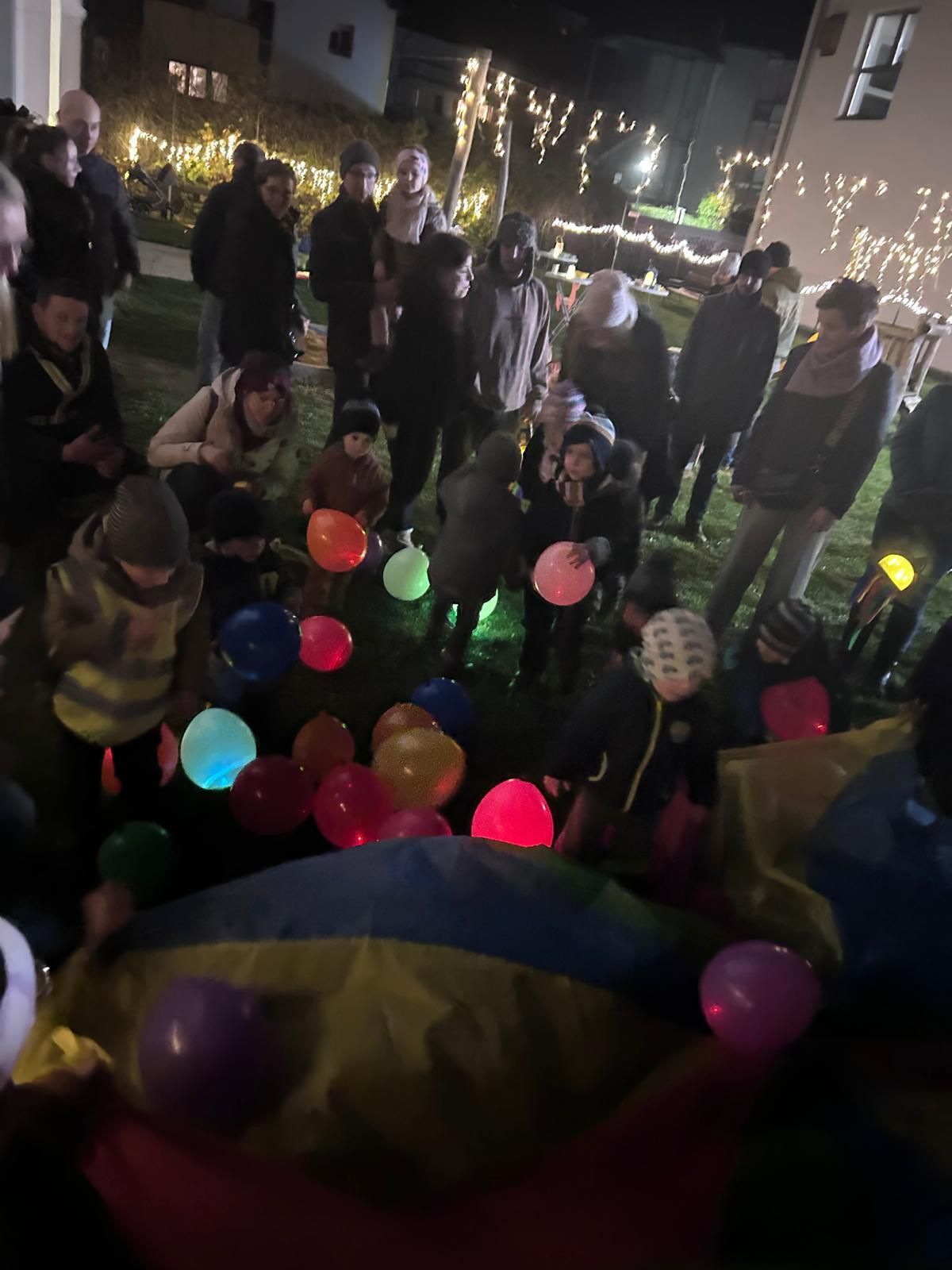 Zum Abschluss durften die bunt blinkenden Luftballons nicht fehlen, welche die Kinder mit viel Begeisterung hochfliegen ließen.
