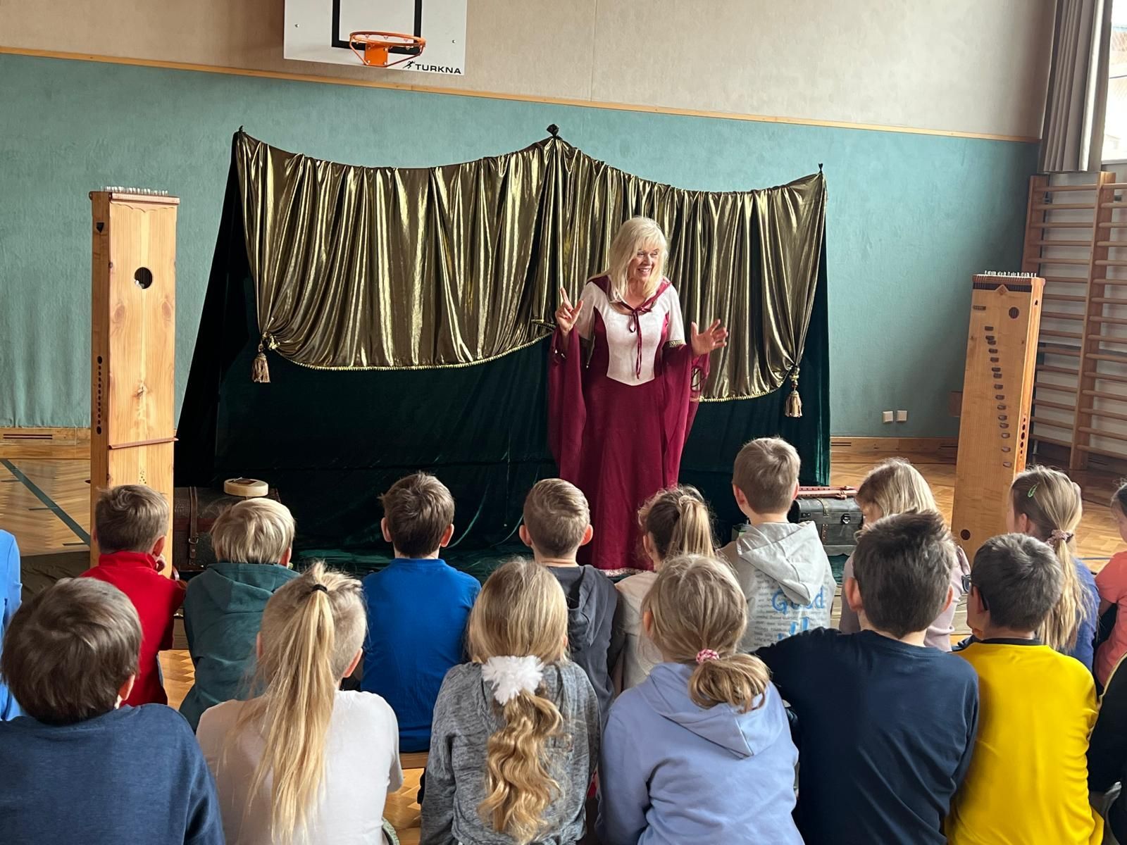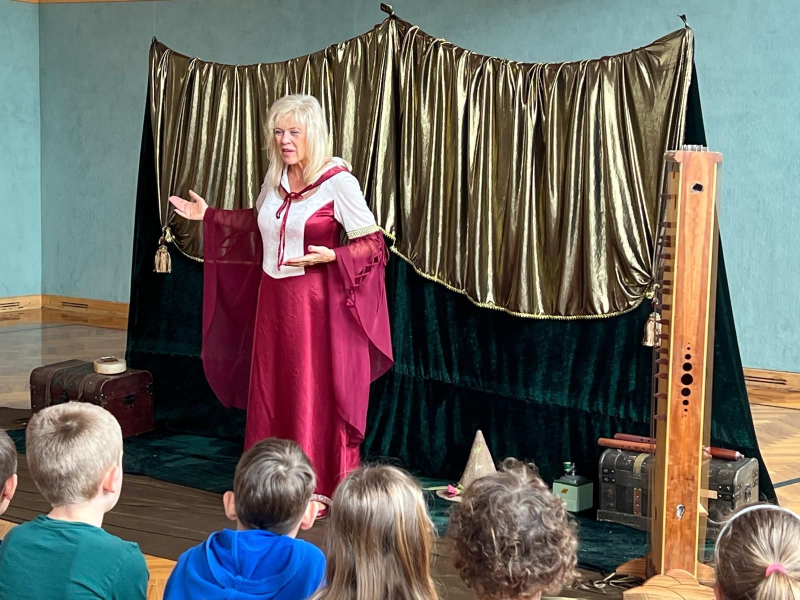 Margit Obermair begeisterte unsere Schülerinnen und Schüler mit einer besonderen Erzählstunde. Sie präsentierte Märchen und Sagen aus dem Donauraum auf eine sehr mitreißende und lebendige Weise. Begleitet wurde ihre Erzählung von stimmungsvollen Klängen verschiedener Saiteninstrumenten - sowie einer indianischen Flöte. Die Kombination aus Musik und Erzählkunst schuf eine einzigartige Atmosphäre, die alle in ihren Bann zog. Es war eine spannende und eindrucksvolle Erfahrung für alle Zuhörerinnen und Zuhörer.