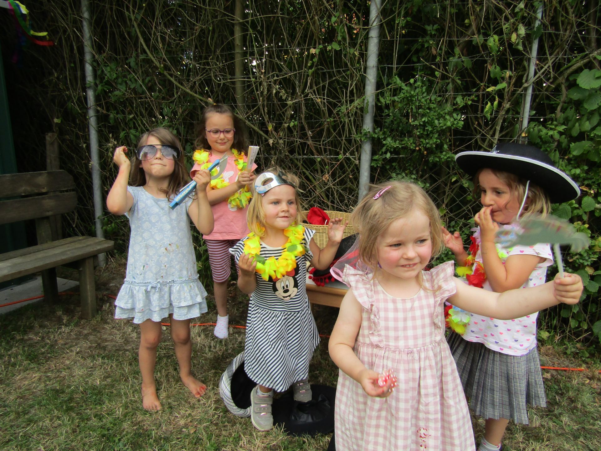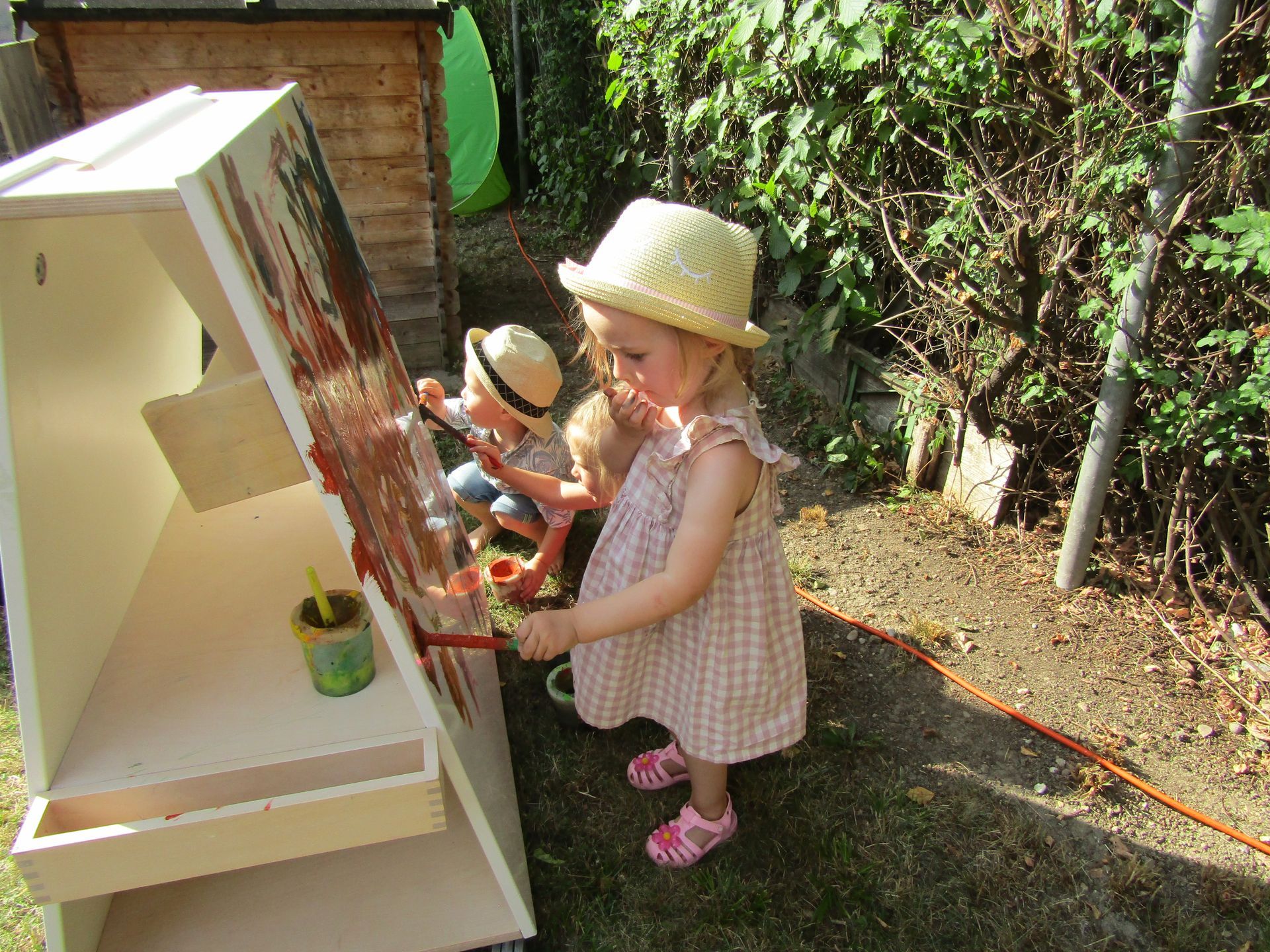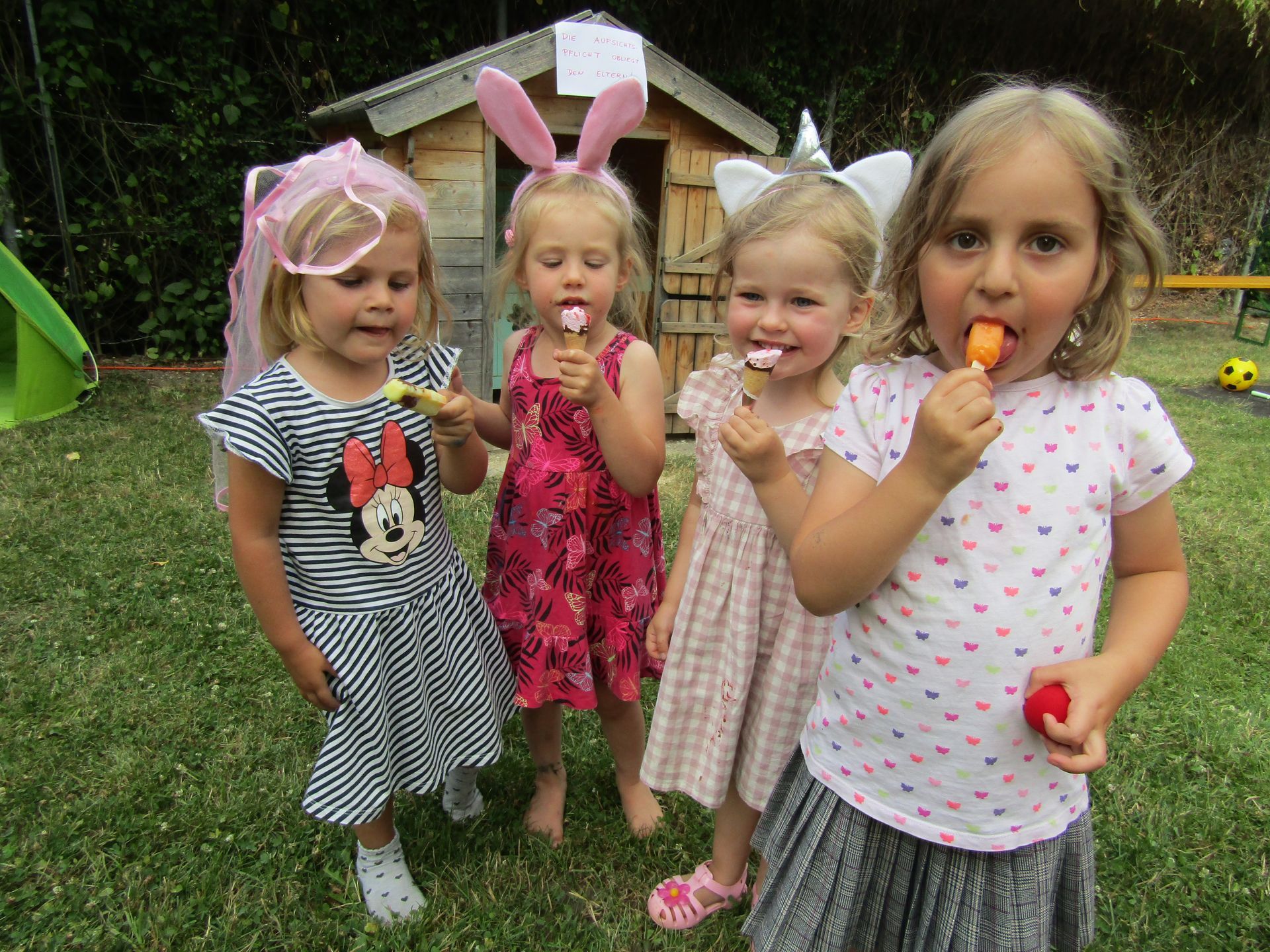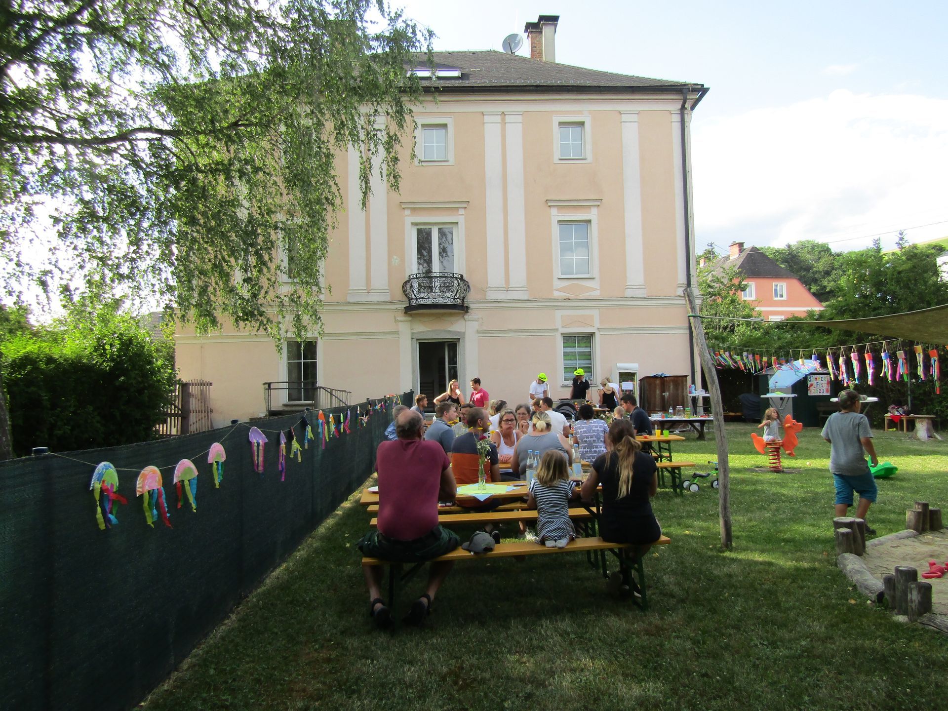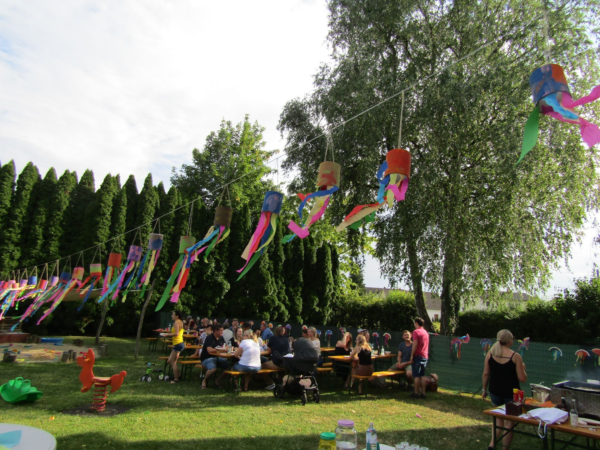 Bei wunderschönem Sommerwetter feierten wir im Garten der Krabbelstube unser jährliches Sommerfest. Gemeinsam mit den Kindern wurde eine bunte Gartendekoration gebastelt und Kuchen und Kekse gebacken. Zur Begrüßung durften alle Familien ein lustiges Familienfoto in der "Fotobox" machen. Beim Eröffnungslied "Schmetterling du kleines Ding" konnten die Kinder den stolzen Eltern ihre Tanzkünste in schönen Schmetterlingskostümen vorführen. Danach wurde bei Bratwürstel, Kuchen und Kaffee gemütlich geplaudert, während die Kinder bei den Spielestationen beschäftigt waren. Es gab Seifenblasen, eine Malwand, eine Verkleidungsecke und als großes Highlight eine Hüpfburg! Herzlichen Dank an alle Familien die mit uns gefeiert haben und dieses Fest zu etwas ganz Besonderem gemacht haben!