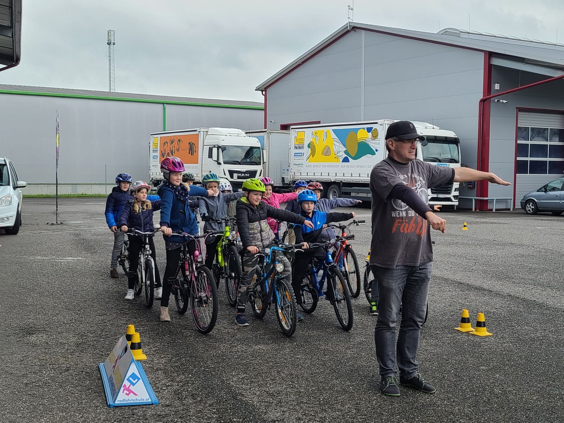 Ausgebildete Radfahrlehrer zeigten den Kindern aller Altersstufen anschaulich in Theorie und Praxis welche Ausstattung das Rad haben muss, wie man sein Rad beherrscht und sich sicher im Straßenverkehr bewegt. Besonders für die 4.-Klässler ist es eine gute Vorbereitung auf die Radfahrprüfung.