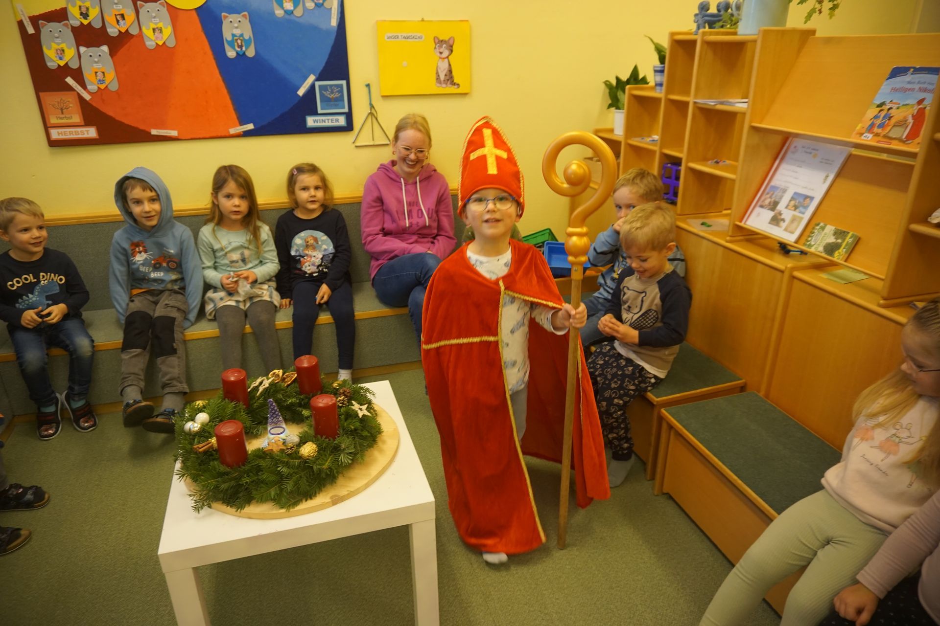 Auch heuer durften wir uns wieder über einen ganz besonderen Gast freuen: Bereits am 05. Dezember hat der Nikolaus unseren Kindergarten besucht! Mit großer Aufregung und strahlenden Augen erwarteten die Kinder sein Kommen. In jeder Gruppe wurden liebevoll einstudierte Gedichte und Lieder vorgetragen. Anschließend sprachen wir gemeinsam über die guten Taten des heiligen Bischofs Nikolaus und darüber, warum er bis heute ein wichtiges Vorbild für Hilfsbereitschaft und Nächstenliebe ist.