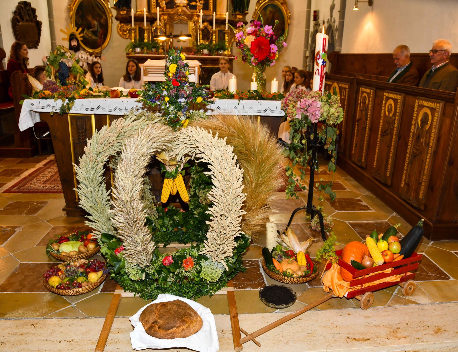 Am Sonntag, den 01.10.2023 feierten wir Kindergartenkinder gemeinsam mit der Pfarrbevölkerung das Erntedankfest.