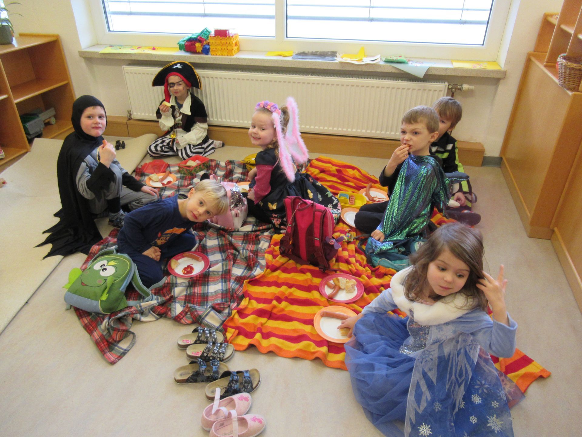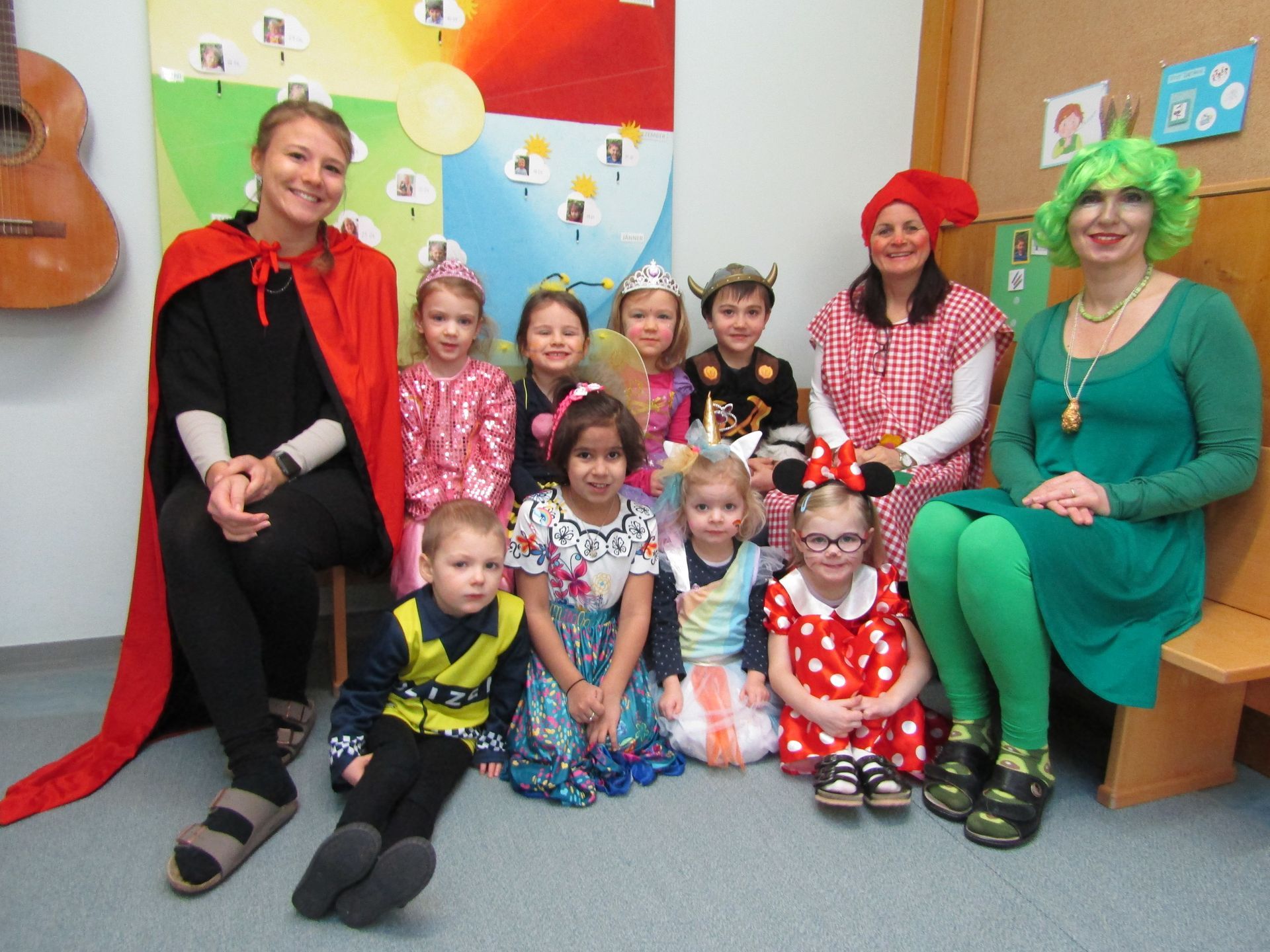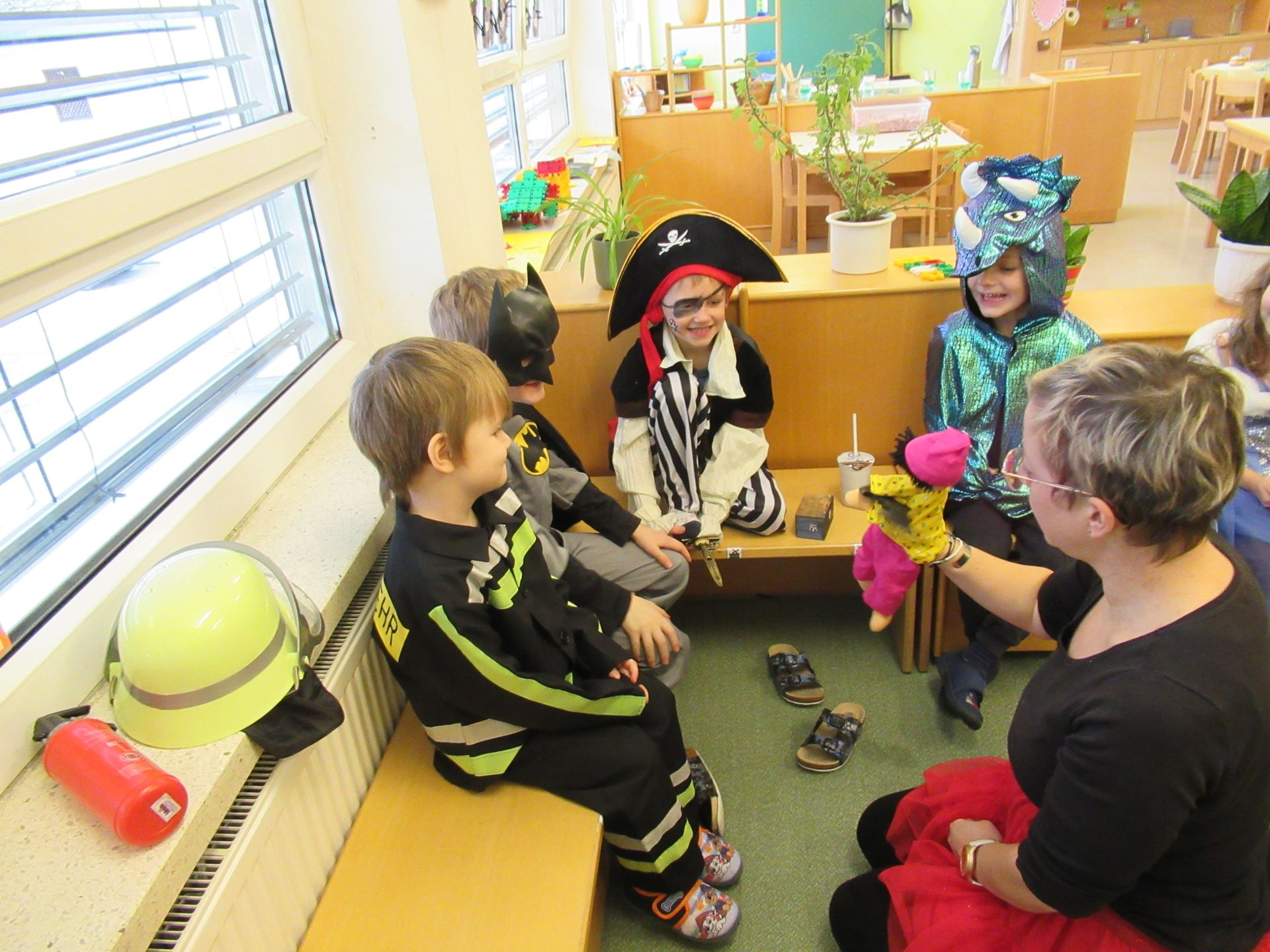 Die Faschingszeit haben wir heuer in vollen Zügen genossen. Die Kinder der gelben und der grünen Gruppe haben sich verstärkt der Märchenwelt gewidmet, in der orangen Gruppe wurden viele Geschichten von Zauberin Zilly und ihrem Zingaro gehört. Abschließende Höhepunkte waren das Kinderkino mit Simsala Grim und die Zaubershow von Zauberin Katrin. Am Freitag vor den Semesterferien wurde in allen drei Gruppen ein buntes Faschingsfest gefeiert: Die Kinder durften am Boden picknicken, Topf schlagen und sogar der Kasperl schaute kurz vorbei. Im Turnsaal wurden lustige Spiele gespielt und in der Kinderdisco zu den Faschingshits getanzt.