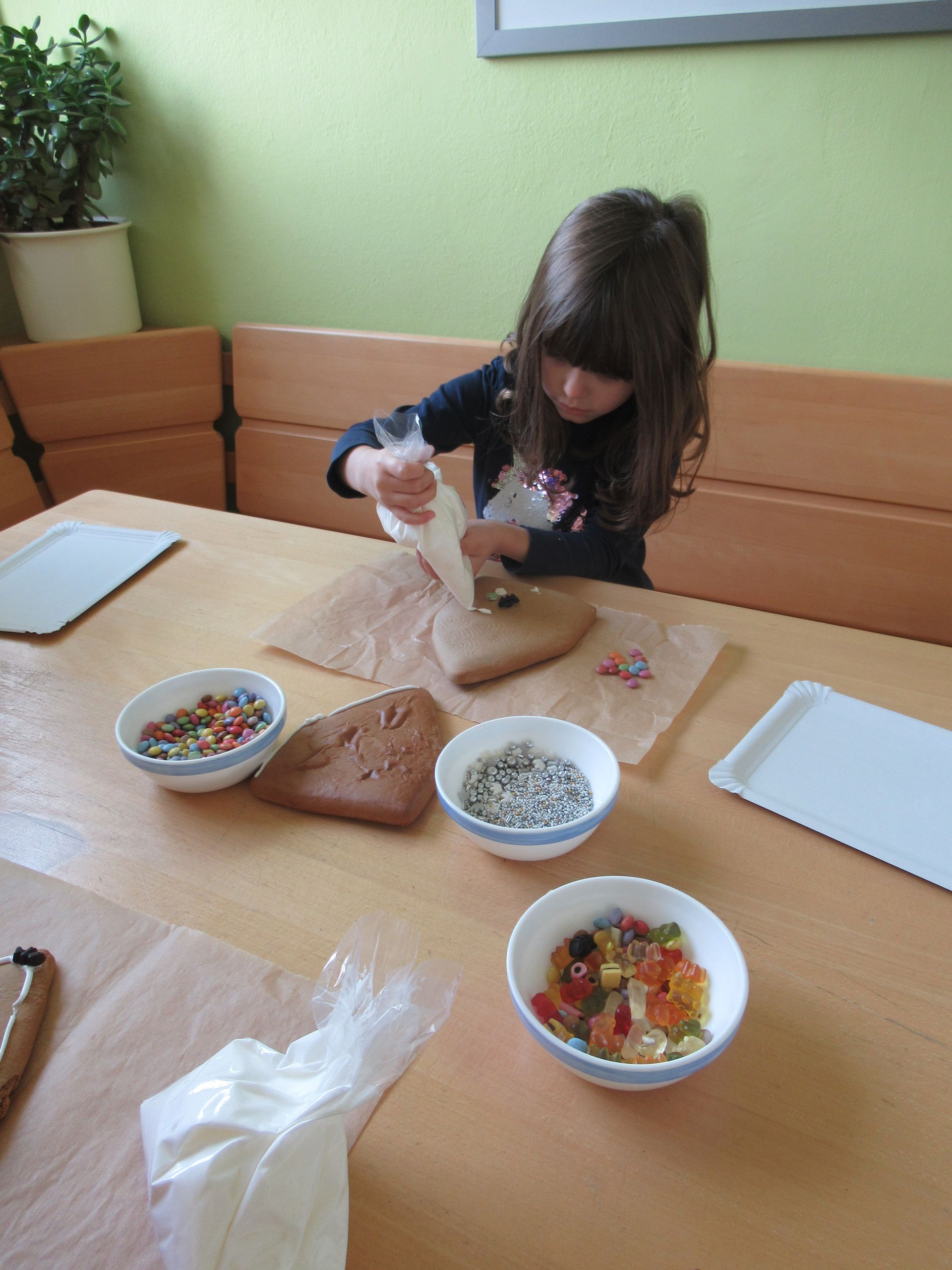 Das Team der Kinderferienaktion beteiligte sich beim Pfarradvent am Wochenende mit einer Lebkuchenwerkstatt. Sehr viele Lebkuchenmännchen, -häuser und -herzen fanden am Montag den Weg in den Kindergarten. Dort wurden diese mit viel Freude und Konzentration gestaltet und verziert. Nicht nur der Lebkuchen, auch die Glasur und verschiedenen Streusel wurden vom Verein Kinderferienaktion gesponsert!