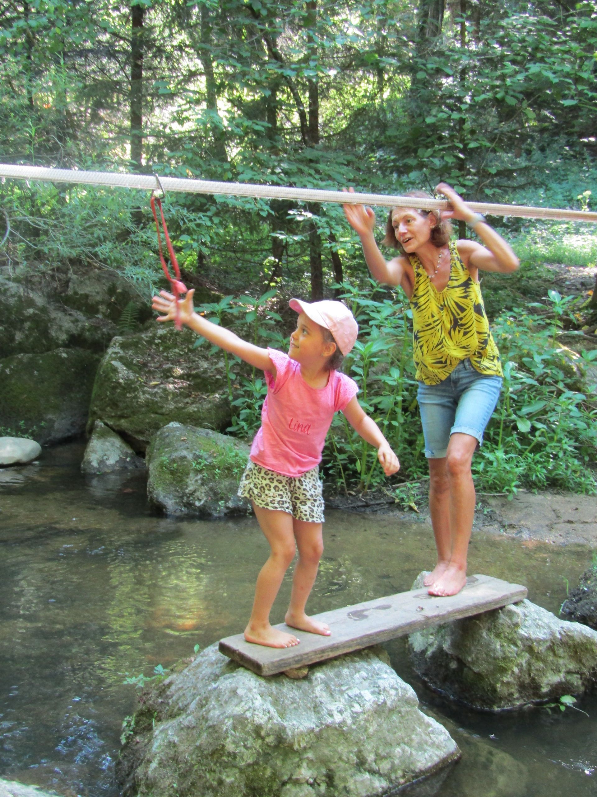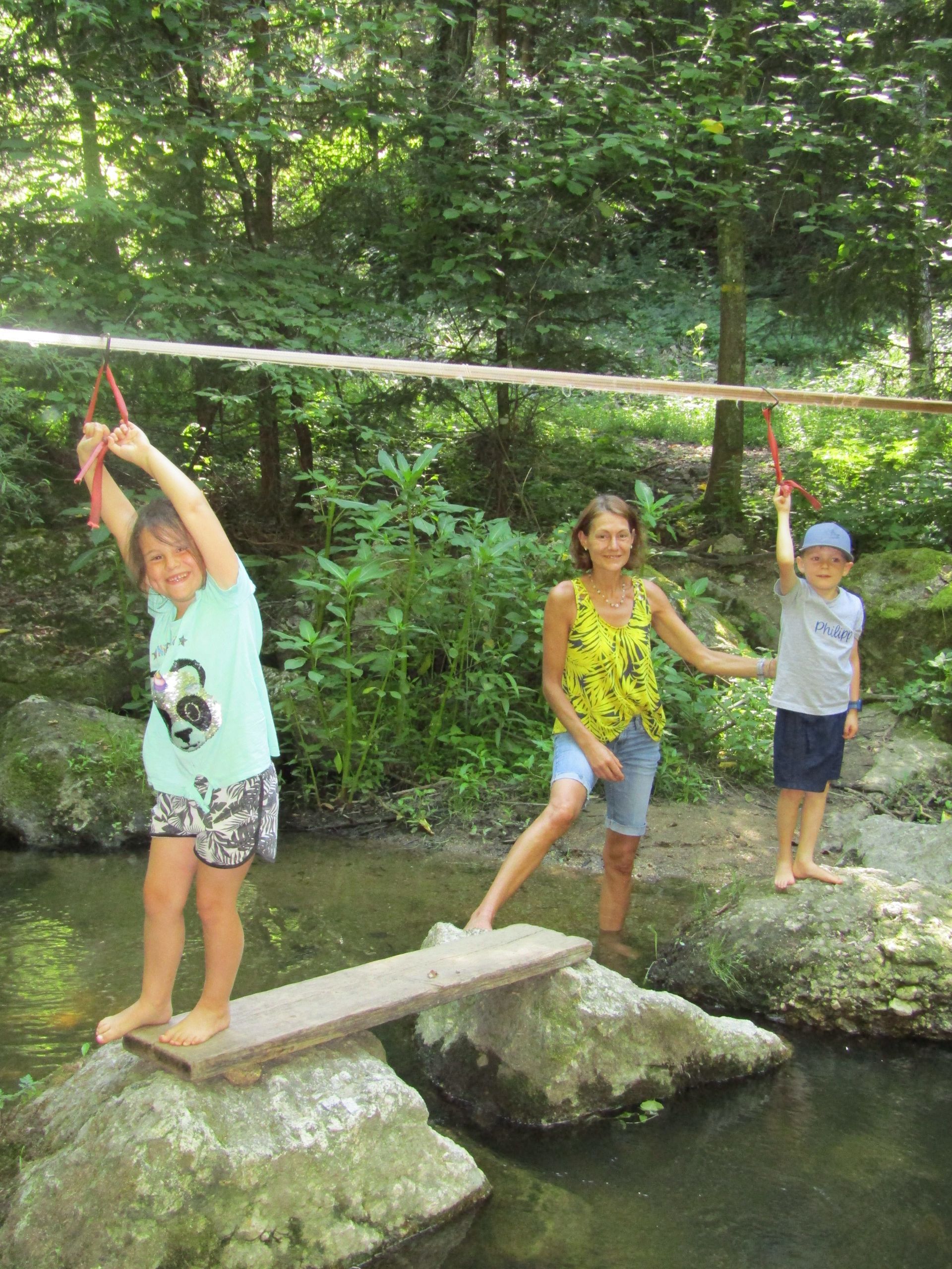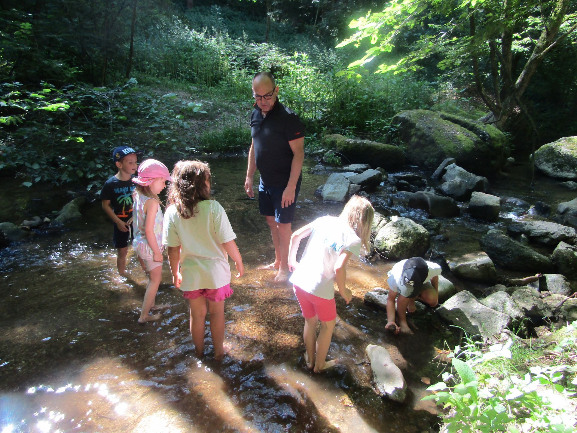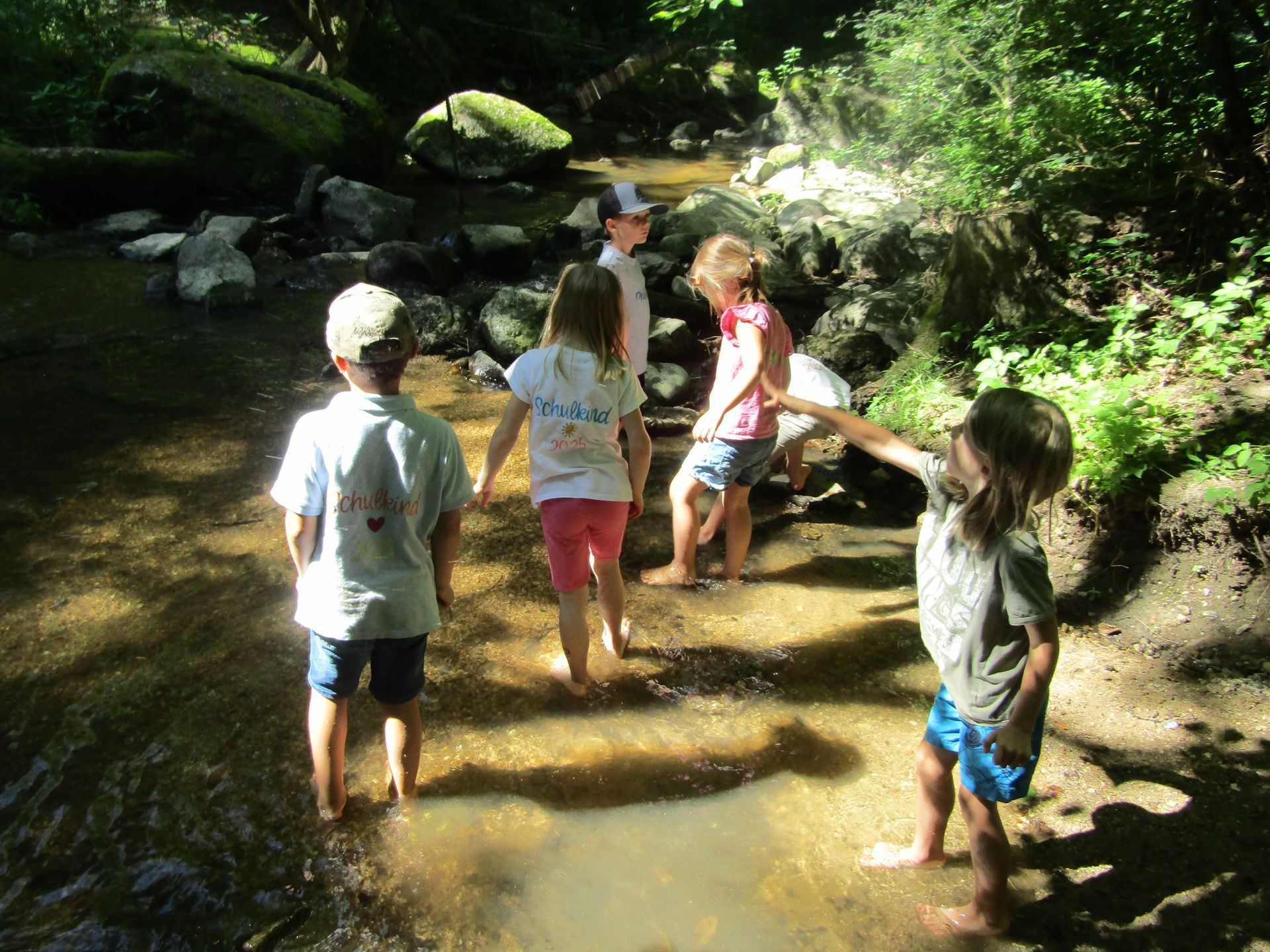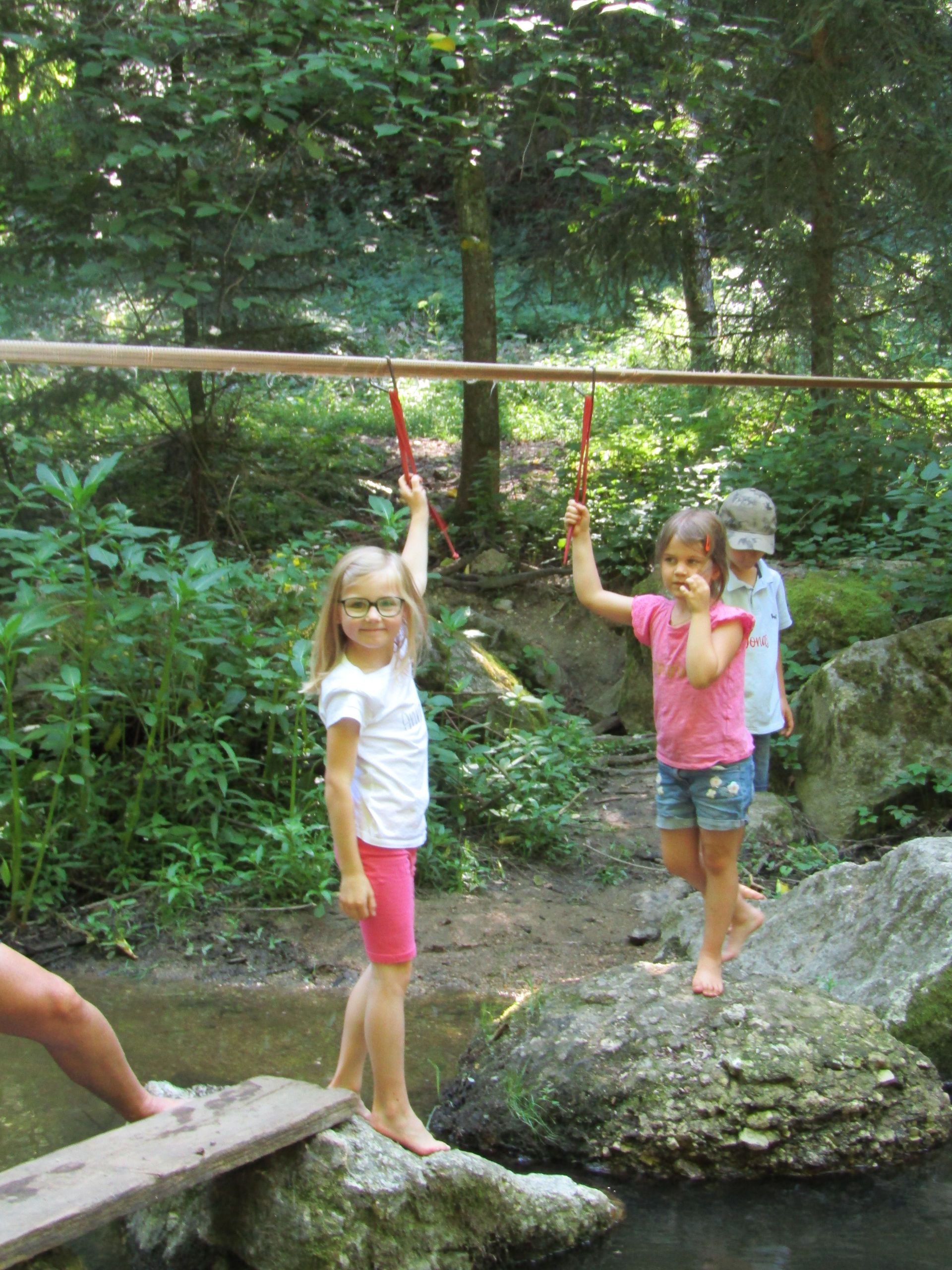 Im kühlen Wasser hüpften wir mutig von Stein zu Stein und einige Kinder bauten mit viel Teamgeist einen eigenen Steindamm.