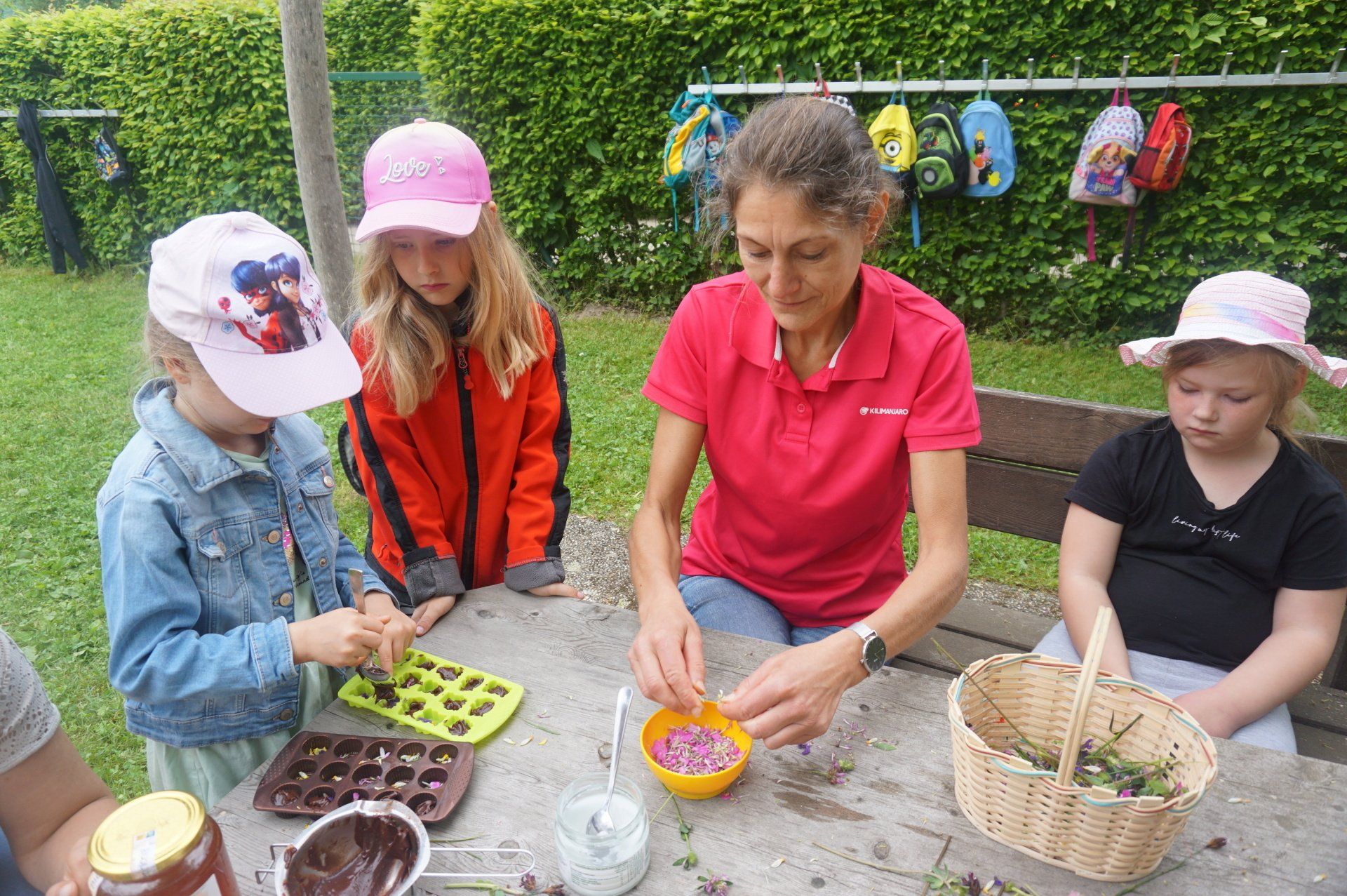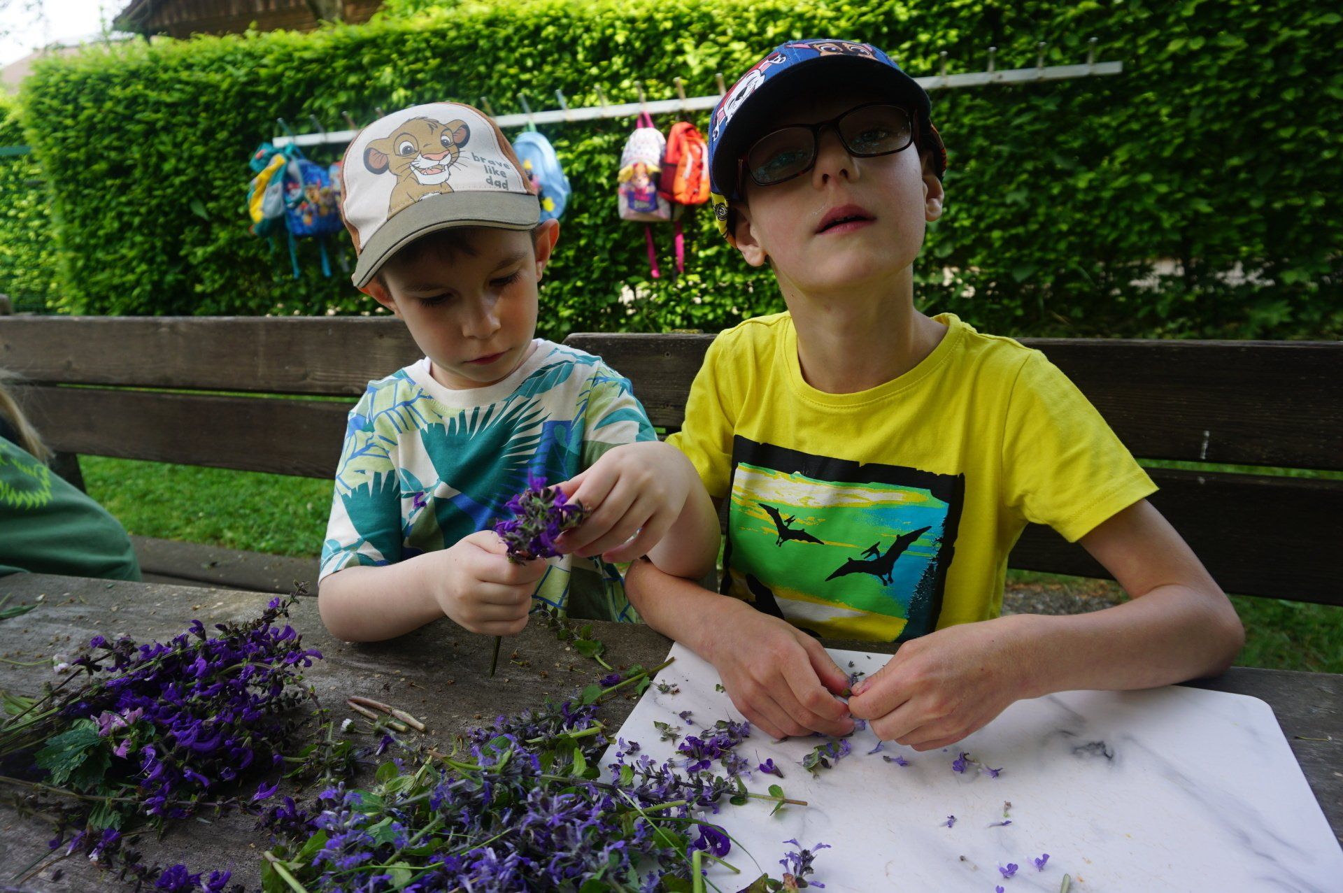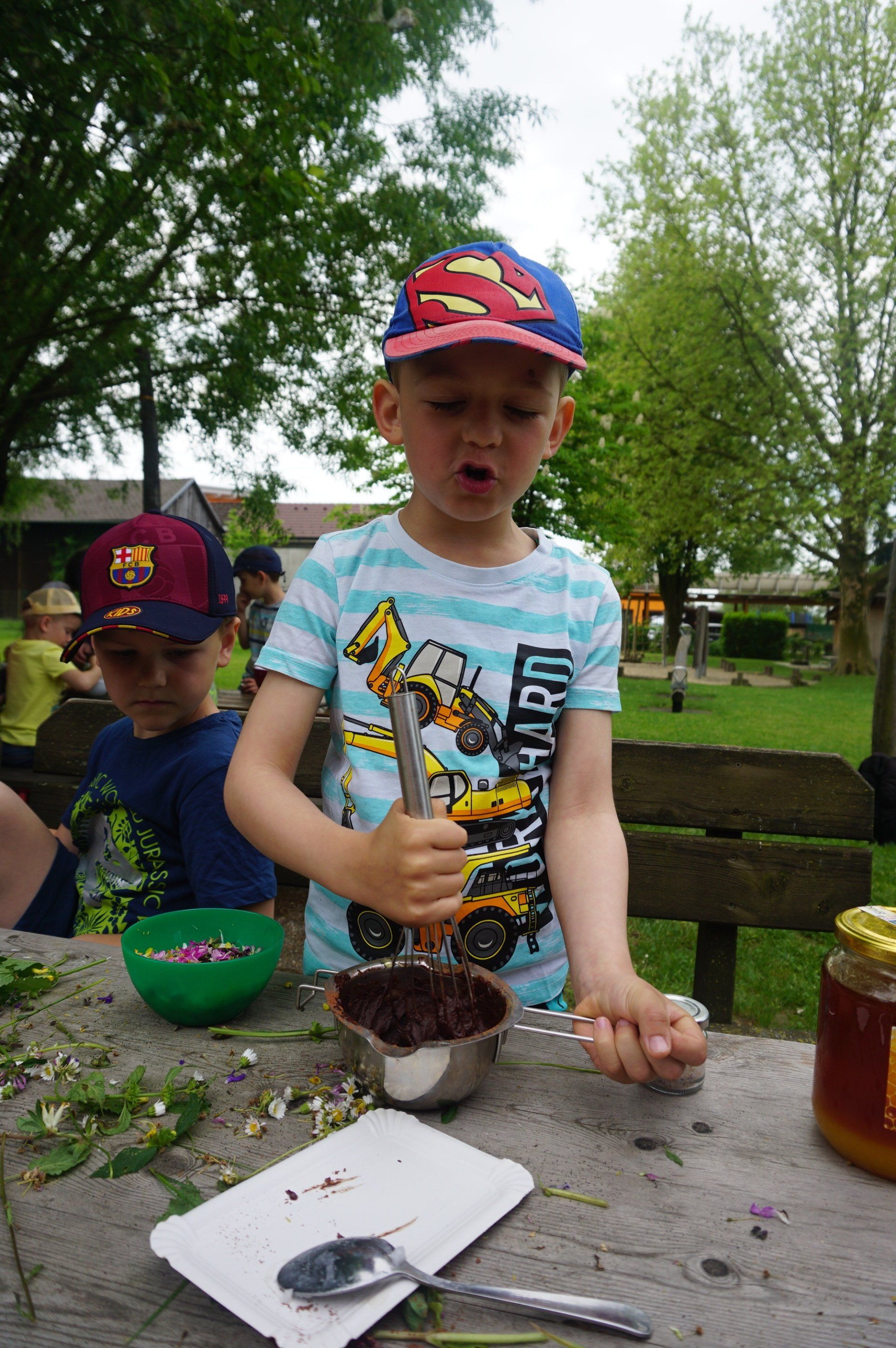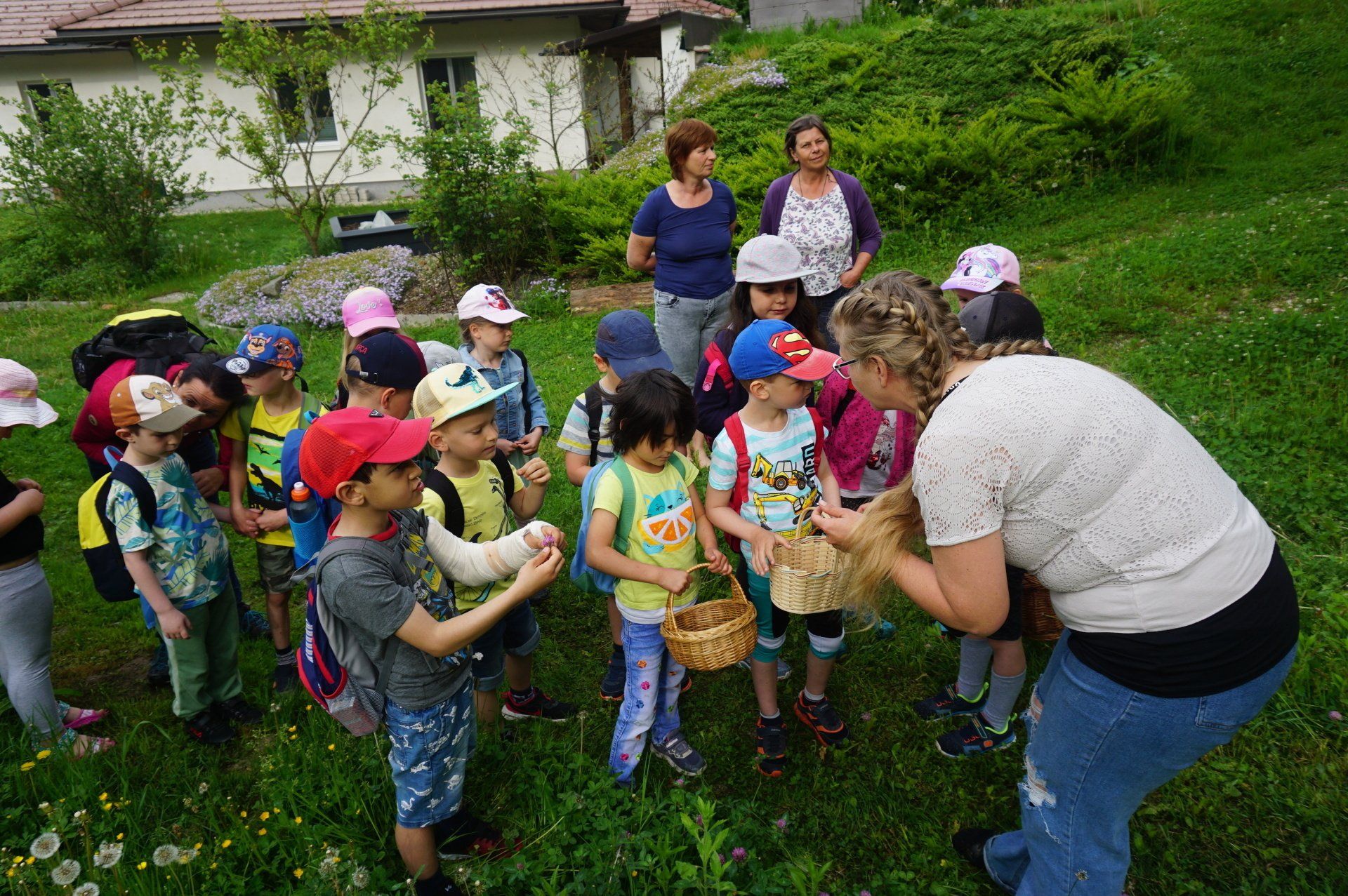 Nicht weit vom Kindergarten entfernt wurden wir fündig und sammelten essbare Blüten und Kräuter. Im Garten richteten die Kinder Blütenbrote, Kräutersalz, Löwenzahn - Kartoffelsalat und Blütenschokolade her. Diese leckeren Naturschätze ließen wir uns alle gut schmecken. Vielen Dank an den Elternverein Saxen und an die Gesunde Gemeinde, die den Kindern dieses tolle Projekt ermöglicht haben.