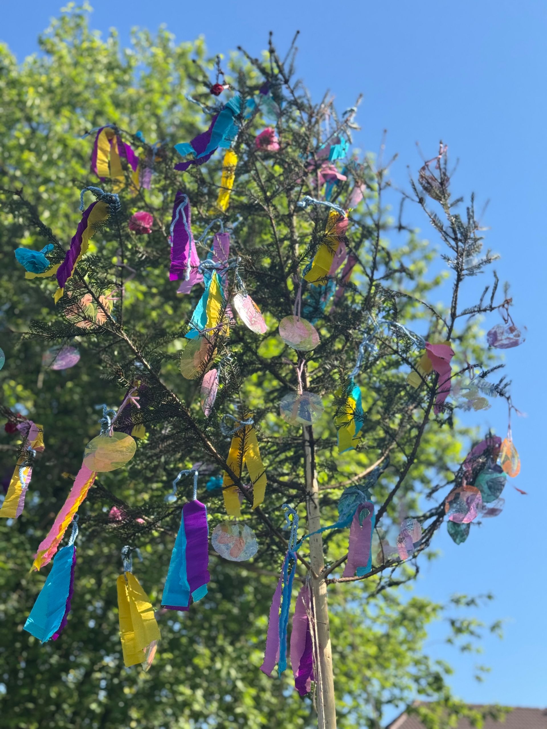 Am Montag, den 28.04. haben wir gemeinsam mit der Krabbelstube ein schönes Maibaumfest gefeiert. Die Krabbelstuben-Kinder haben im Vorfeld einen liebevoll geschmückten Kranz gebunden, während die Kindergartenkinder den Maibaum an der Spitze geschmückt haben.