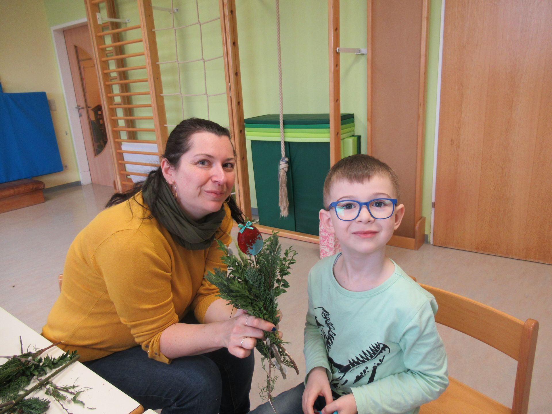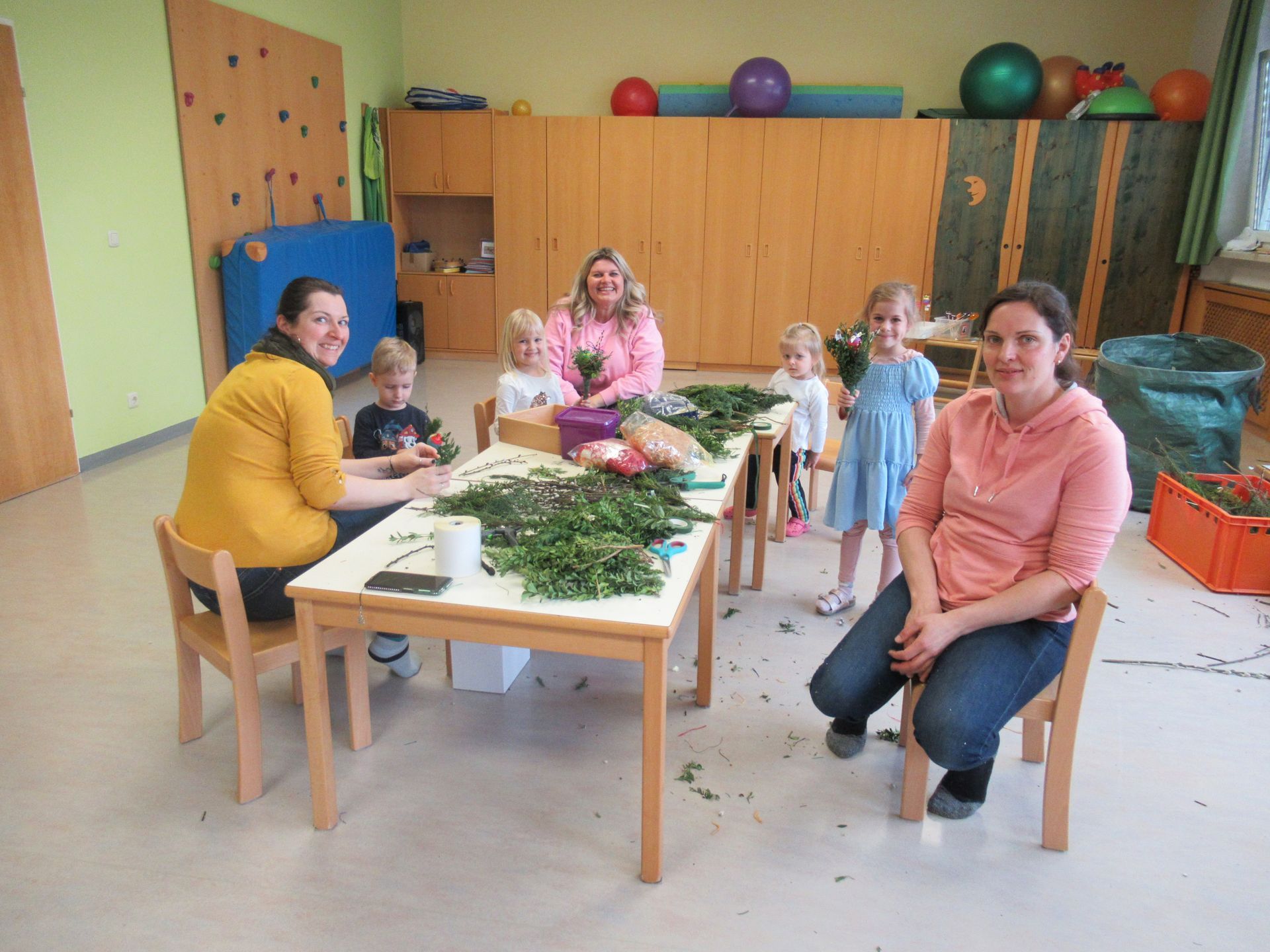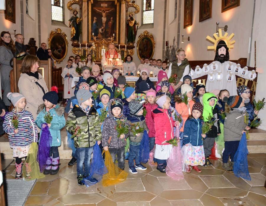 Bevor wir in die Osterferien gestartet sind, haben wir am Palmsonntag in der Kirche unser Lied „Jesus geht in die Stadt hinein“ gesungen. Pfarrer Konrad Streicher hat unsere Palmbesen geweiht, die die Kinder mithilfe einiger Mütter zuvor im Kindergarten gebunden hatten. In jedem Palmbesen steckte ein von den Kindern selbst gestaltetes Ei. Ein großes Dankeschön gilt Karin Schweighofer, Elisabeth Pichler und Marion Neuhofer, die sich einen ganzen Vormittag für die Kinder Zeig genommen haben.