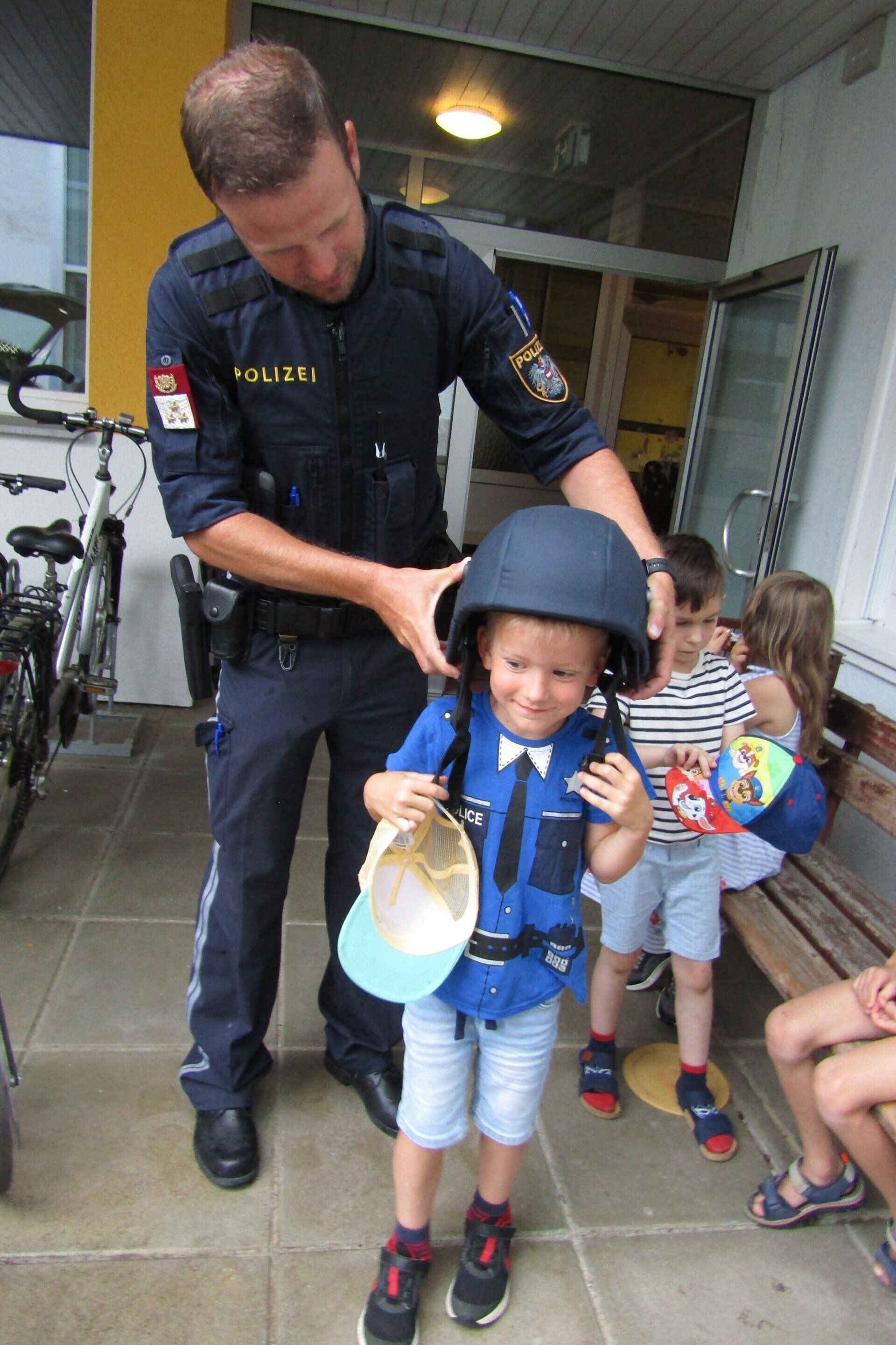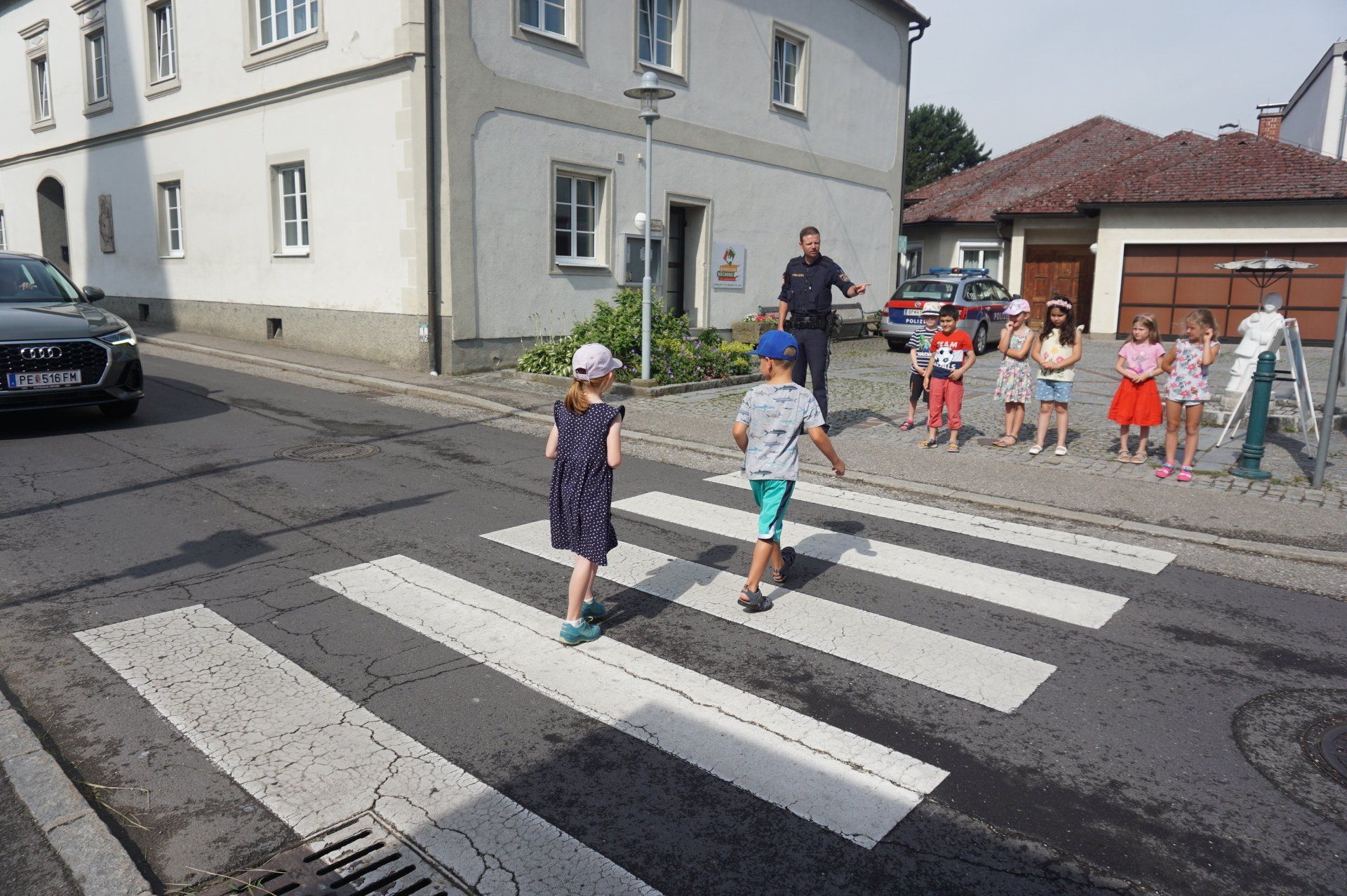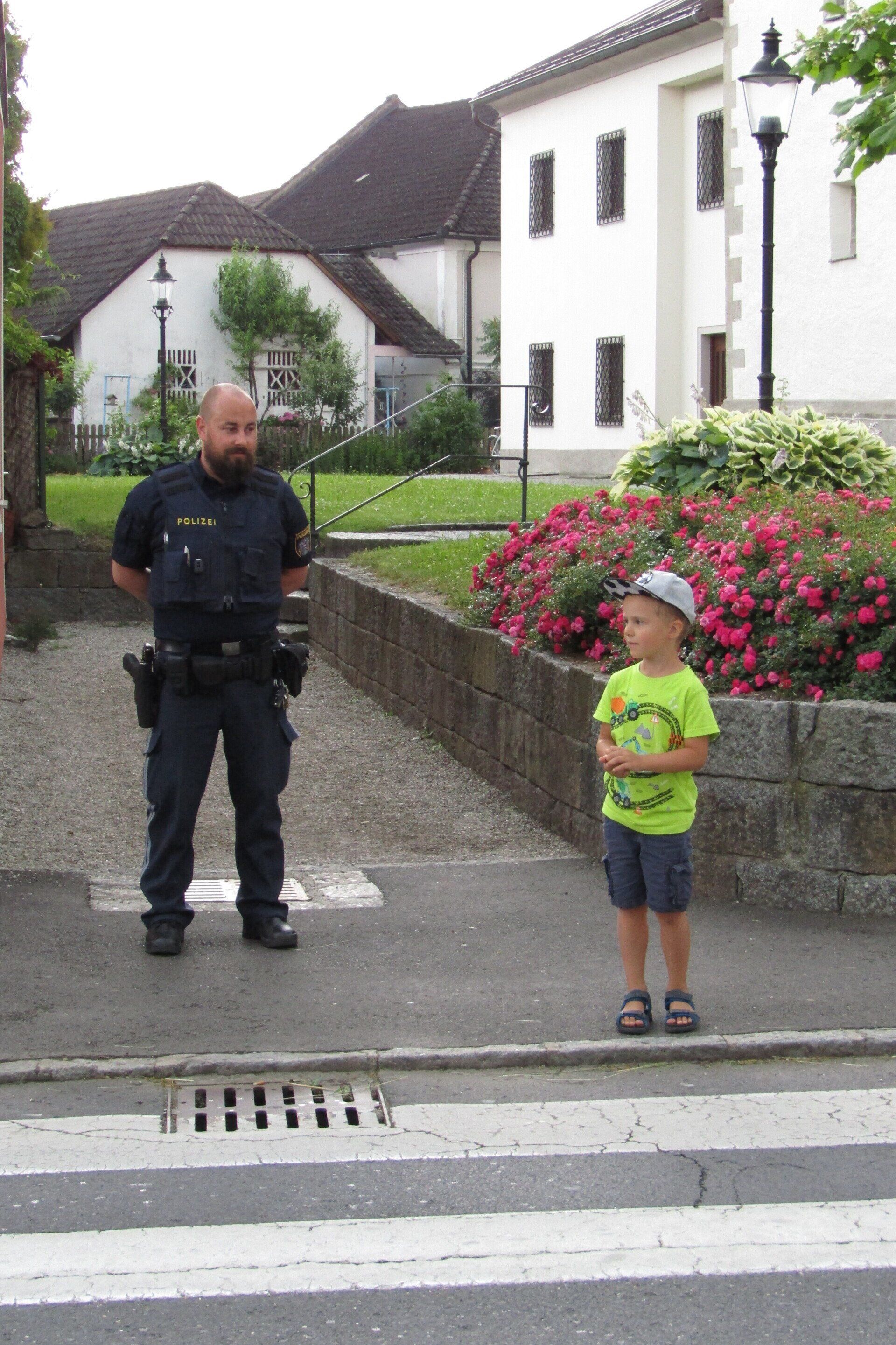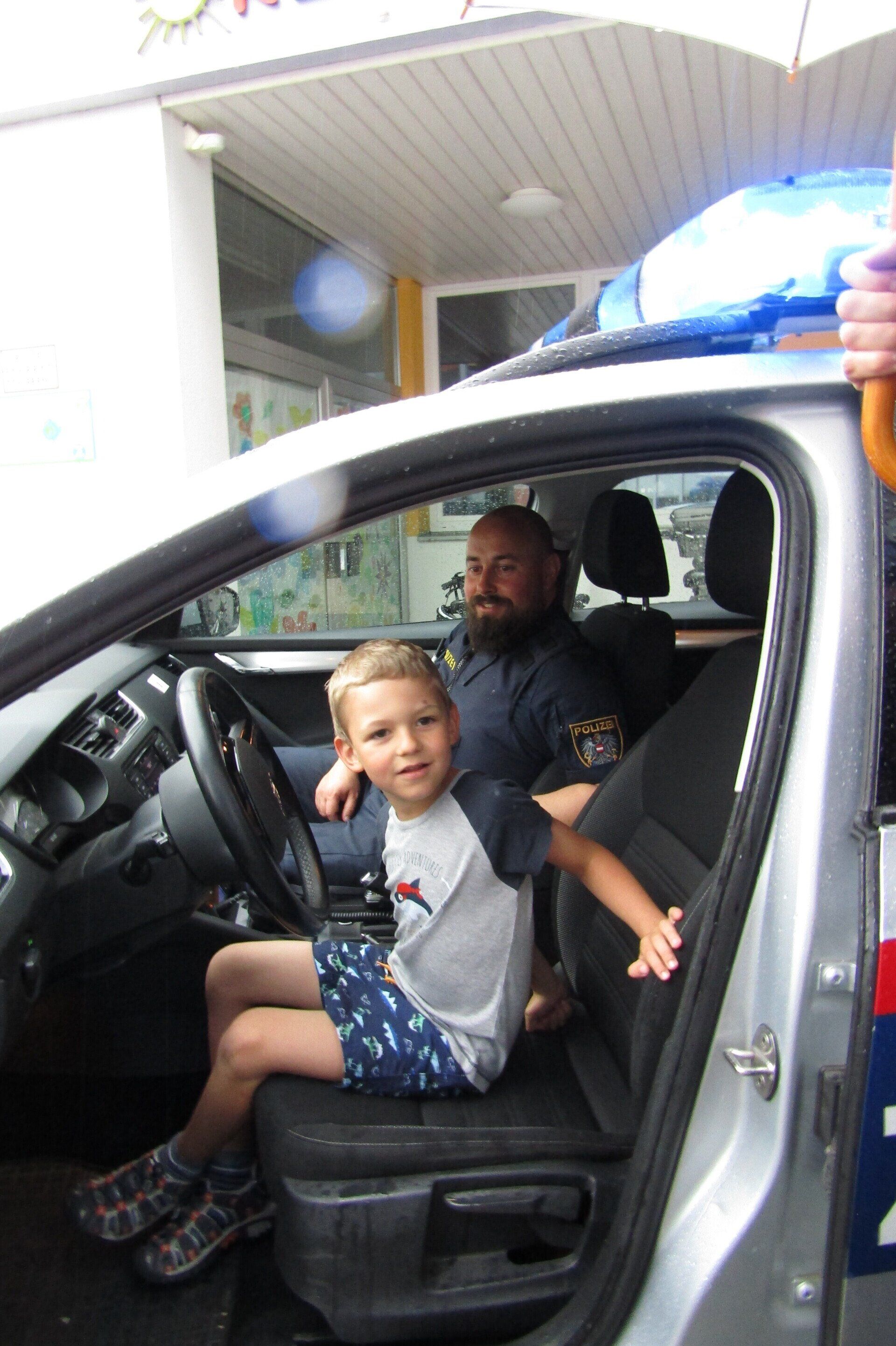 Am 21. Juni wurden die Schulanfänger des Kindergartens von zwei Polizisten vom Posten Grein besucht. In zwei Gruppen stellten die Polizisten kurz ihre Arbeit vor und erklärten den Kindern das richtige Verhalten im Straßenverkehr. Anschließend durfte jedes Kind alleine den Zebrastreifen vor der Schule überqueren und dabei das vorher Erlernte gleich anwenden.