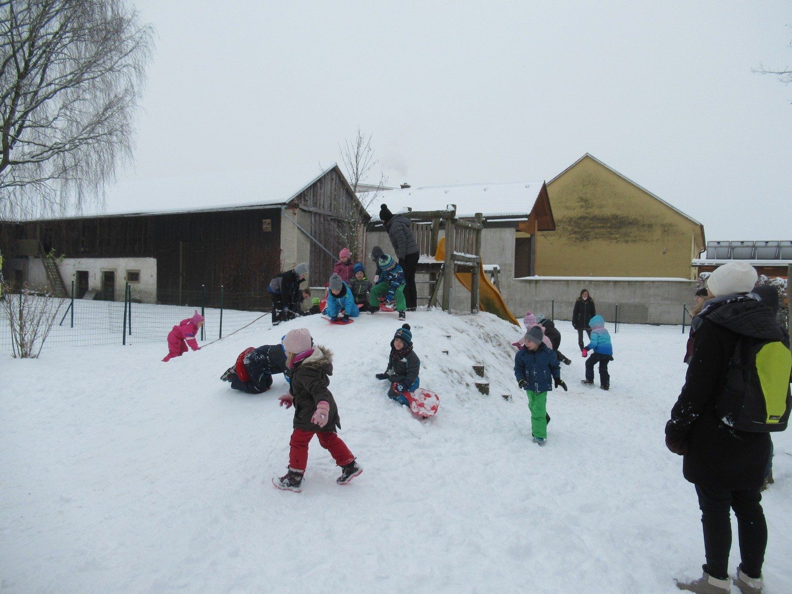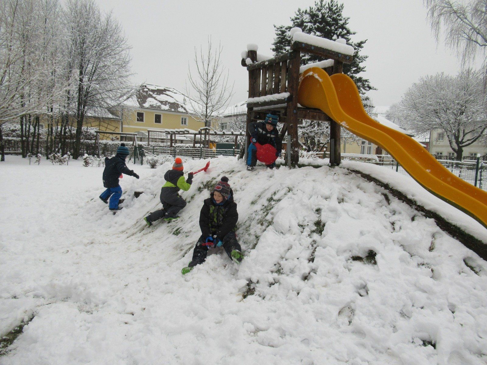 Während des Lockdowns wurde im Kindergarten eine Notbetreuung angeboten. In drei etwas kleineren Gruppen haben wir uns die letzten Wochen mit dem Thema Winter auseinandergesetzt. Es wurden Schneemänner, Schneeflocken, Winterbilder und Mützen gebastelt aber vor allem haben wir uns über den Schnee in der Natur gefreut. Unser Rutschenhügel im Garten wurde zum Tellerrutschen genutzt und gemeinsam mit den Kindern haben wir einen großen Schneemann gebaut.