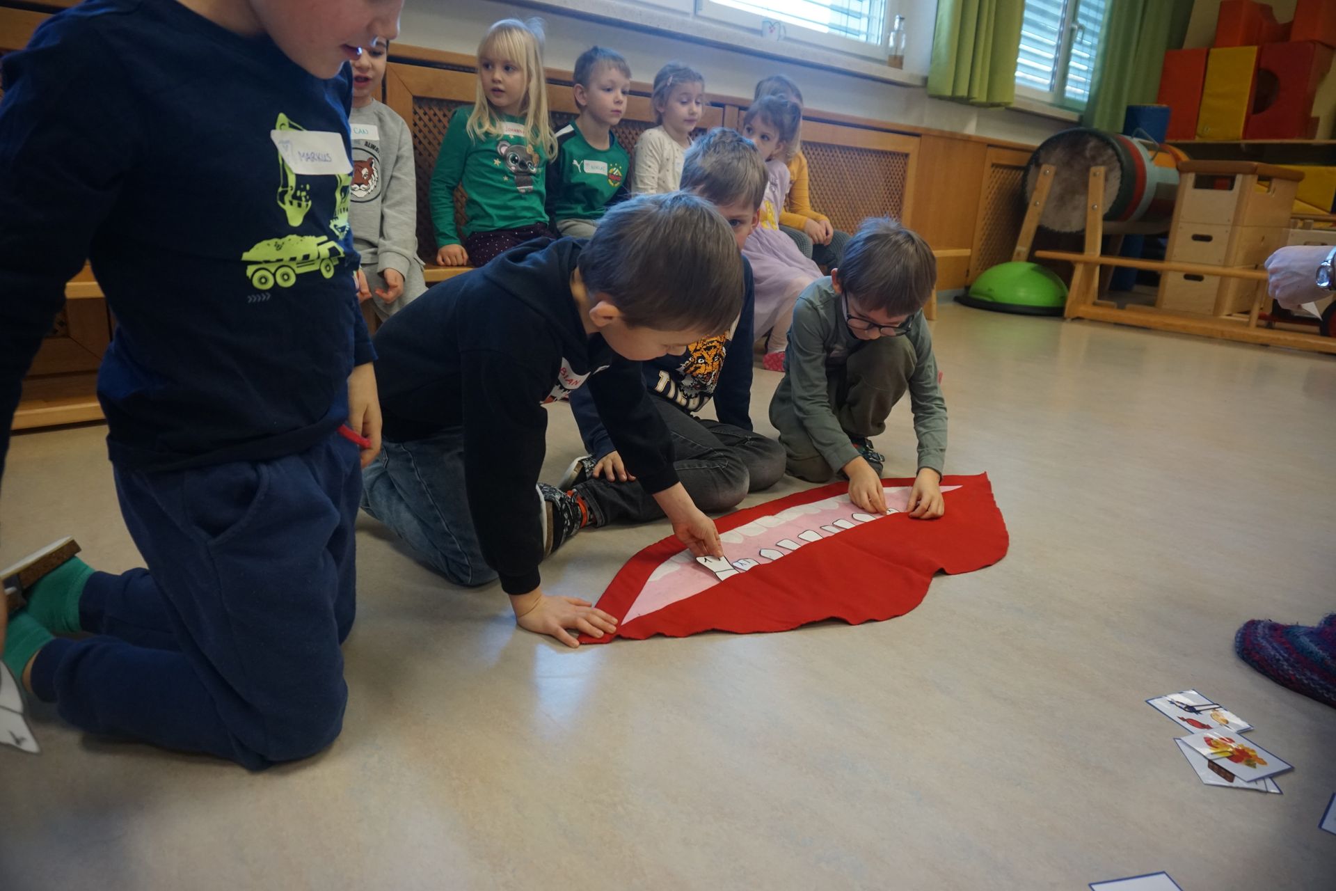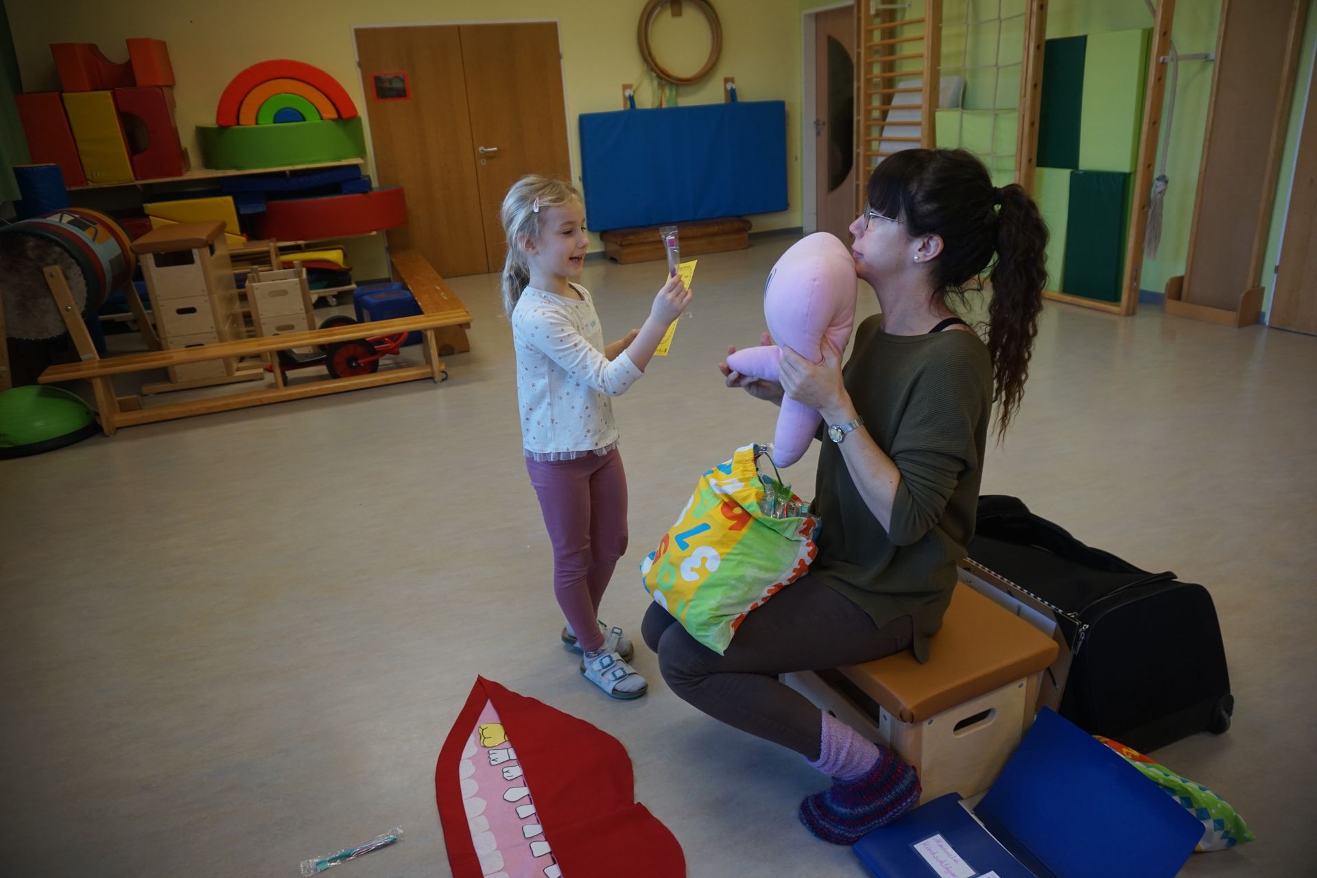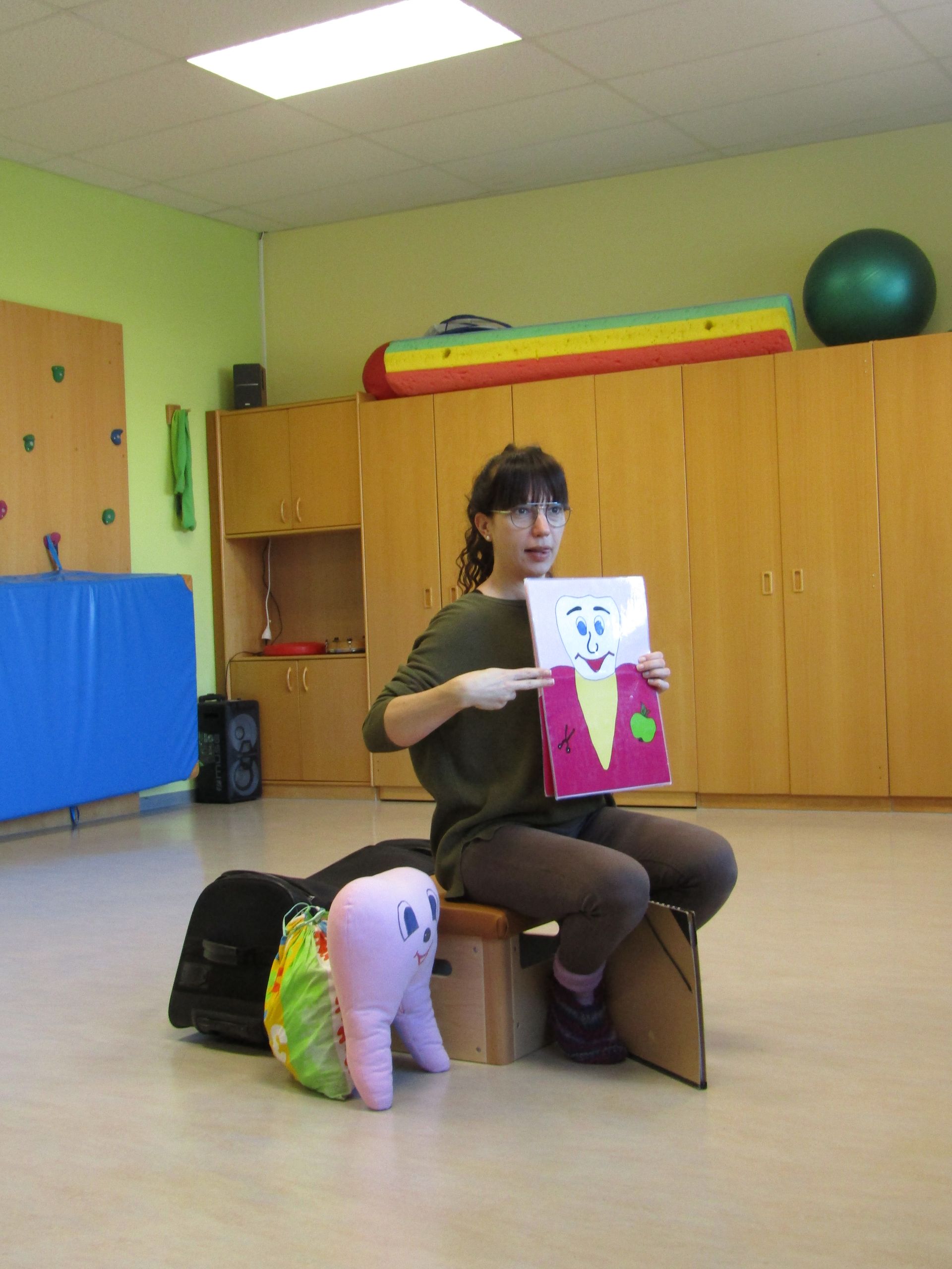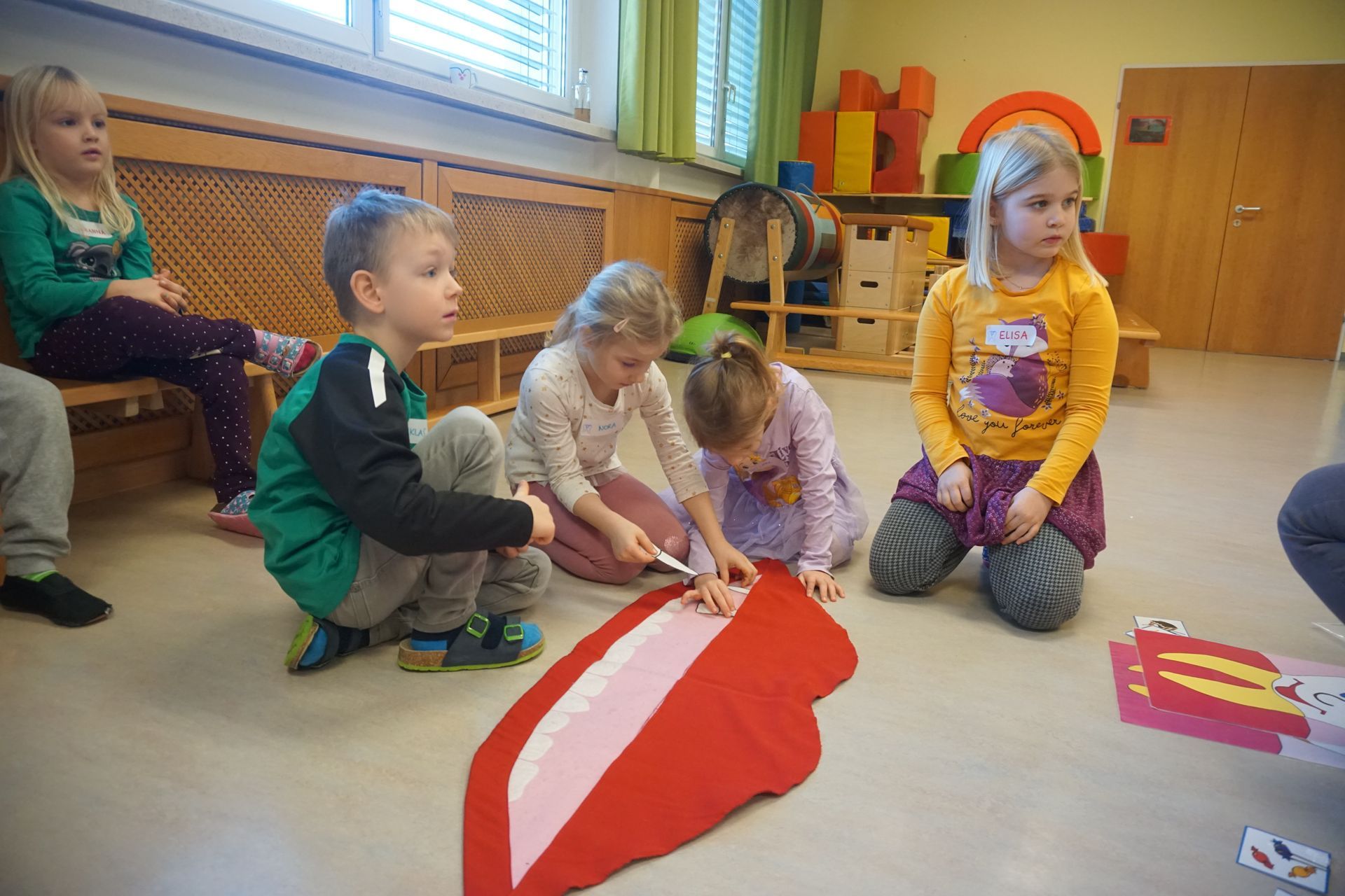 Das hat uns die Zahngesundheitserzieherin Manuela gemeinsam mit „Maxl“ und ihrer großen Zahnbürste anschaulich erklärt. Außerdem hat sie mit den Kindern besprochen, welche Lebensmittel für unsere Zähne gesund und welche eher ungesund sind. Zum Abschluss hat jedes Kind eine eigene Zahnbürste erhalten und die Schulanfänger sogar noch eine kleine Zahndose für die ersten Milchzähne.