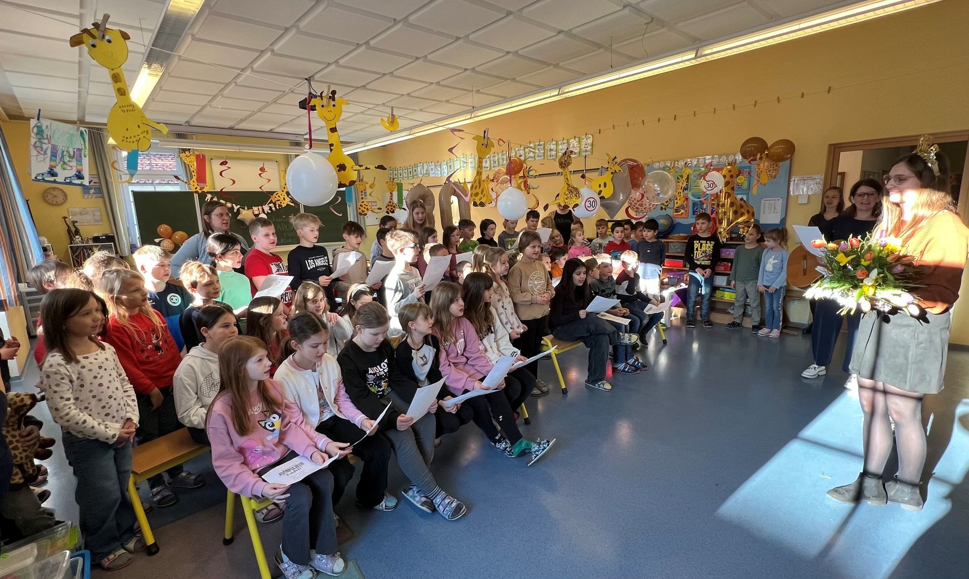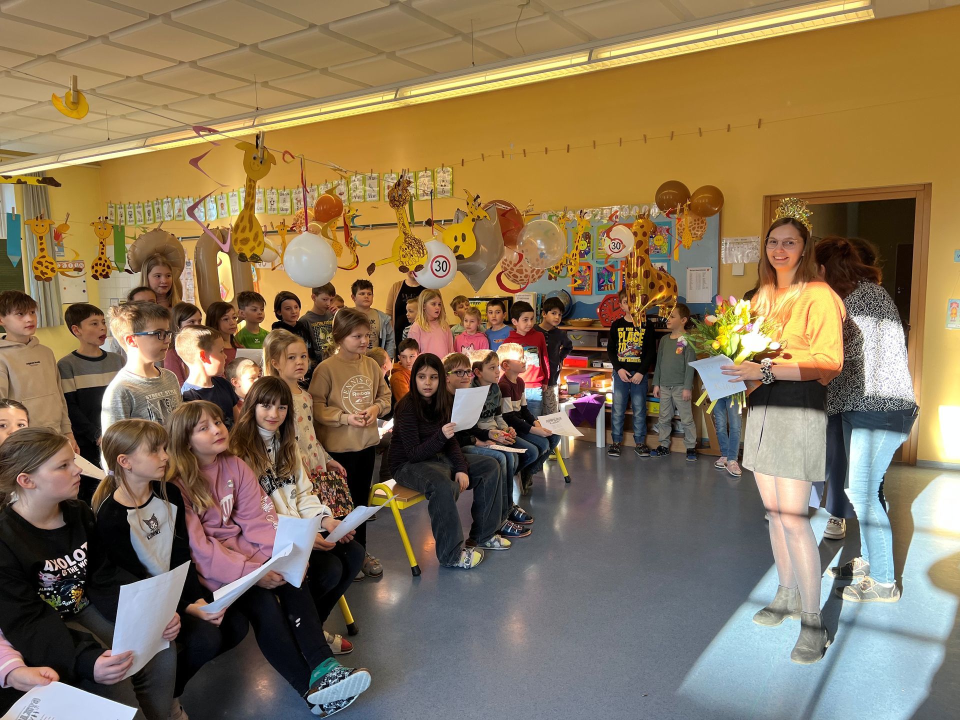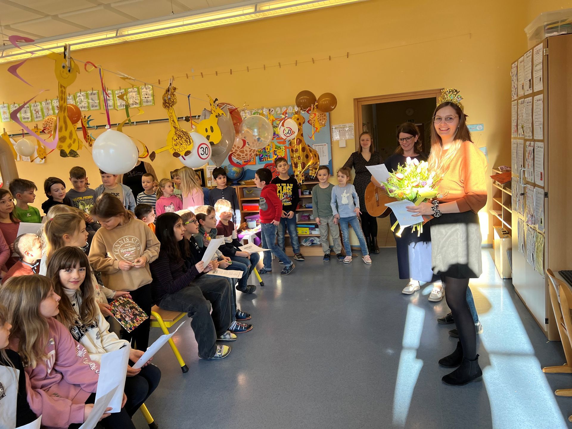Ihre Klassenlehrerin Frau Melanie Nenning feierte ihren 30. Geburtstag.