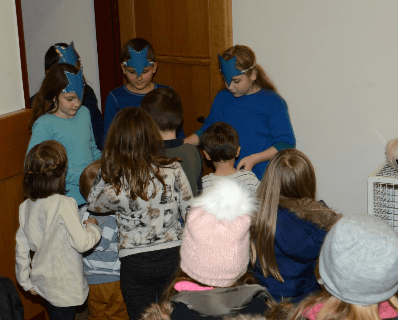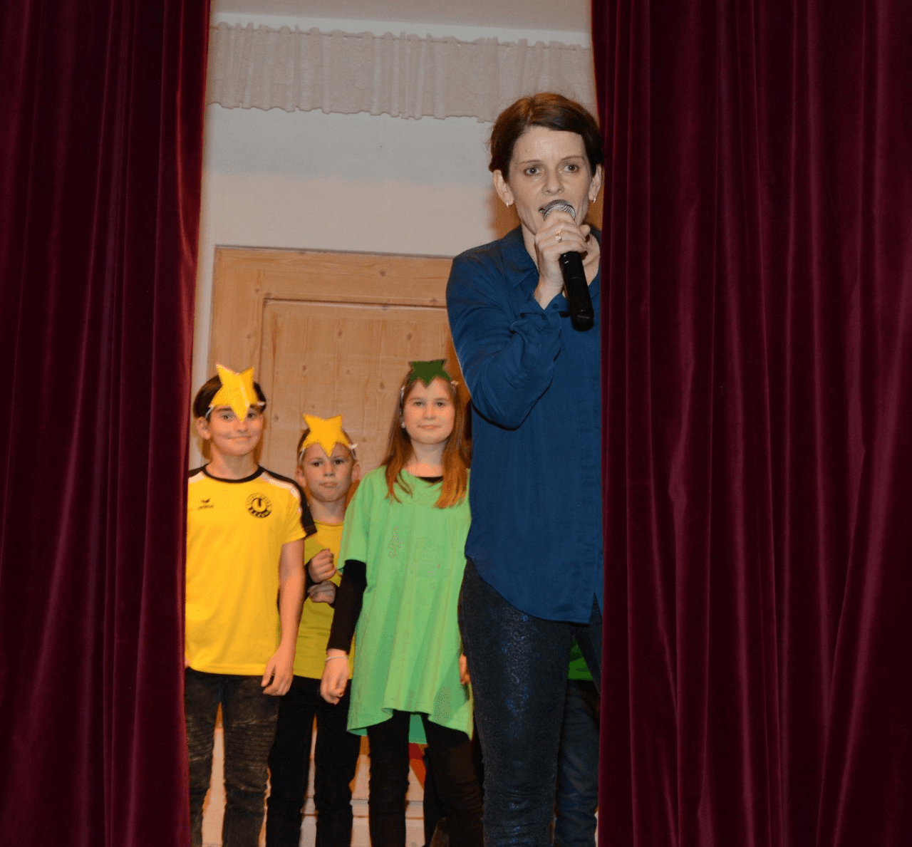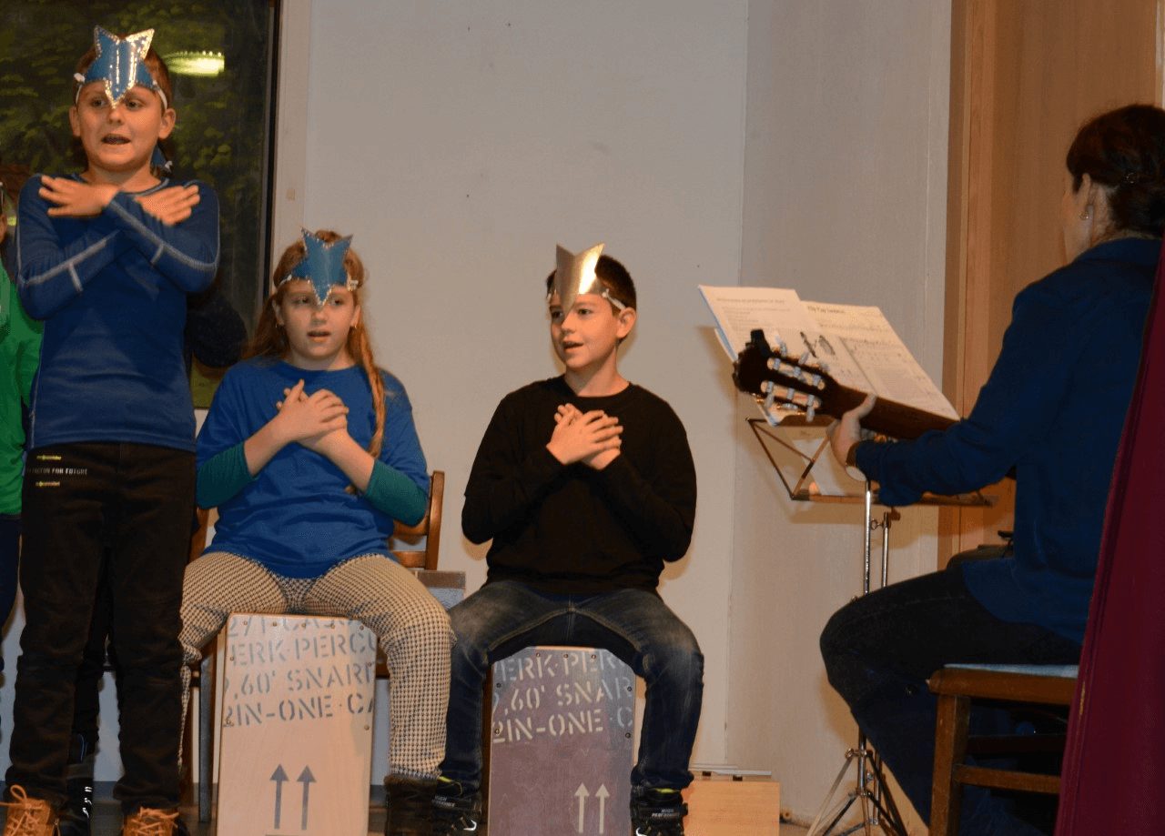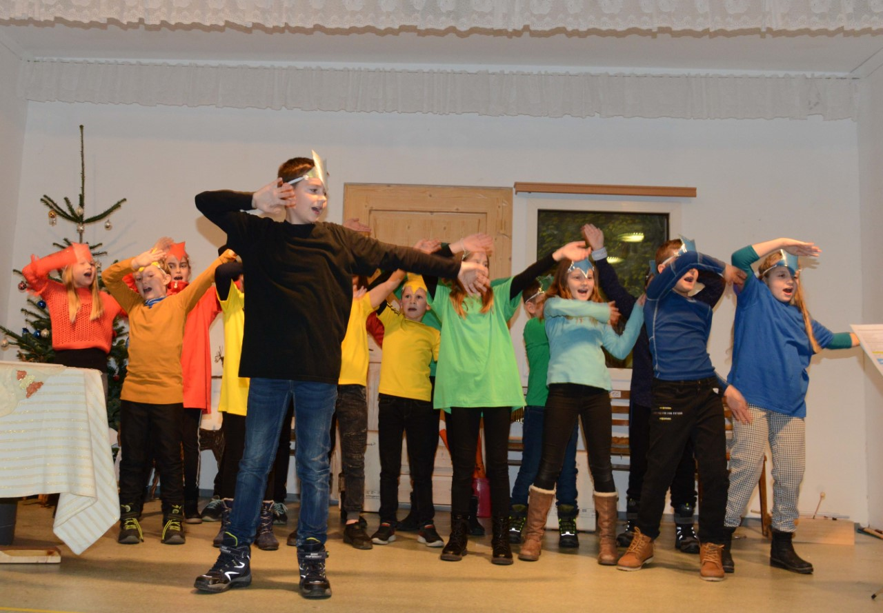 Die 4. Klasse der VS Saxen begeisterte mit ihrem Mini- Musical die Zuseher im Pfarrsaal.