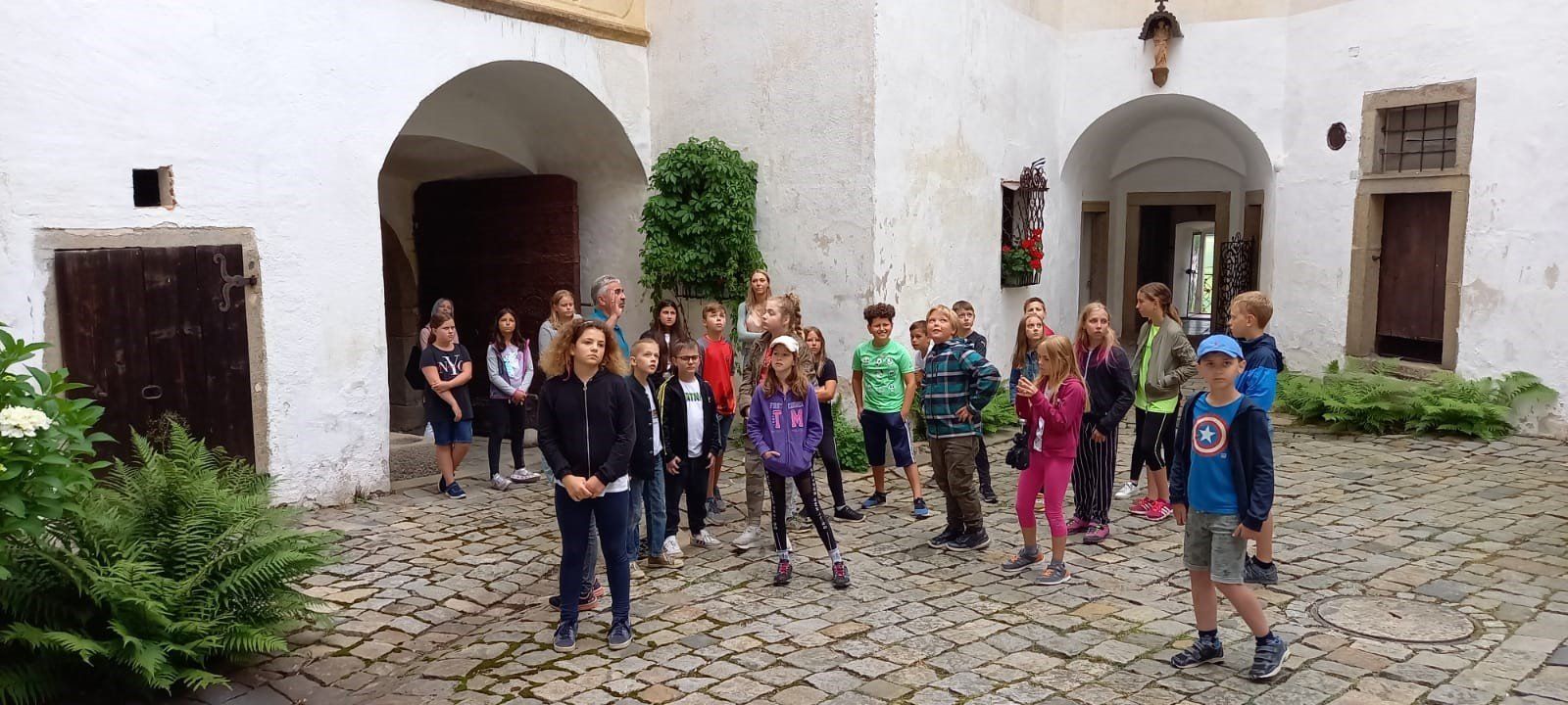 Am 1.7.2021 stiegen die Saxner 4. Klässler hoch zur Burg Clam. Sie trotzten den widrigen Wetterbedingungen und kämpften sich durch die Klamschlucht hoch zur Burg.